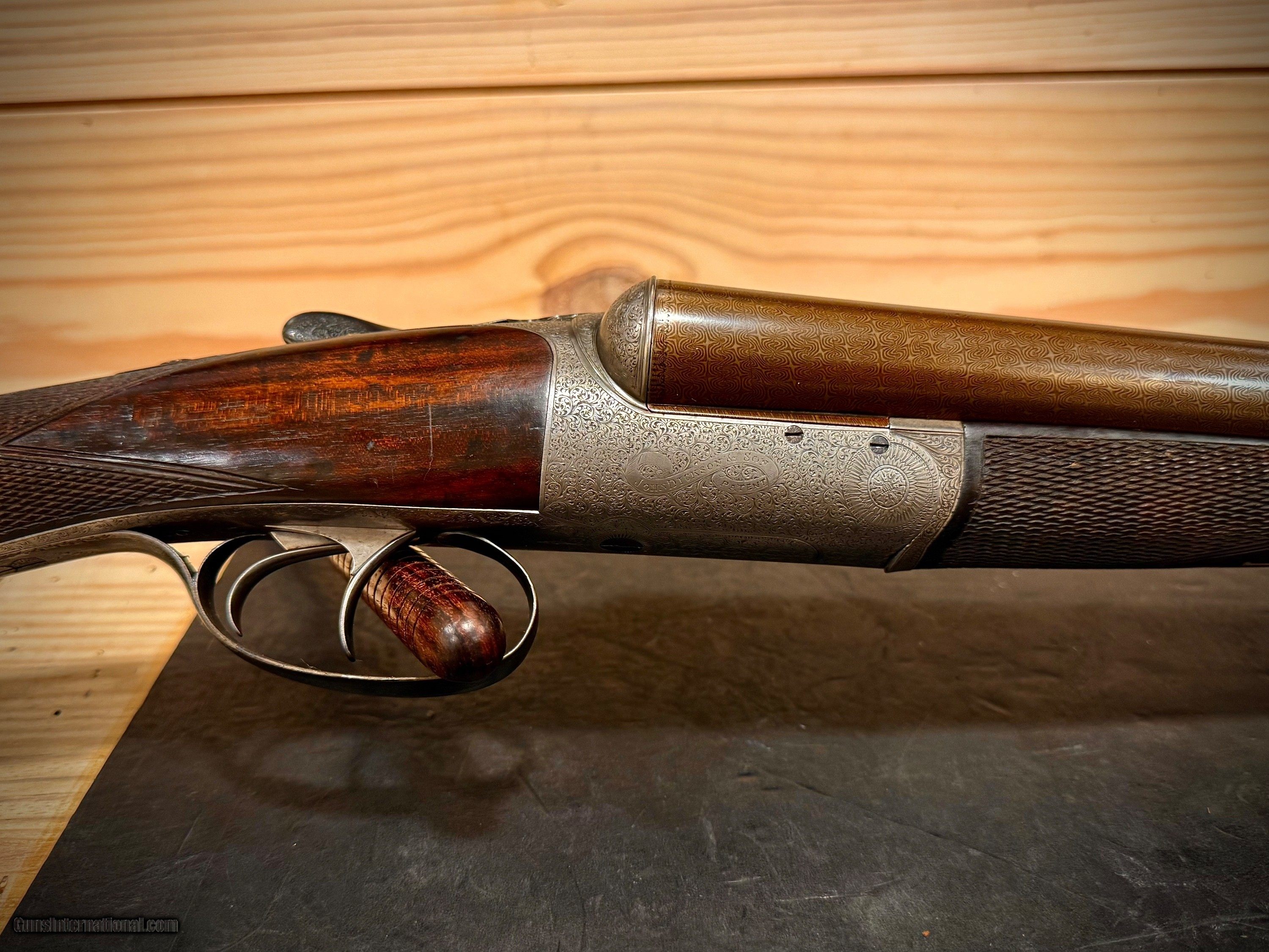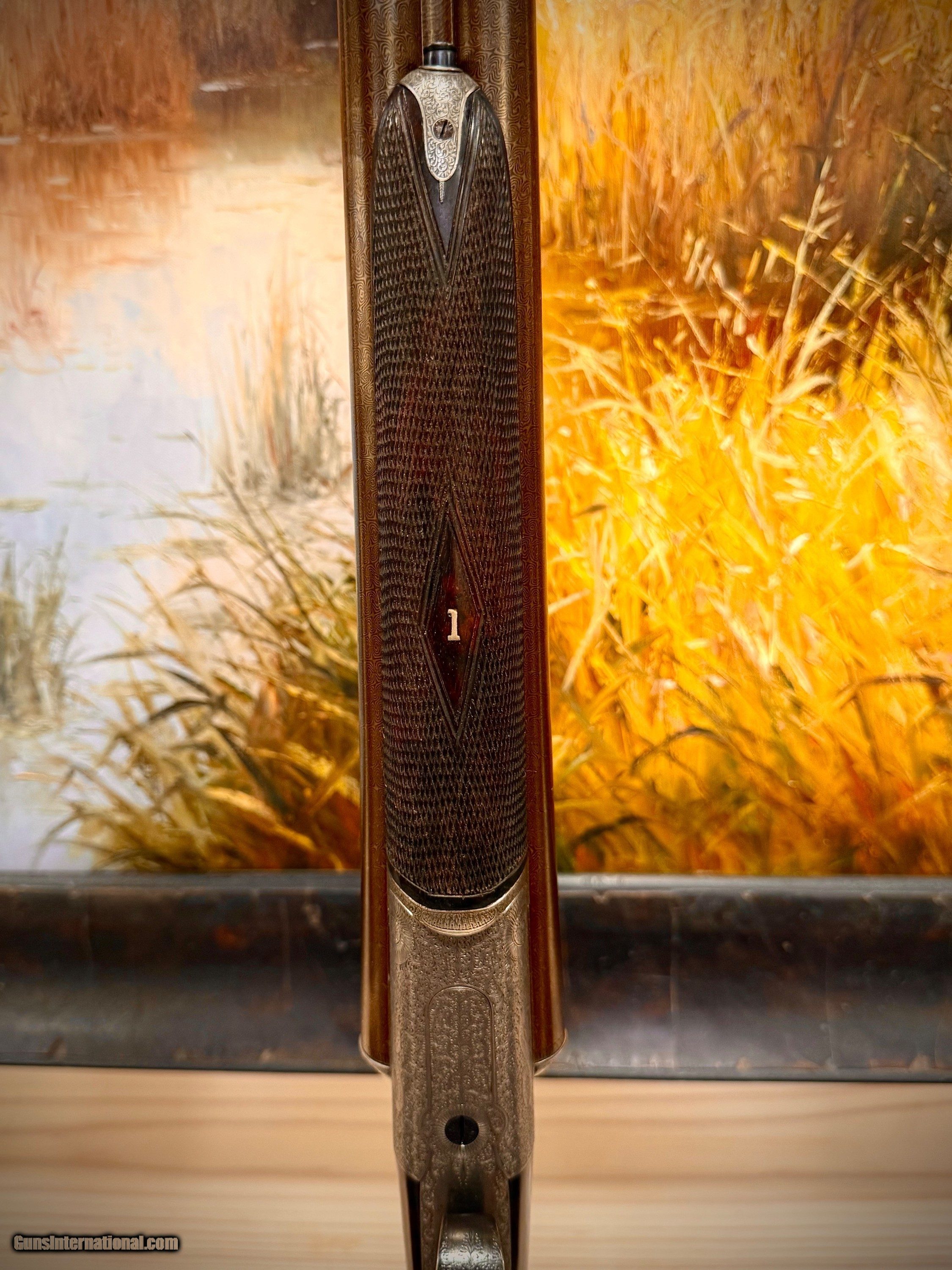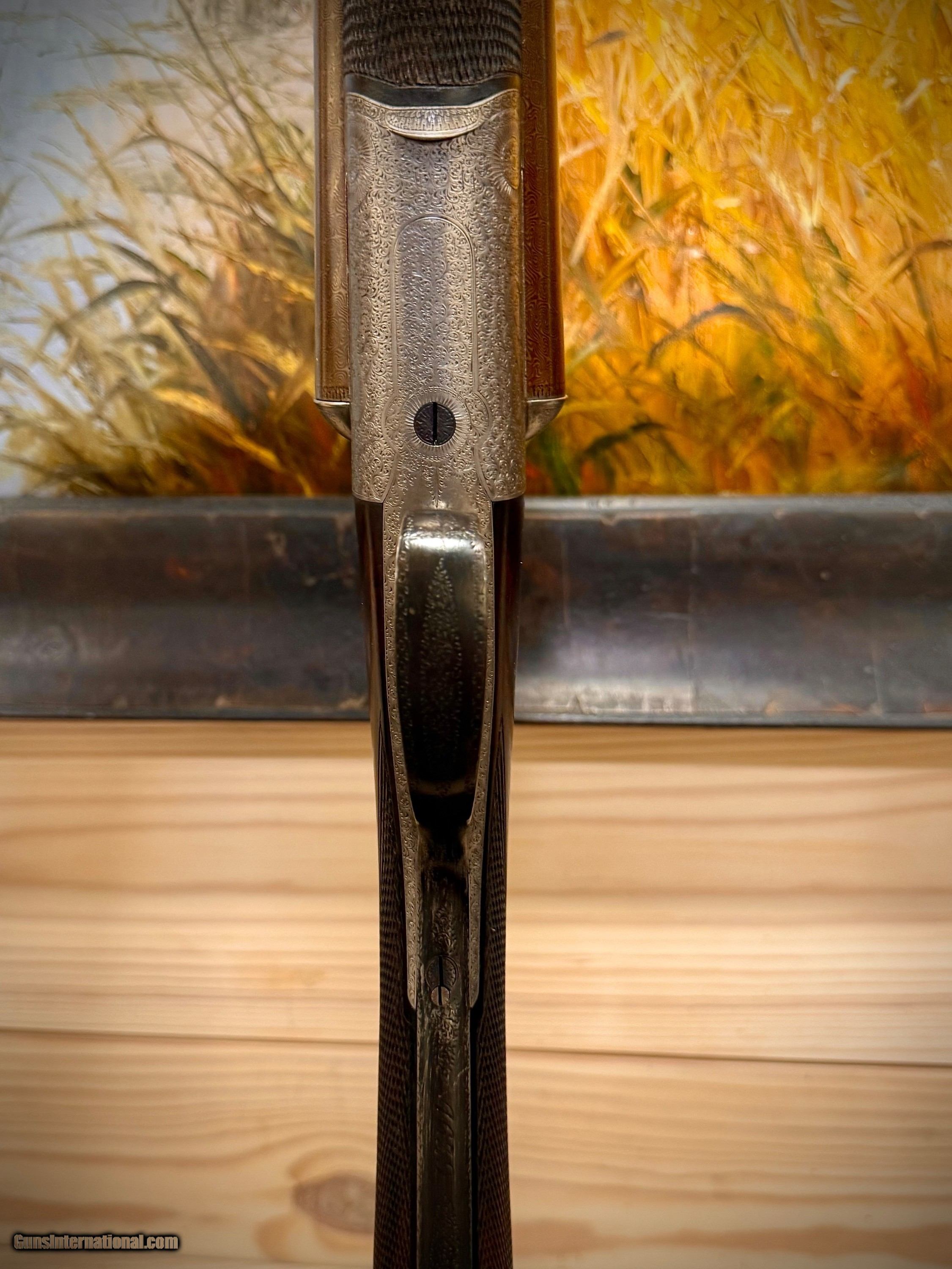 Description: Just arrived from a private collection. John Dickson & Son 12 bore round action ejector, serial number 46xx. Made in 1893, wall thickness measurements 24,000+th & 24,000+th. 28” barrels 15” stock, original proof marks. Widely regarded as Scotland’s finest gunmaker, with his round-action guns on par with Holland, Purdey & Boss. In Dickson gun case. Beautiful old growth wood, the damascus pattern on the barrels and rib are exceptional and a work of art. Feel free to give us a call to discuss a price out the door, shipping to an FFL of your choice. Cash, Check, Money Order or Credit Card - (3% fee) Also be sure to stop by our gun vault, located on our to see new Beretta, Rizzini and Krieghoff inventory. selwoodfarm/gun-vault/ Price: $19,500.00 Contact Seller |
