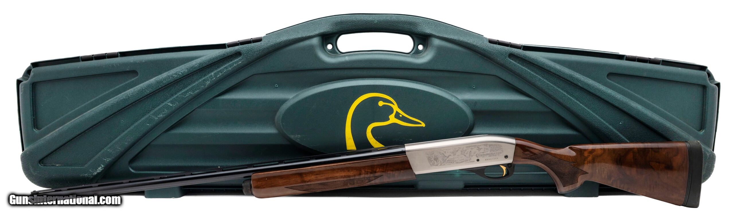 Description: "SN: 06DU2868. Made in 2006, 20 Gauge with an 28"" Vent Ribbed Remchoke Barrel. Bore is bright. Semi-Auto shotgun with Engravings and and a High Gloss Finish. Finish is in excellent condition. Walnut Stock and Forend are in very good condition with minuscule wear present along the forend and stock, Comes with case, 14"" LOP. SOLD |