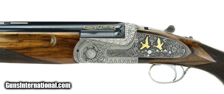 Description: Sarriugarte Excelsior 741 12 Gauge shotgun. Spanish made Excelsior “Ducks Unlimited” over/under deluxe shotgun. Has deep relief engraved side plates with gold inlays. Has beautiful figured walnut. Comes in a leather covered trunk case. A great looking gun, in excellent condition.