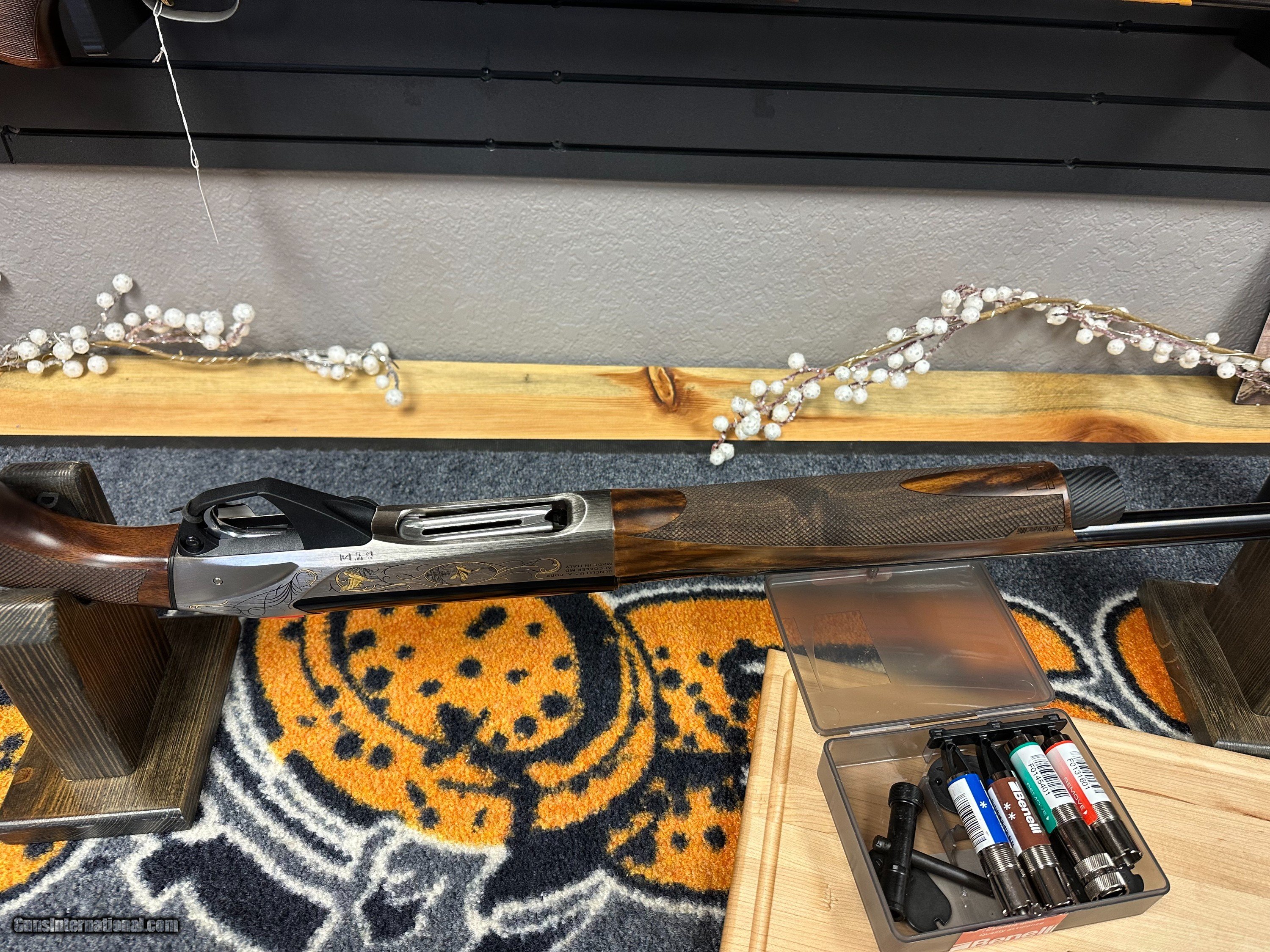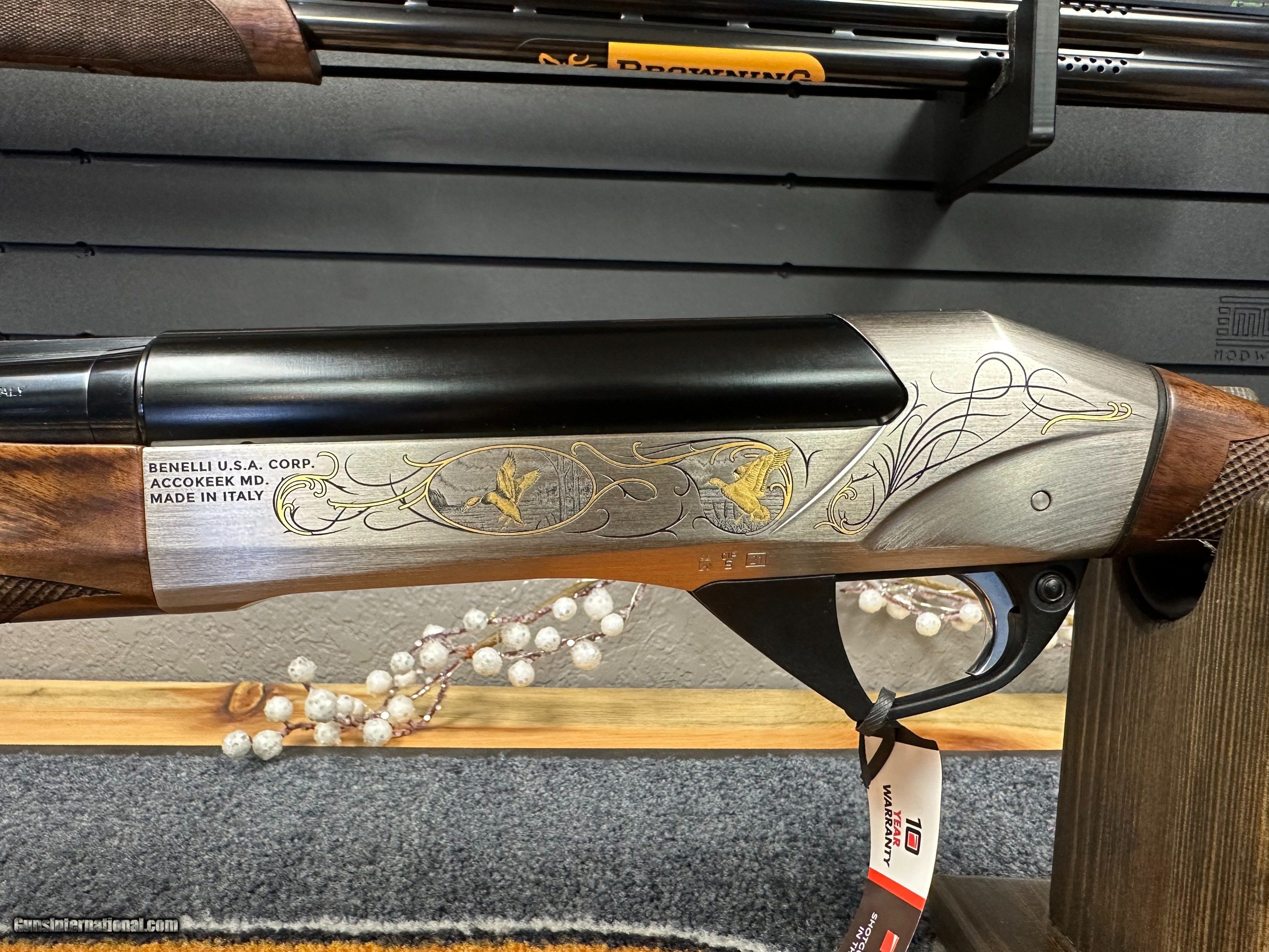 Description: On consignment...NEW CONDITON, NEVER FIRED! Benelli Super Black Eagle 3 Ducks Unlimited 2022 Edition semi-auto shotgun, new condtion never fired! Features a 27.5" high vent rib barrel with extended choke, carbon-fiber rib, easy-locking bolt system, enlarged bolt handle and release, fiber-optic front sight, and extended Crio choke tubes. Beautiful coin finished receiver with DU embellishments and gold-inlaid with waterfowl scene engraving. 28” polished blue barrel with extended choke tubes. Checkout the special DU serial number and the hard case with DU logo to complete this highly sought-after shotgun. Rare opprotunity to get a unique DU gun in pristine conditon! Contact Don at Bad Oscar Shooting Sports at 715-388-8411 or cell 414-915-9609 SOLD Shotgun Gauge: 20 Gauge Manufacturer: Benelli Model: Super Black Eagle 3 Ducks Unlimited Serial Number: 2022DU0735F Barrel Length: 27.5 Ejectors: Semi Auto Ejection Condition: New Metal Condition: New Wood Condition: New Bore Condition: New Barrels: Steel Blued High Glos Barrel Type: Steel Action: Semi Auto Butt Pad: Black Rubber Rib: Vented Rib Manufacture Date: 2022 Chokes: 5 Extended Chokes Engraving: gold-inlaid with waterfowl scene engraving Item Location: Wisconsin |