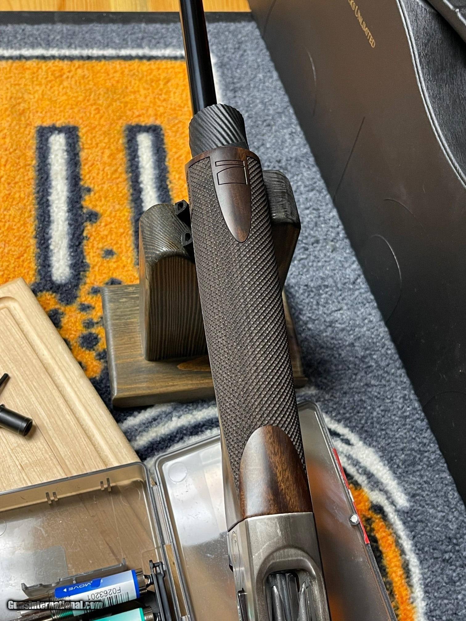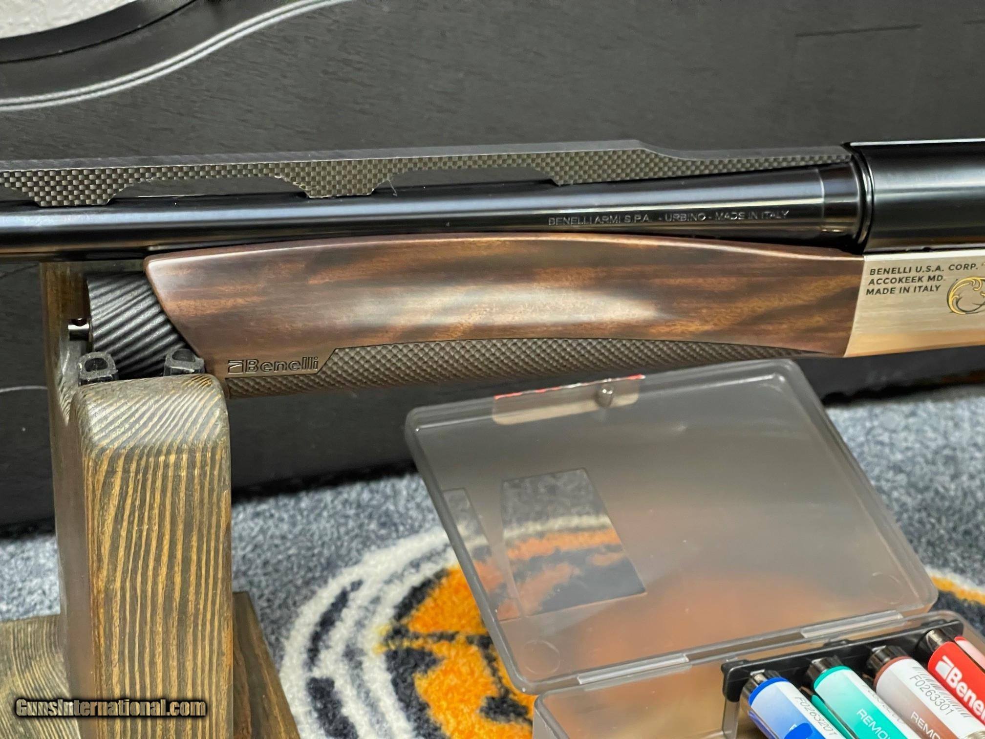 Description: ON CONSIGNMENT - NEW IN CASE - NEVER FIRED - PERFECT CONDITION! This one is part of a Seven gun collection and like the others it is beautiful! Don't miss this one... They are moving fast! DU’s Shotgun of the Year is a Benelli Super Black Eagle 3 in 28-gauge. This semiautomatic shotgun has a 3-inch chamber, 28-inch highly polished blue barrel, coin-finished receiver, DU exclusive oil-finished walnut stock, and engraving featuring a gold-inlaid waterfowl scene and the DU logo. This beautiful firearm comes with five extended choke tubes, a special DU serial number, and a gun lock. It was available exclusively at DU events. Contact Don at 715-388-8411 or Cell at 414-915-9609 SOLD Shotgun Gauge: 28 Gauge Manufacturer: Benelli Model: Super Black Eagle 3 Serial Number: 2023DU2135U Barrel Length: 28 Chambers: 3 Condition: NEW Metal Condition: New Wood Condition: New Bore Condition: New Barrels: Highly polished blue barrel Action: Semi-Auto Stock: Turkish Walnut Finish: Coin-finished receiver, Manufacture Date: 2023 Chokes: 5 extended choke tubes Engraving: engraving featuring a gold-inlaid waterfowl scene Item Location: Wisconsin |