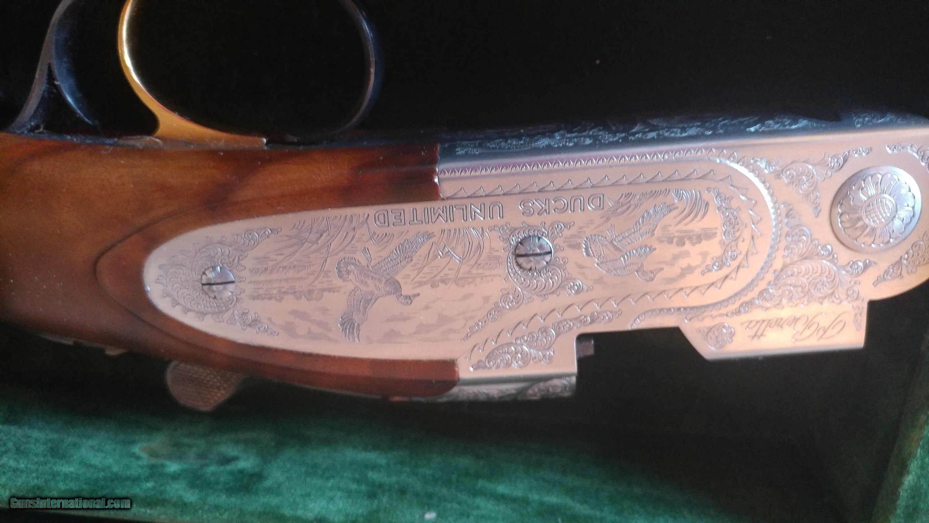 Description: This 687 DU 410 has 26 1/2" barrels. There are no marks on the wood or metal, as shown in the pictures. The gun comes with four chokes, choke wrench, key, and Ducks Unlimited case. 99% gun! SOLD |