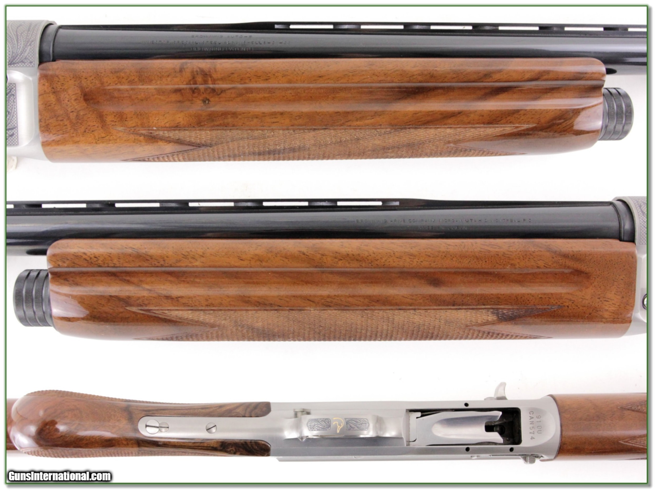 Description: Collectors, this is a rare chance to pick up a 1991 Ducks Unlimited A5 Magnum 12. These Magnum 12’s were only made for Canada and not many have made it across the boarder. All the USA DU gun were Light 12s. These have different engraving with a lot a birds. They have 30in invector barrels! It is the only one I’ve ever seen or had! Shipping with insurance is $59. Please email me with any questions or larger pictures. (Consign your quality firearms with Shooting Investments for only 12%! Let me know if you have any you would like to sell!) 18-1253 Payment: Payment is by Money Order, Cashiers Check or Personal Check. I can now also accept Credit Cards (MasterCard, Visa, Discover & American Express) with a 3% convenience fee. PayPal can be used for some items but never for firearms. Shipping: The shipping charge will be listed in each description. It is $39 for most firearms. Some heavy guns or those insured for over $2000 will be higher. Shipments to Alaska and Hawaii are higher because air shipment is required. Most firearms are shipped on Tuesday and Thursday and usually in 5 days of receipt of payment. We package all shipments carefully and insure them. Optics are shipped Priority Mail and most other non-firearm shipments are shipped First Class. Returns: Our return policy is simple. If for any reason you are not pleased with your purchase, you may return your item for a full refund of purchase price. Ammunition cannot be returned. It is important to us that you are happy. Guns cannot be fired or dissembled before returning them and they must be returned in the same condition as received. Notification of a return must occur with-in 3 days of receipt at your dealer. Shipping, convenience and dealer fees are not refundable and are the responsibility of the buyer. Lay-a-way: If needed, we offer a 60 day lay-a-way option on most firearms. It is 1/3 now, 1/3 in 30 days and 1/3 in 60 days. Lay-a-way firearm sales are final and if not completed the first payment cannot be returned. Consigning your firearms with Shooting Investments: We will help you get top dollar for your firearms. While most local guns shops charge 20% or more, our fee is only 12% with a minimum of $75. At your local gun shop it might take months to sell. Selling on-line provides instant access to thousands of interested buyers. You won’t find any other on-line dealer willing to sell your firearms for only 12% or listing every gun on 3 separate s. Selling through an House typically costs the seller 15% and the buyer an addition 15% (so 30%) and you have to wait several months to sell and longer to receive funds. If properly priced, we will sell your firearms in a few weeks. Send us an email or give us a call and we’ll explain how easy it is for you to get top dollar. Trading: Trading for use is really just buying your gun to re-sell. If you have a gun you want to trade, please email a picture and we will let you know what we can give or it. You will always get more if we sell it for you on consignment. Help for California Buyers: We are happy to ship to California. It is the buyer’s responsibility to make sure any item you buy is legal in your state. We are also happy to help with your purchase of a firearm from someone other than us. If you see a gun you would like to buy but the seller can’t or won’t ship to California they can ship to use and we’ll then ship it to your California dealer. The cost for this service is only $30 + shipping. Let us know if we can help! SOLD |