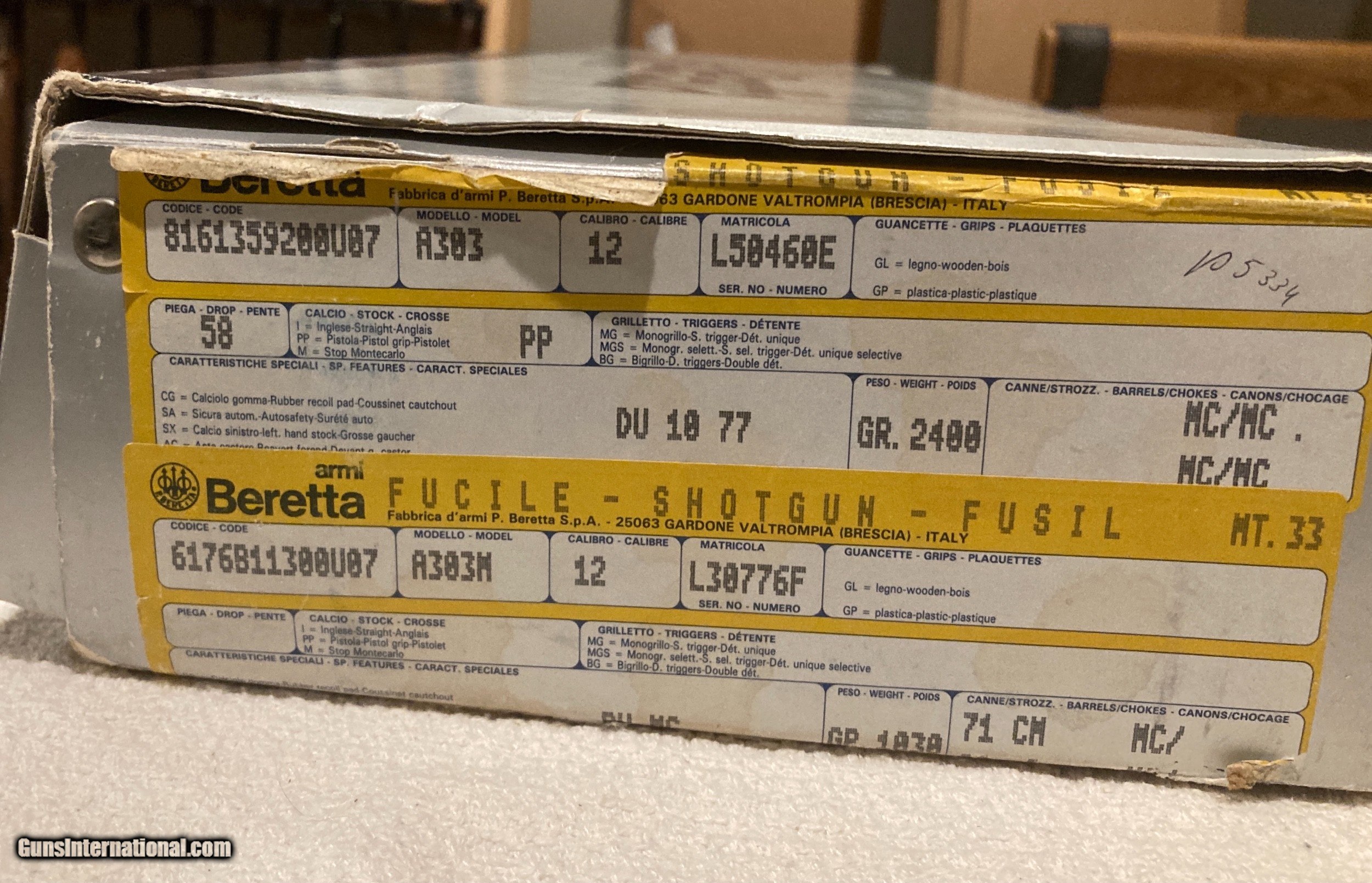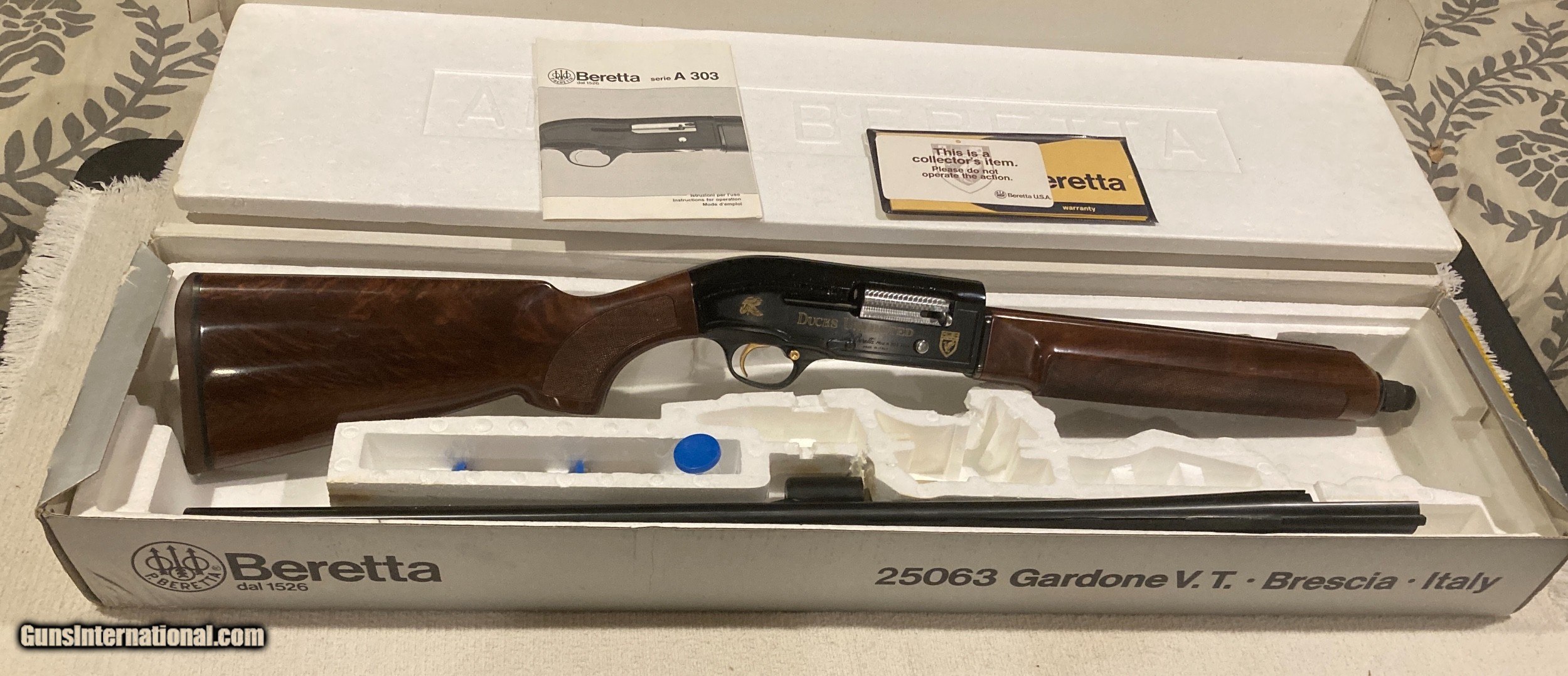 Description: Up for sale NIB 1986 Ducks Unlimited Beretta A303 12 ga , 28" barrel , 3" chamber ,comes with 4 screw in chokes original box and paper work gun is 100% $1,000 SOLD thanks for looking Mike 816-616-5842 SOLD Shotgun Gauge: 12 Gauge Manufacturer: Beretta Model: A303 Barrel Length: 38” Condition: Excellent Metal Condition: Excellent Wood Condition: Excellent Bore Condition: Excellent LOP: 14” |