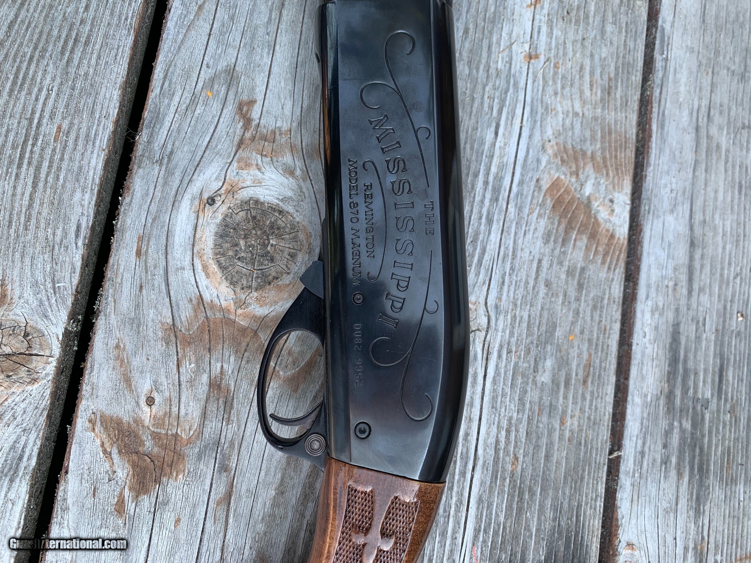 Description: Remington 870 Ducks Unlimited “The Mississippi” 12ga 3” 32” full choke,serial # DU82 9952,new unfired with the box. SOLD |