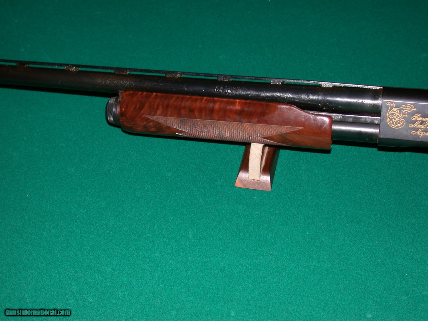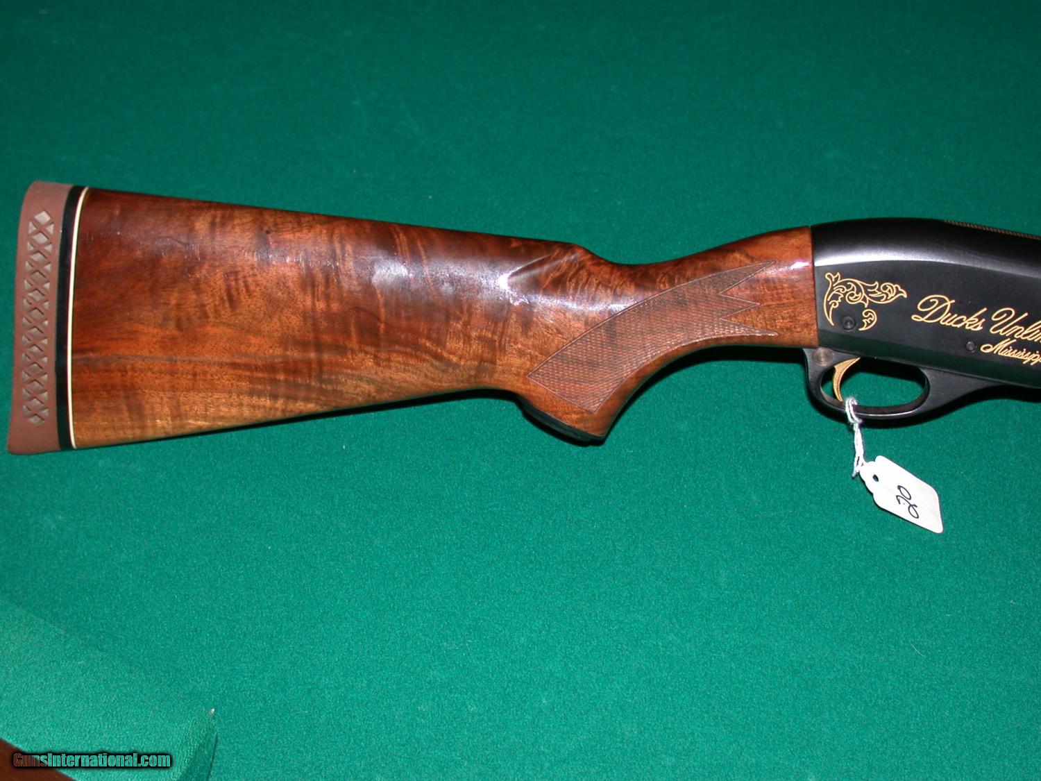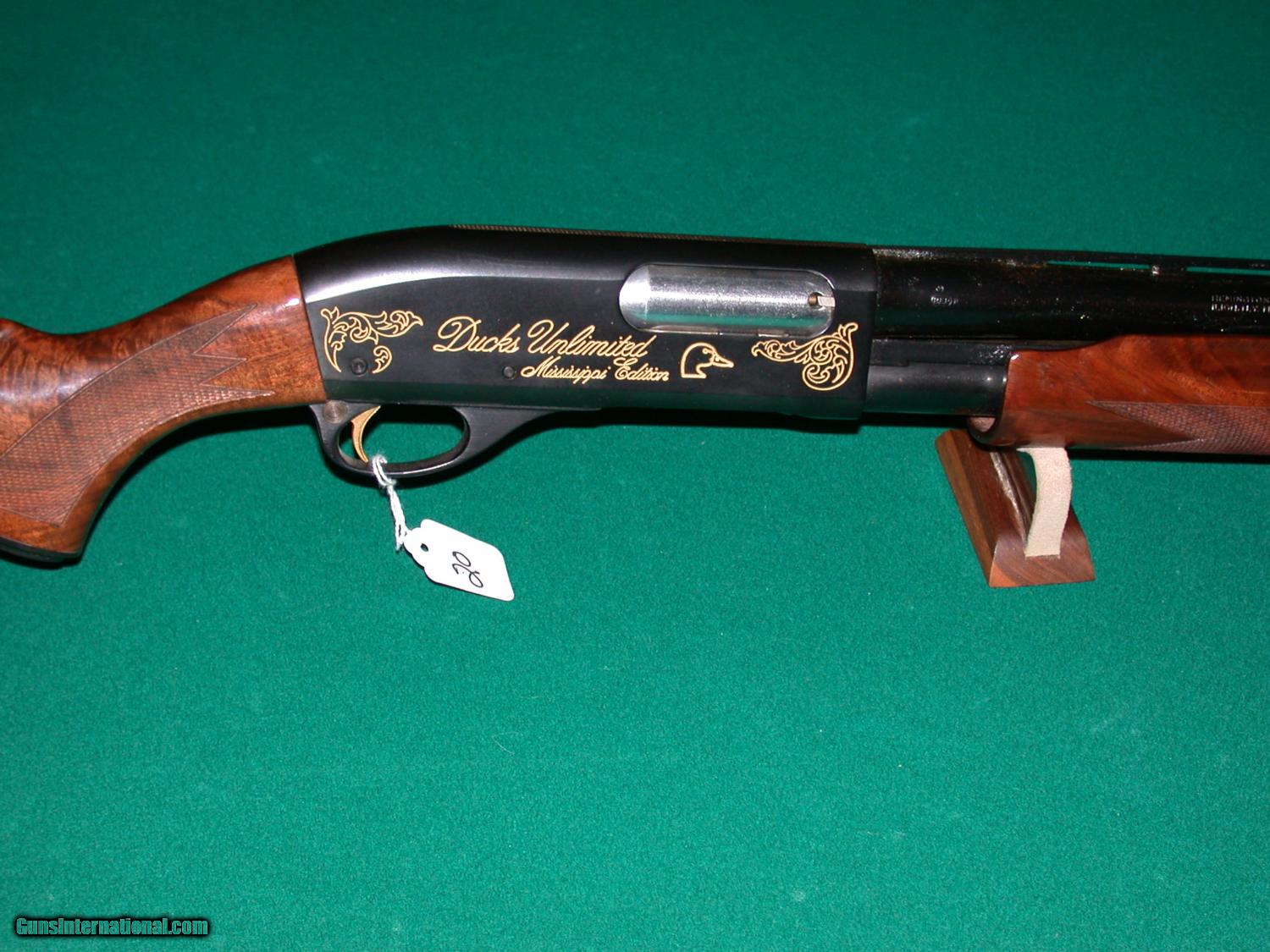 Description: SALE PENDING Remington 870 Ducks Unlimited .12 GA Shoutgun. This is the Mississippi Edition. This .12 GA Shoutgun is chambered for up to 3" shells and is choked full. It has a 30" Barrel and the condition is as follows: Wood is 99% Blue on Receiver is 99% The barrel has some "flecking " on both sides in front of the action. Internally it is correct.This gun has been priced to sell taking in consideration the problem on the outside of the barrel. Buyer pays shipping. SOLD Manufacturer: Remington Model: 870 Serial Number: DU 821530 Caliber Info: .12 Bore: Smooth Chambers: 3 Ejectors: Yes Condition: 97% Metal Condition: 93% Wood Condition: 99% Bore Condition: Mirror Barrel Type: Single Action: Pump Triggers: single Gauge Info: .12 Stock: Walnut Butt Pad: Yes LOP: 14 Rib: Vent. Finish: Gloss Sights: Open Chokes: Full Engraving: Minor |