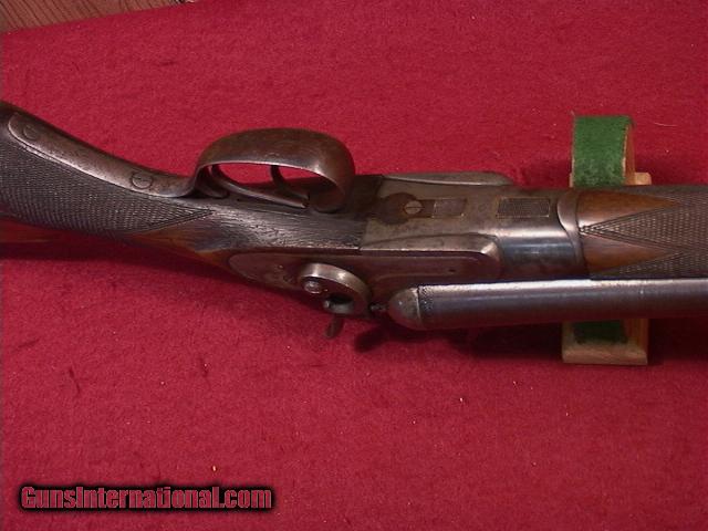 Description: F. DUMOULIN (BELGIUM) 12 GA 18 ¼" HAMMER COACH GUN, 2 ½" CHAMBERS, DAMASCUS BARRELS WITH SOME SCATTERED PITTING IN THE BORES, 30% CASE COLORS, NICE WOOD, TIGHT ACTION, GREAT COWBOY GUN SOLD |