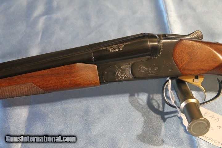 Description: Here is a brand new ,unfired EAA Baikal 410 SXS shotgun with 26 1/2" barrels with pristine bores.Serial number is:9923403B.These are great shotguns in a gauge that is seldom seen! Shipping will be $40 in the continental US.We do not charge you any CC fees. SOLD Shotgun Gauge: .410 Gauge Manufacturer: EAA Model: SXS Serial Number: 9923403B Barrel Length: 26 1/2 |