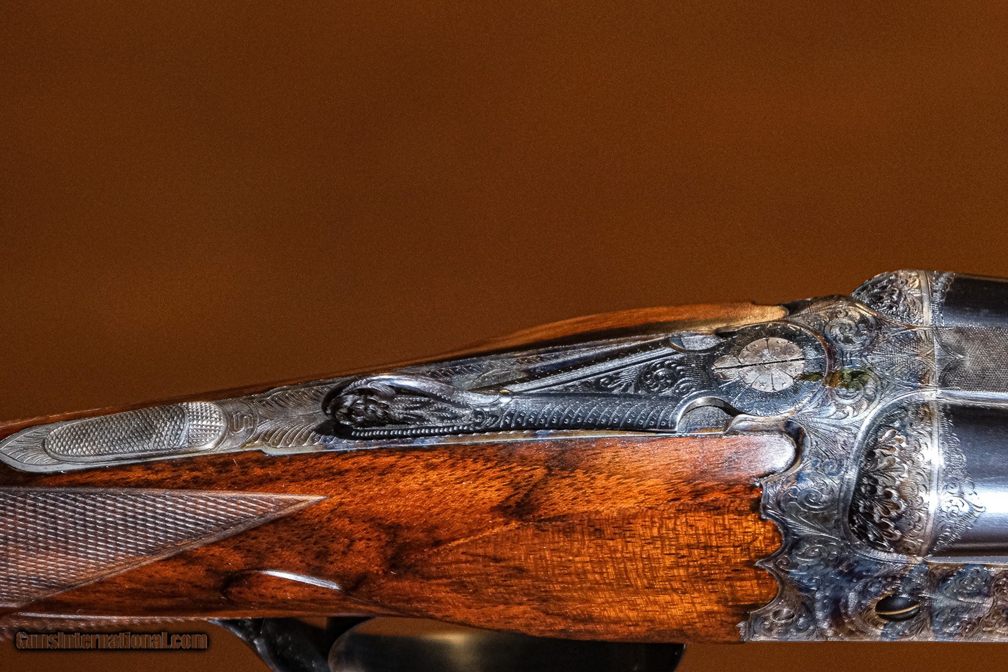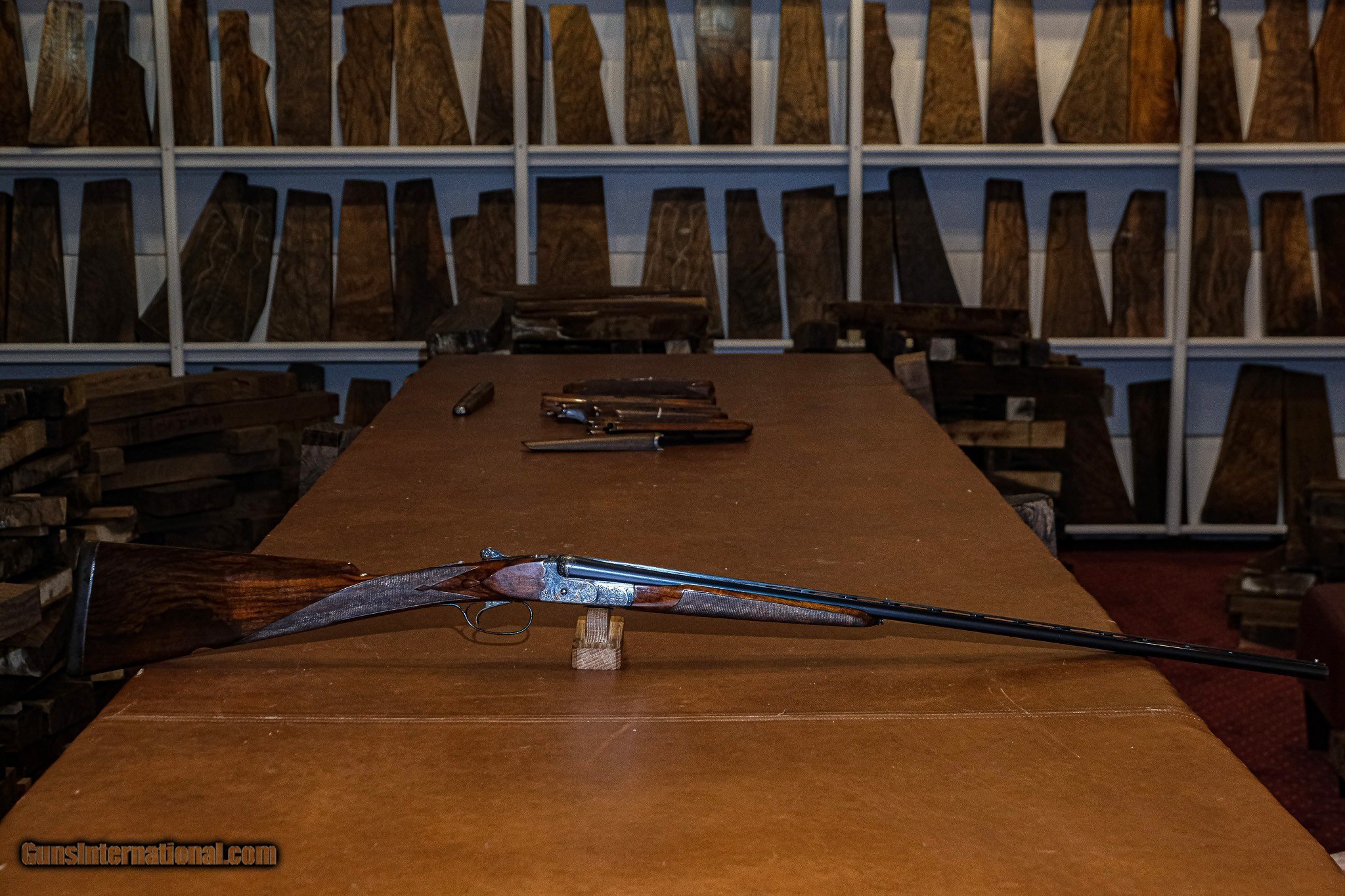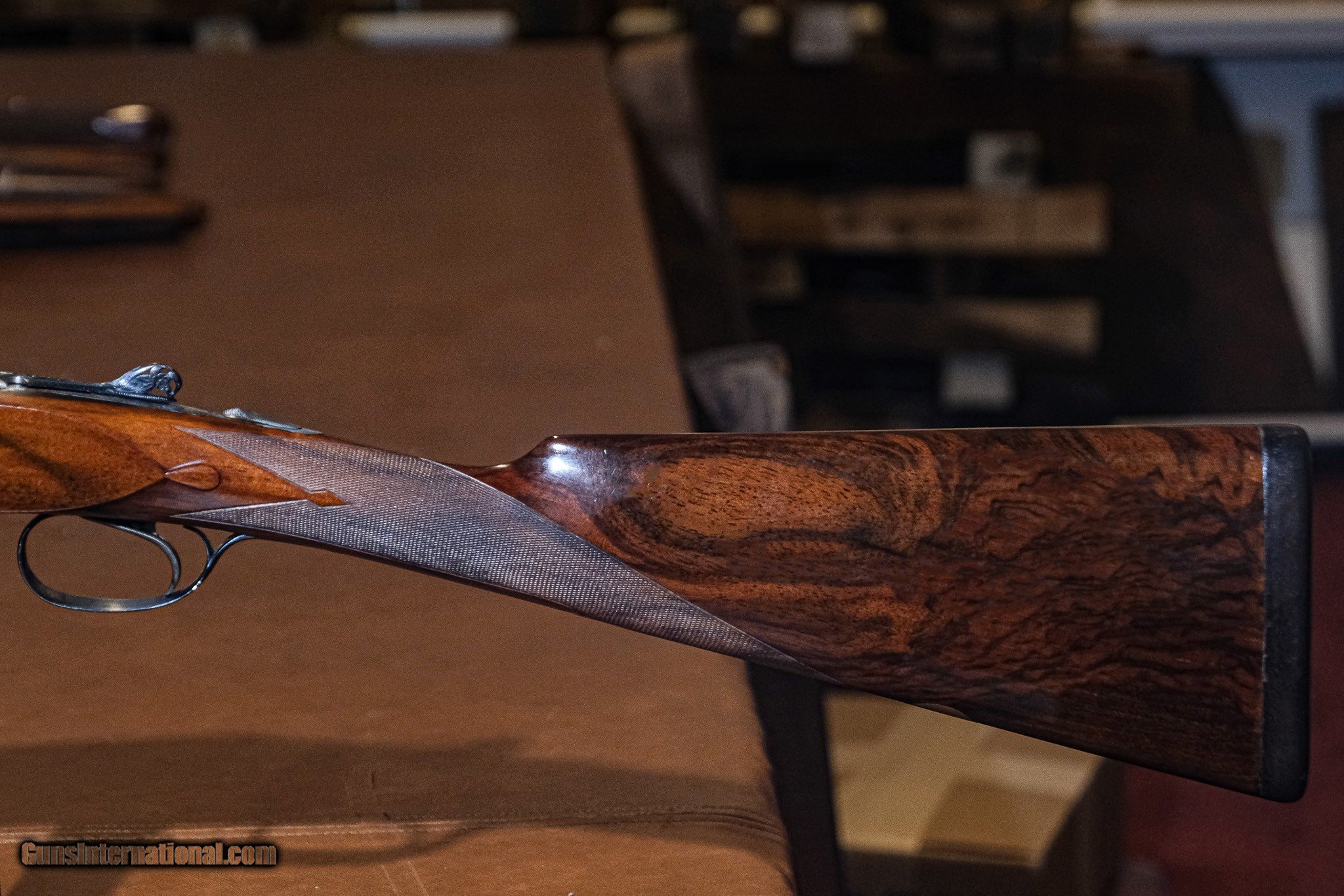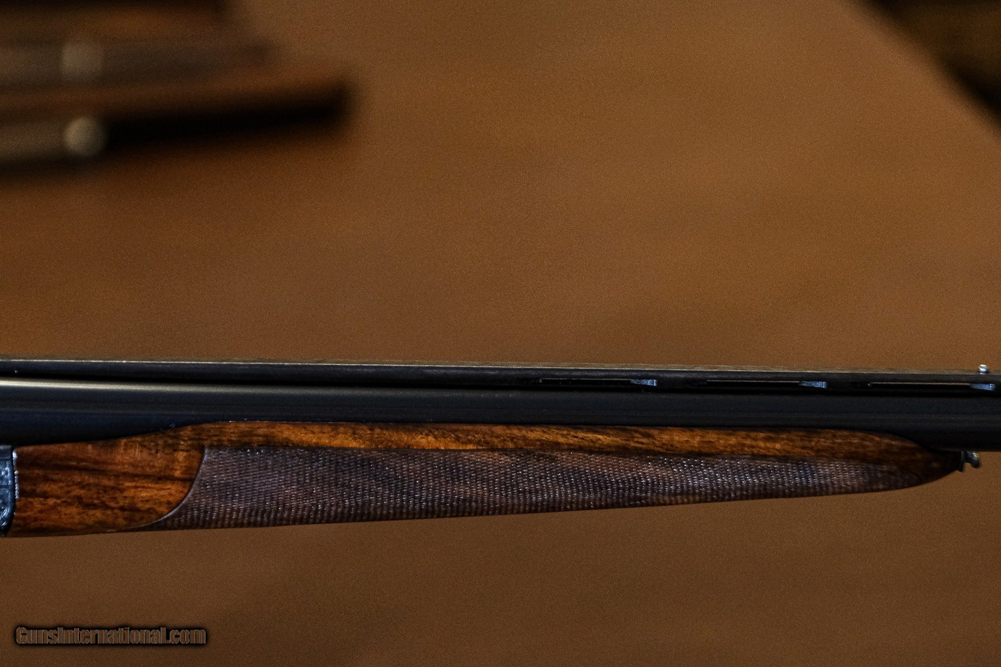 Description: F.illi Rizzini - Miniature Frame, SxS, .410. 27 ½” Barrels Choked M/IM. 27 ½” vent rib barrels choked M/IM. Straight grip, leather covered pad, scalloped frame, drop point, extremely fine line checkering, cocking indicator, 100% engraving on receiver with deep chiseled breeches and beautifully scroll engraved receiver, pierced top lever, single trigger, automatic ejector. This gun was ordered with every single option available. Considered the world’s finest guns from one of the finest makers. Special dedicated miniature frame. 99% wood finish, case color, and barrel blue. Very seldom seen with every option with a vent rib and semi beavertail forend. Sculpted frame. Replacement cost would be over $60,000. Inv: 87961 5 lbs. 6 oz. 14 ¼" x 1 3/8" x 2" $14,995.00 SOLD |