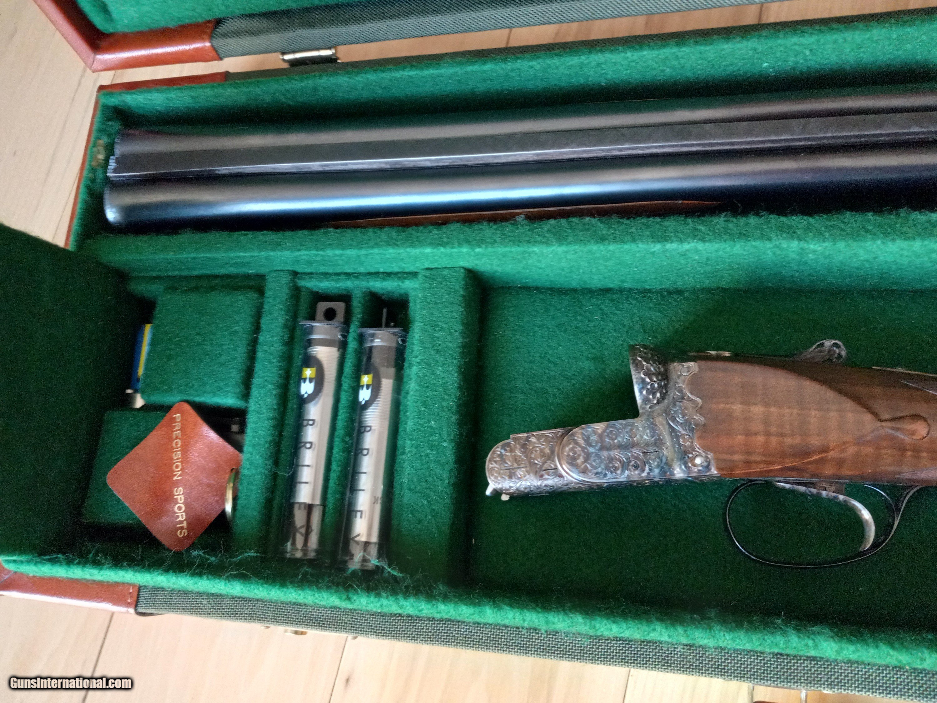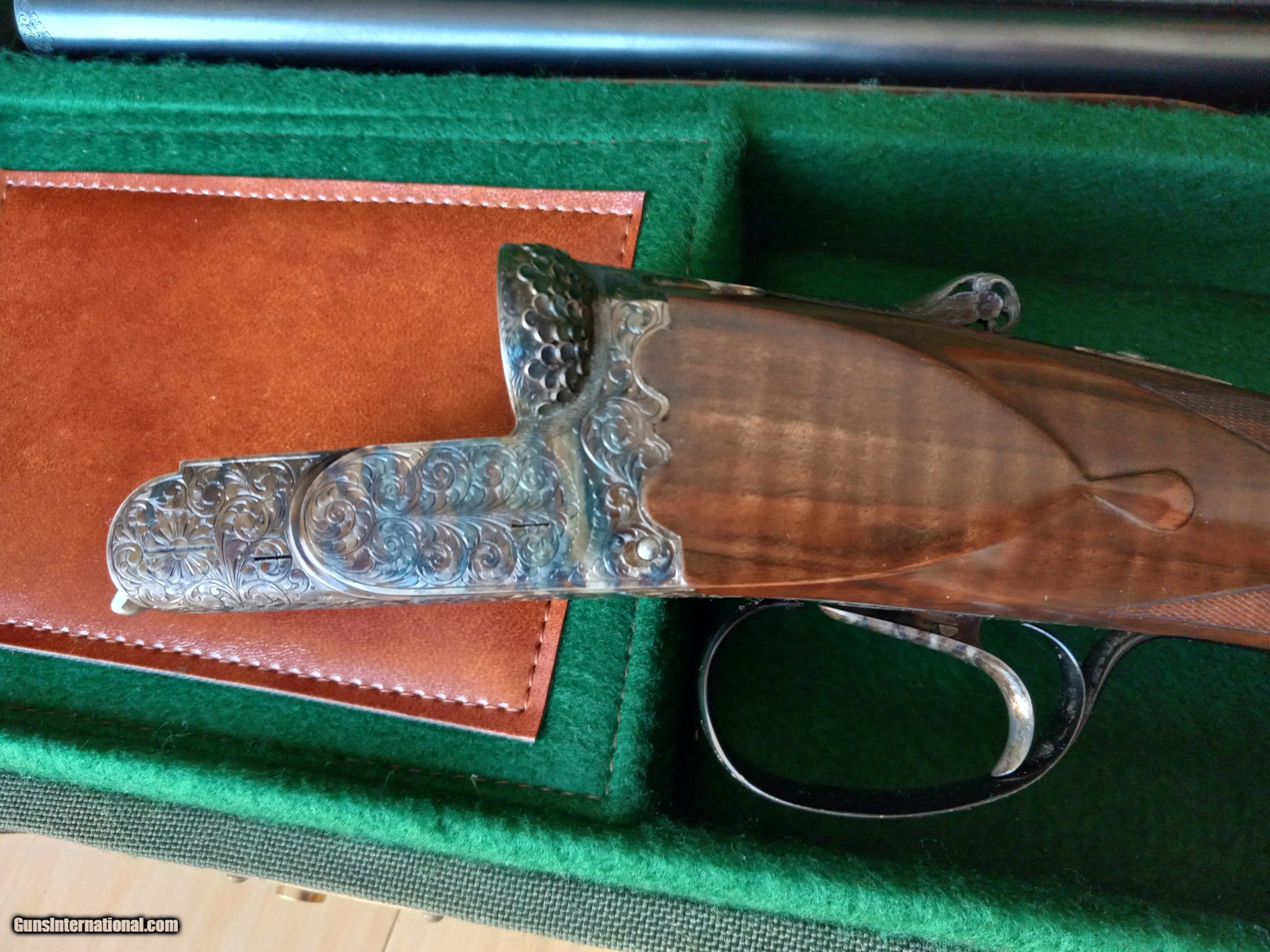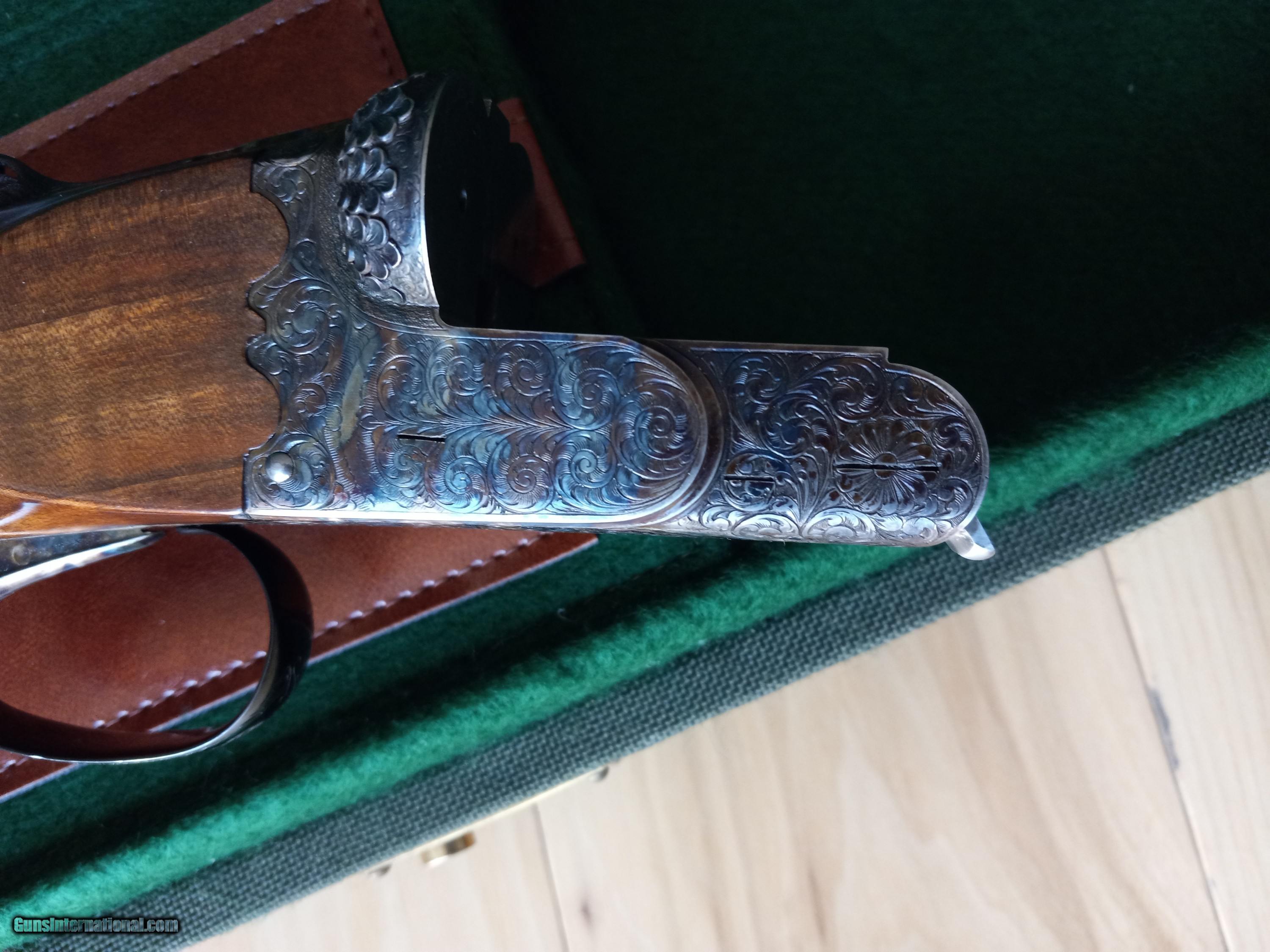 Description: If you are interested in buying this item, please go to: G.U.N.B.R.O.K.E.R item# 1017458458 it's listed there with no reserve! F.lli Rizzini Extra Lusso 12 Ga. 27 5/8" bls, With Briley thin wall S-1 Choke Tubes F.lli Rizzini of Italy has been building the Best Shotguns! This is an Anson & Deeley boxlock ejector side by side double, 12 gauge, with Briley S-1 Thin wall chokes. (Skeet, IC, L Mod, Mod) With 2 3/4” chambers, the 28” (demi-bloc barrels are fitted with a tapered level hand-filed matted rib with a single front silver bead. Features include a non-selective single trigger, automatic ejectors, cocking indicators, and a Non automatic safety. the receiver is case-hardening colors and is fully engraved with gorgeous ornamental scrolls with a small blend of floral, with small triangles of engraving on the breech end of the barrels. In addition to the engraving, the fences are incredibly deep chiseled and carved with oak leaves and the top lever is not only pierced but also intricately shaped with a rose in the pattern. The Wood stock has Straight English Turkish walnut with rich marbled figure with semi-beavertail forearm and Anson release button. It also has panels with tear drops. It Has a gold oval still not yet engraved. Fine checkering in excellent shape. Comes with Classic Double leather and canvas case made by Ugartechea. LOP 13 7/8" . Weight is 6 lb. 9.75 oz. Excellent with some scratches on the stock! $75.00 Shipping and handling to your FFL include insurance. Please make sure your FFL will accept transfers from individual. SOLD Shotgun Gauge: 12 Gauge |