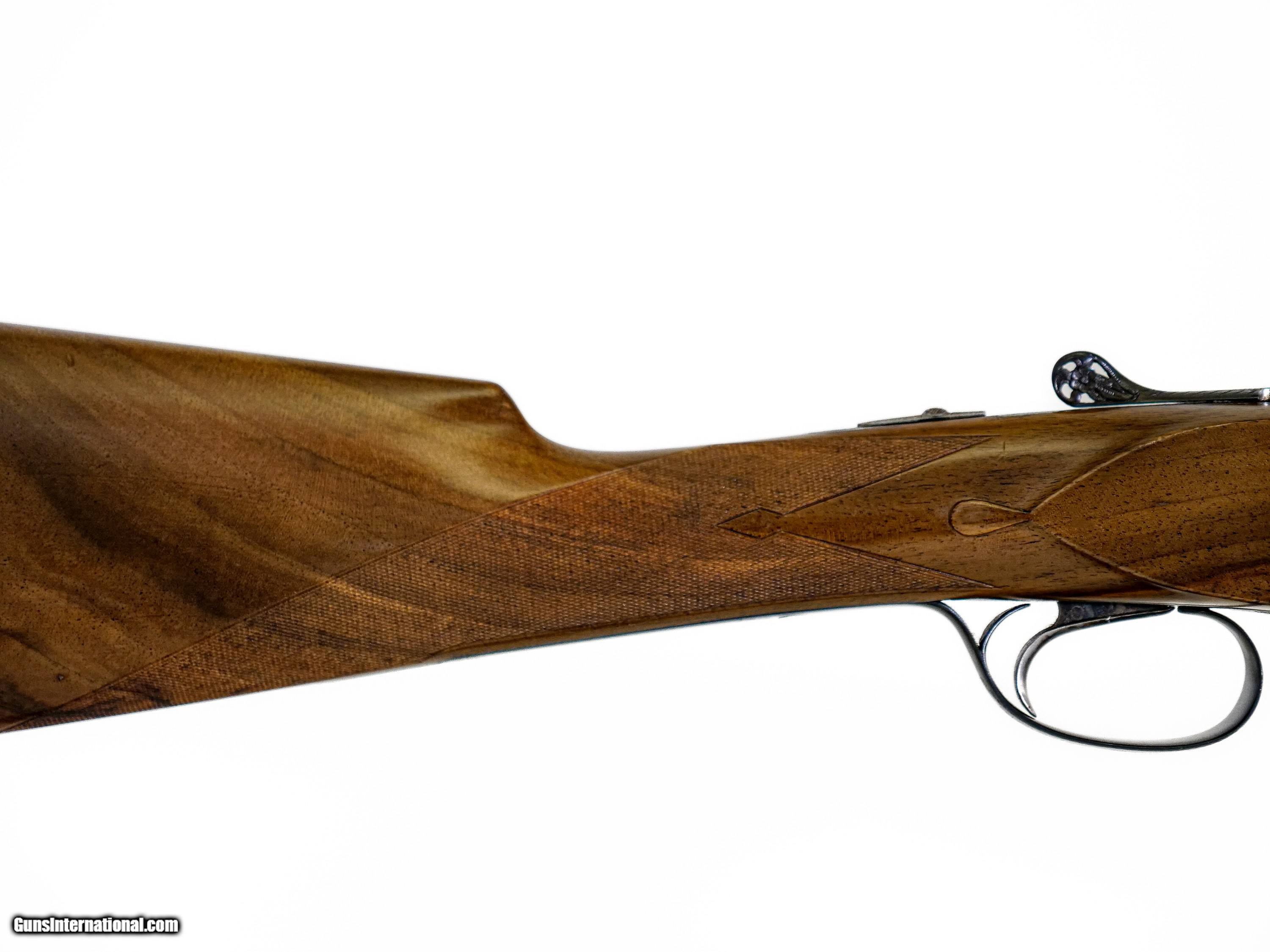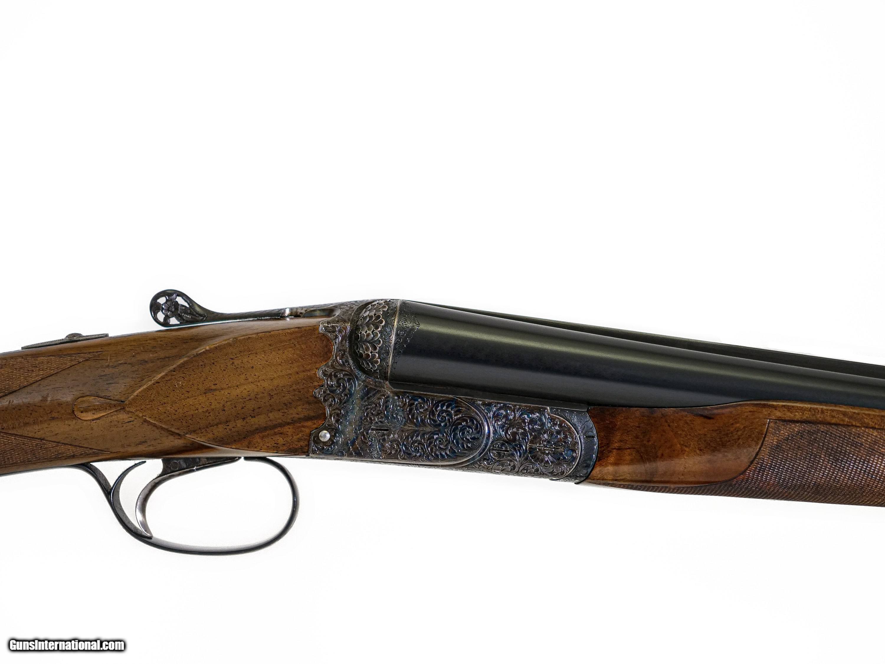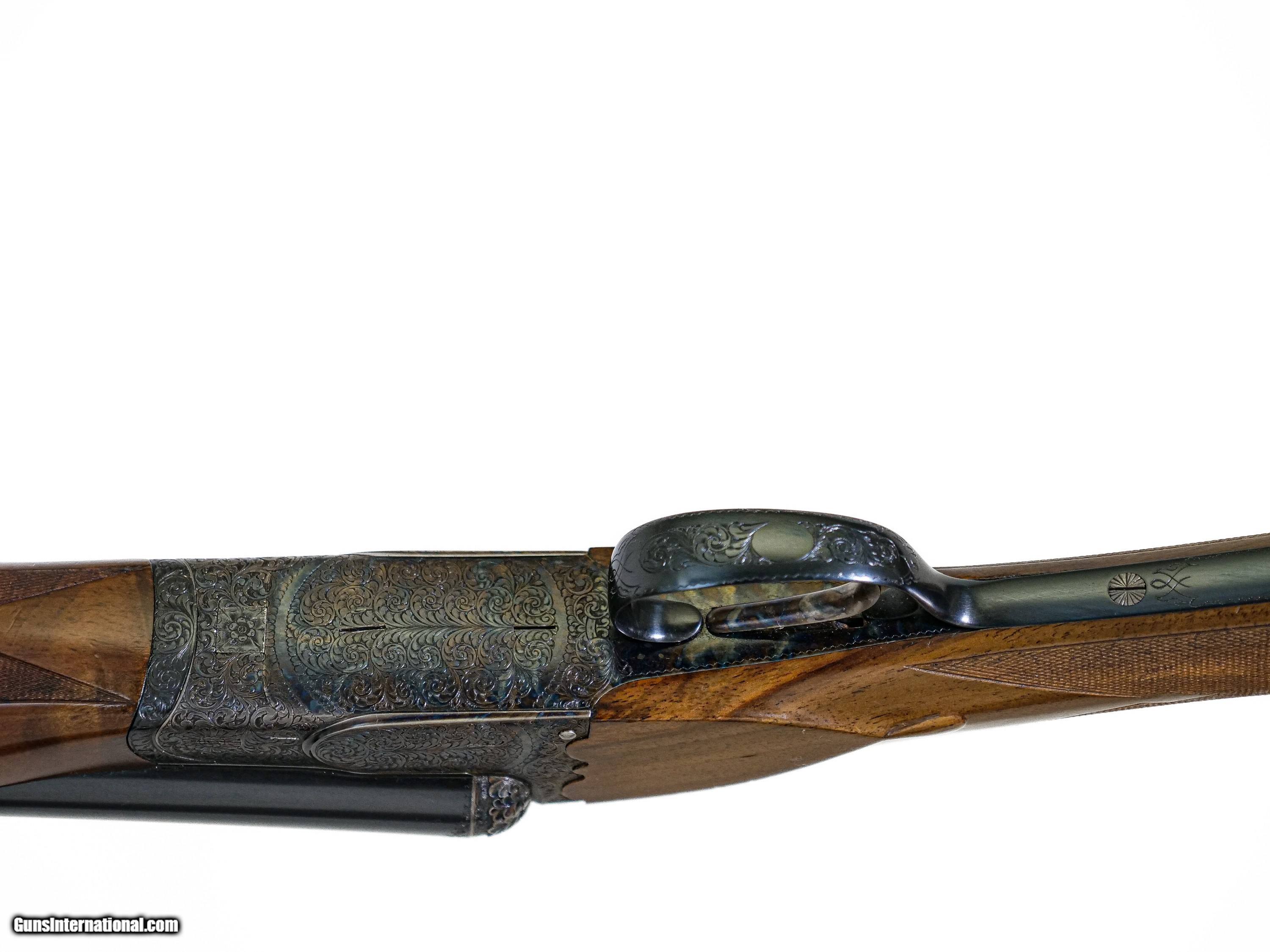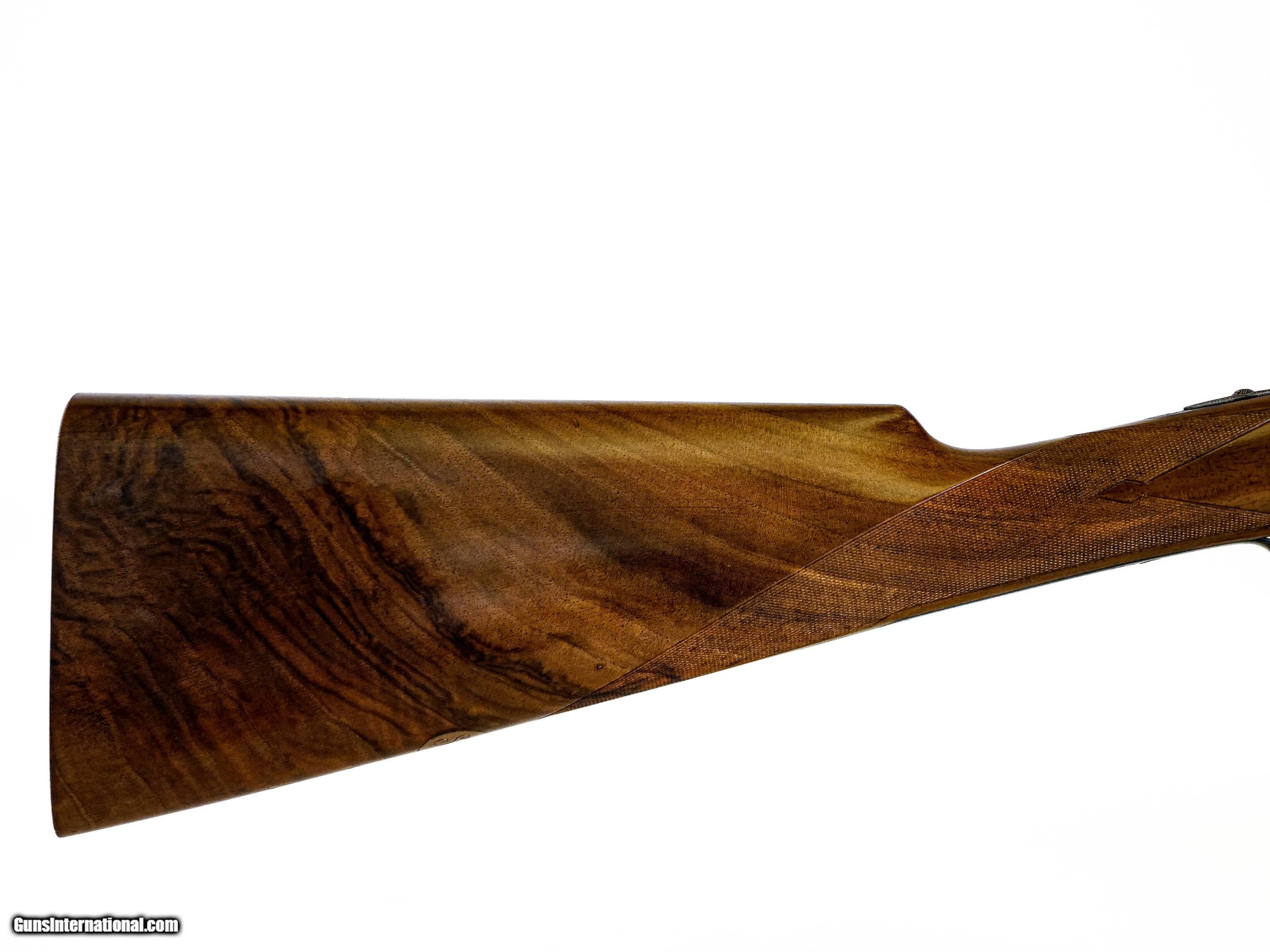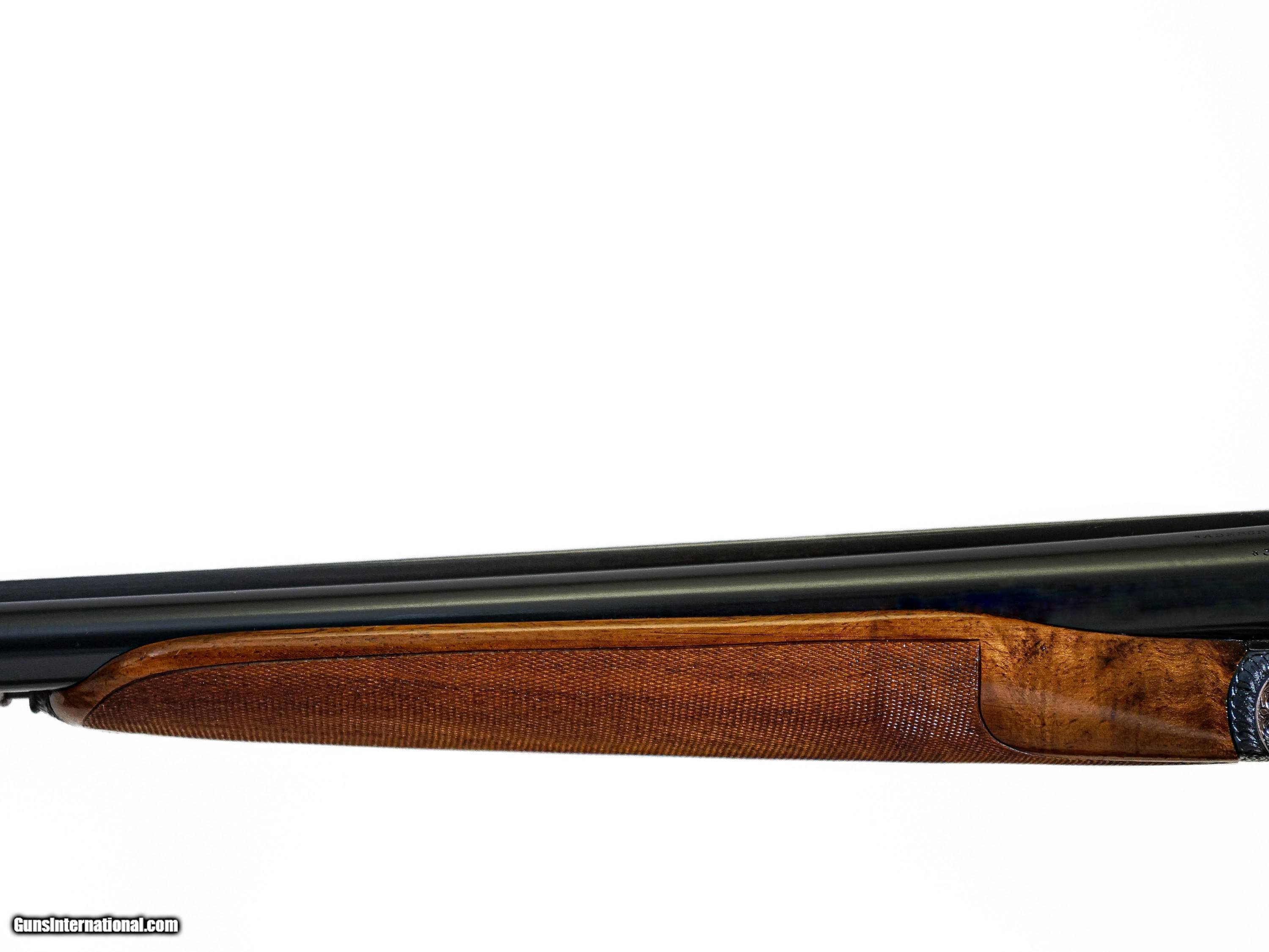 Description: F. lli Rizzini - A&F Extra Lusso, SxS, 20ga. 26" Barrels Choked IC/M. RARE 3” CHAMBERS, beautifully figured European walnut straight grip stock, checkered butt, beavertail forend, single trigger, automatic ejectors, automatic safety, solid rib, pierced top lever, gold oval, excellent fine line checkering, beautifully scalloped receiver with incredible deep chiseled breech balls, gorgeous ornamental scroll engraving over a case colored action, gorgeous 1974 production, made for Abercrombie & Fitch, the finest Italian double from one of the most respected and arguably finest makers in the world, a true bargain for the finest small bore Italian double, if you are looking for the best small bore upland game gun this is it, available for immediate delivery. S&H - $50.00. Inv: 26060 6 lbs. 2 oz. 14” X 1 ½” X 2 ¼” $8,750.00 NO RETURNS. CALL (860) 225-6581 REGARDING INSPECTION PERIOD! SOLD |