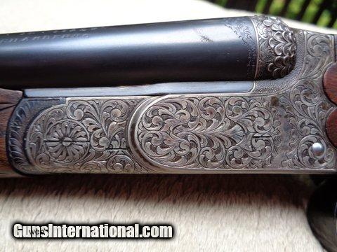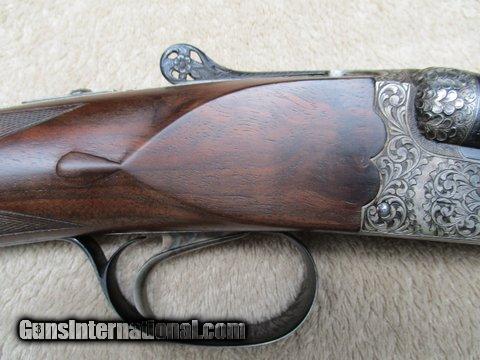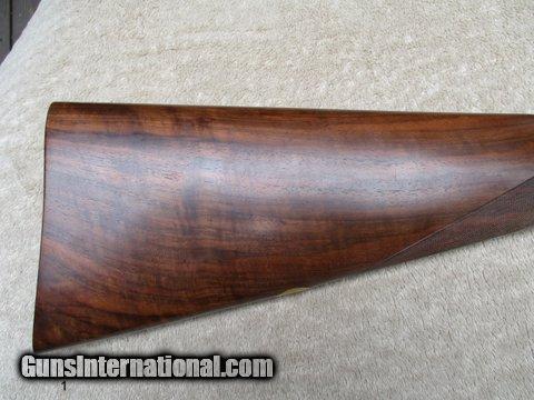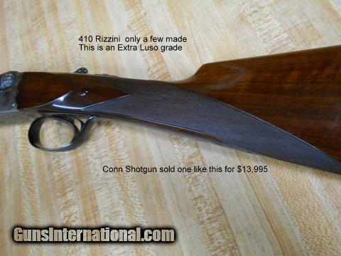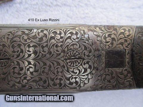 Description: There were 15 A&F F.lli Rizzini Extra Lusso shotguns in 410 bore received at A&F in 1975. F.lli. Rizzini - A&F Extra Lusso, 410ga., 26” barrels, Cylinder/M choked, beautifully figured European walnut straight grip stock, checkered butt, slender splinter for end, single trigger, automatic ejectors, automatic safety, solid rib, pierced top lever, RARE 3” CHAMBERS, excellent fine line checkering, beautifully scalloped receiver with incredible deep chiseled breech balls, gorgeous ornamental scroll engraving over a case colored action, gorgeous 1974 production, made for Abercrombie & Fitch, the finest Italian double from one of the most respected and arguably finest makers in the world, a true bargain for the finest small bore Italian double, if you are looking for the best small bore upland game gun this is it, available for immediate delivery. S&H - $70.00. Trigger pull = 14.25 in Very tight action. Shot very little Dad’s gun , he died 1981 Pierced top lever Wt = 5.42 lbs Conn. Shotgun sold one 2015 G Int #100374066 for $13,499 SOLD Manufacturer: F.lli Rizzini Model: Extra Lusso Serial Number: 1396 Bore: 410 Chambers: 3 inch Ejectors: auto Condition: extra nice Metal Condition: very good Wood Condition: very good Bore Condition: ecxellent Barrels: double Triggers: single Gauge Info: 410 Stock: straight english Stock Dimensions: 14.25 in pull Fore End: splinter Butt Pad: checkered LOP: 14.25 Rib: raised solid Finish: oil stock Weight: 5.42 lbs Sights: metal bead Manufacture Date: 1975 Choke Left: modified Choke Right: cylinder Engraving: very fine Extras: very fine checkering |