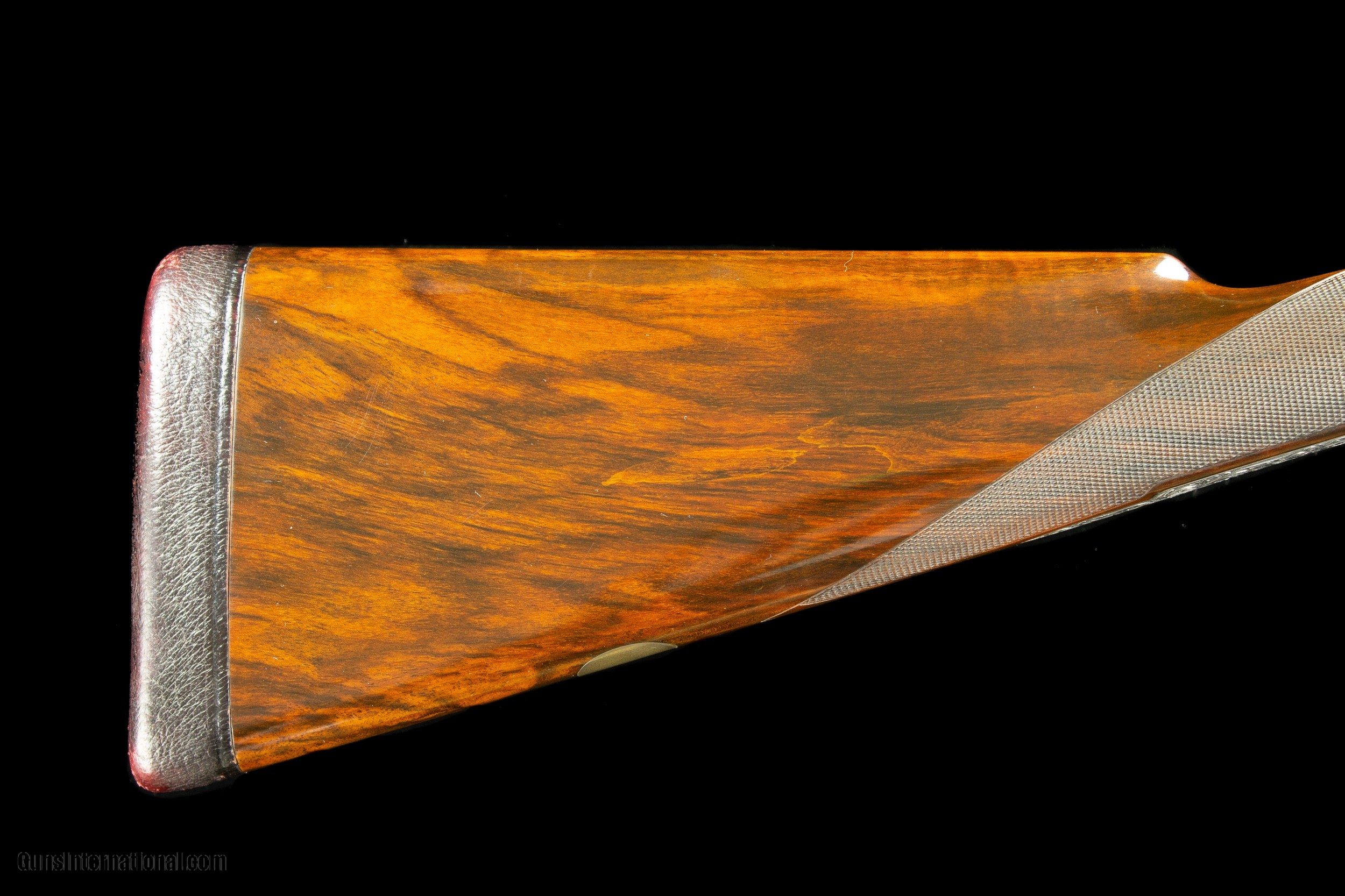 Description: Beautiful Rizzini R-1 SxS with case. 26”bbl with hand filed, tapered rib that has a single silver sighting bead. Rib is marked with “Fili Rizzini Magno V.T.”. Receiver is engraved with floral scroll with mythical swan like birds with dark matte background. LoP 14-1/4”, DaH 1-3/4” and DaC 1-3/8”. SOLD Shotgun Gauge: 20 Gauge Model: R-1 Stock Comb: 1-3/8 Stock Heel: 1-3/4 LOP: 14-1/4 |