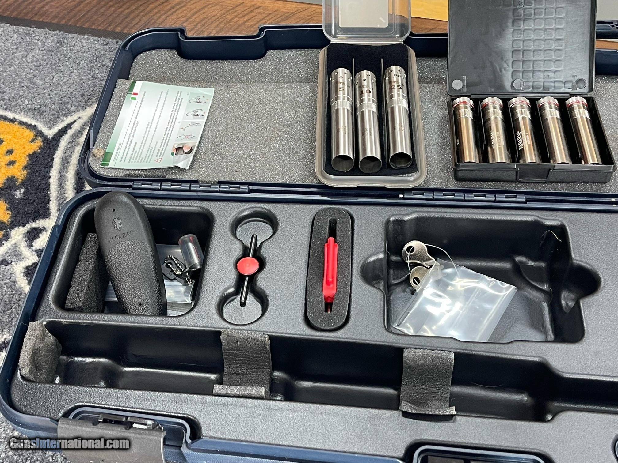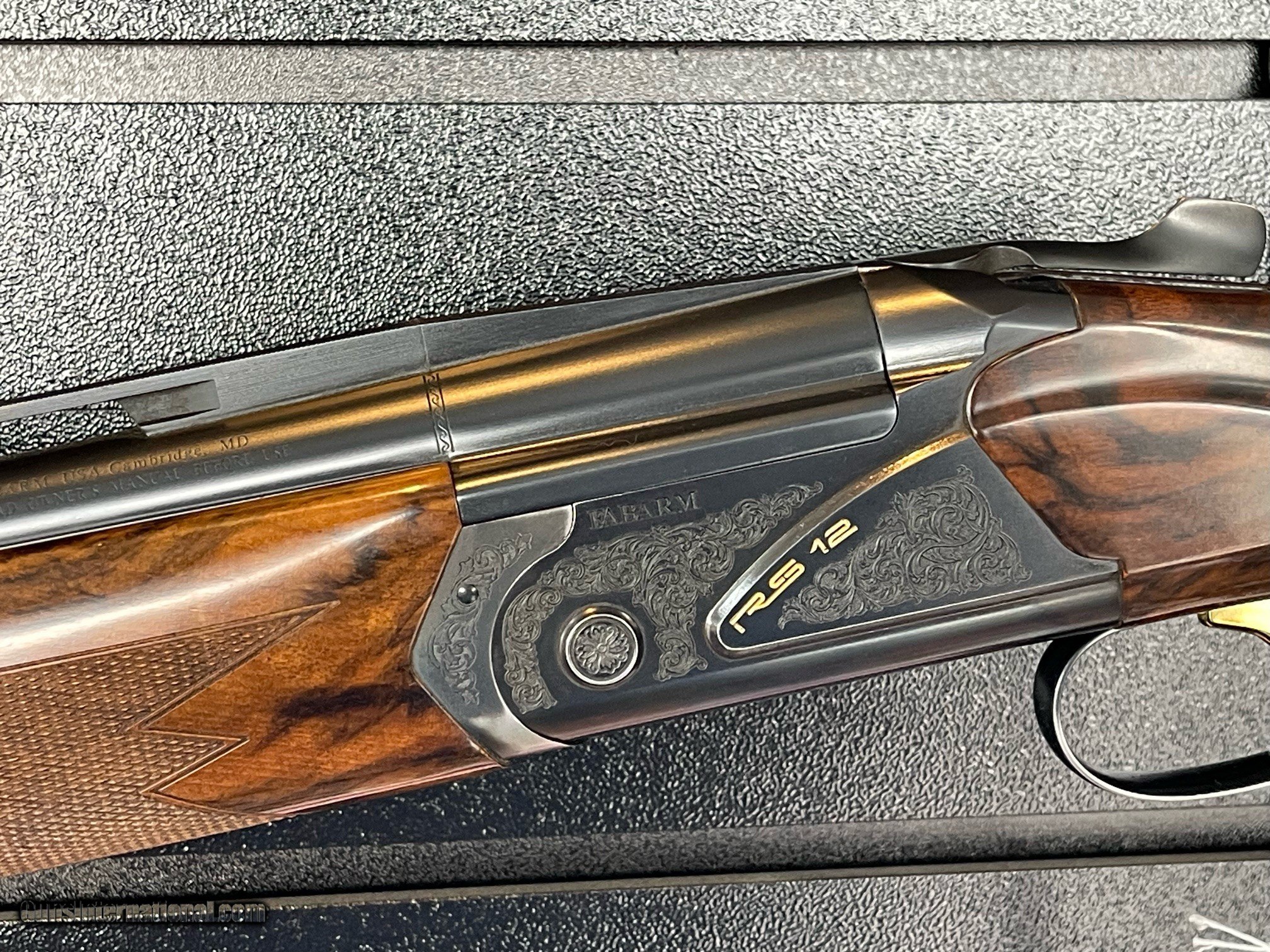 Description: NEW CONSINGMENT SALE!! FABARM AXIS RS12 SPORTING LEFT HAND 12 GAUGE New in our store is this Fabarm Axis RS12 sporting left hand 12 gauge. Featuring a very elegant design with the reciever engraving and free floating barrels, the Axis RS12 is a smooth shooting and good looking gun. This gun is in very good condition. There are some wear marks on the pistol grip and the finish has stated to wear near the hinge on the reciever. Other than that, this gun looks fantastic. This gun comes with an adjustable stock system and black KICK-EEZ recoil pad already installed, as well as 5 Pure Gold ported competition chokes in addition to the 5 factory fabarm chokes. If you are looking to upgrade your sporting shotgun, it would be hard to go wrong with this purchase. Also with a very accessible price point, this gun is an easy addition to your collection. INCLUDES: 5 EXIS HP™ Competition Chokes (skeet, improve cylinder, modified, improved modified, full) 5 pure gold ported chokes (.005,.010, .015, .020, .025) Adjustable Stock Plate System Black KICK-EEZ Recoil Pad Factory Fitted Hard Case For more information contact Don at Bad Oscar Shooting Sports at 715-388-8411 SOLD Shotgun Gauge: 12 Gauge Manufacturer: Fabarm Model: Axis RS12 Sporting Serial Number: E25862 Chambers: 3 Ejectors: Auto Condition: Excellent Metal Condition: Good Wood Condition: Excellent Bore Condition: Excellent Barrels: Over Under Barrel Type: tapered free-floating Tribore HP barrels Action: Break Triggers: Single Selective/Competition Tuned Stock: Monte Carlo w/adjustable plate system Stock Comb: Monte Carlo Fore End: Rounded Butt Pad: Black KICK-EEZ Recoil Pad LOP: Info coming soon Rib: Fixed/Vented Finish: TRIWOOD Weight: 8 lbs. 4 oz Sights: Green Fiber Optic Front Sight, Silver Mid Bead Chokes: 5 EXIS HP™ Competition Chokes (skeet, improve cylinder, modified, improved modified, full) + 5 pure gold ported chokes .005,.010, .015, .020, .025) Extras: 5 pure gold ported chokes .005,.010, .015, .020, .025 Case: Factory Fitted Hard Case Item Location: Wisconsin |