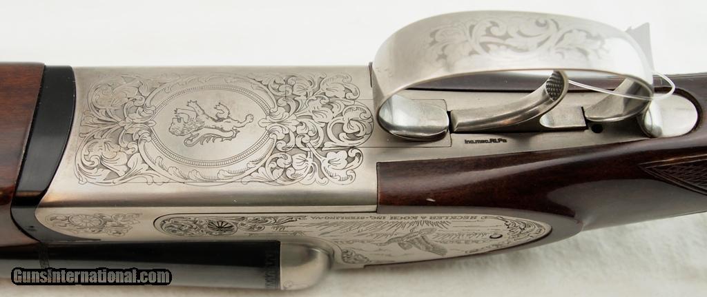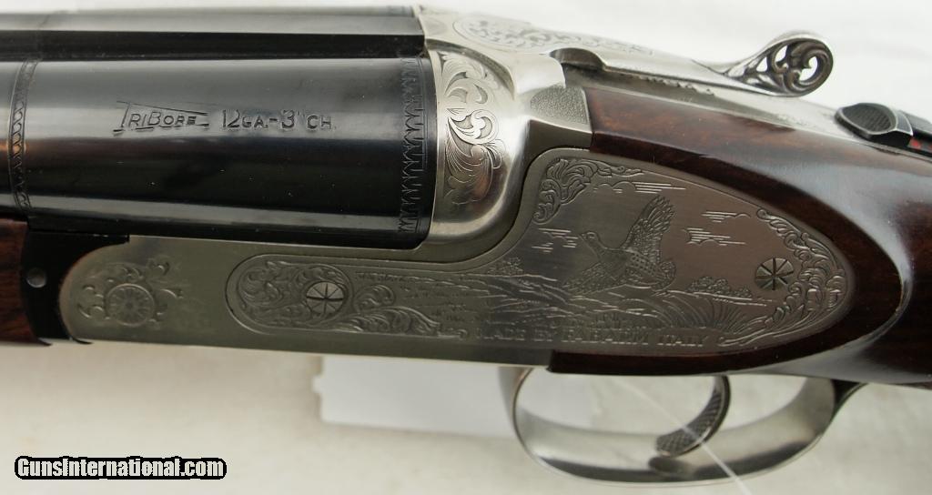 Description: Fabarm, Classic, Lion, Grade II, 12 GA 3", 28" ribbed SXS bbls, blued finish, choke tubes installed L-MOD R - IMOD, bright shiny bores, Italian made imported by Heckler & Koch, engraved Stainless Steel receiver, single selective trigger, lop - 14 1/2", doc - 1 1/2", doh - 2 1/4", auto ejectors, fancy wood stock checkered grip and forearm. This shotgun is in excellent condition with 99% bluing, engravings are sharp and clear, checkering is intact , and very minor handling marks. Add 3% for Credit Card Shipping $25.00 SOLD |