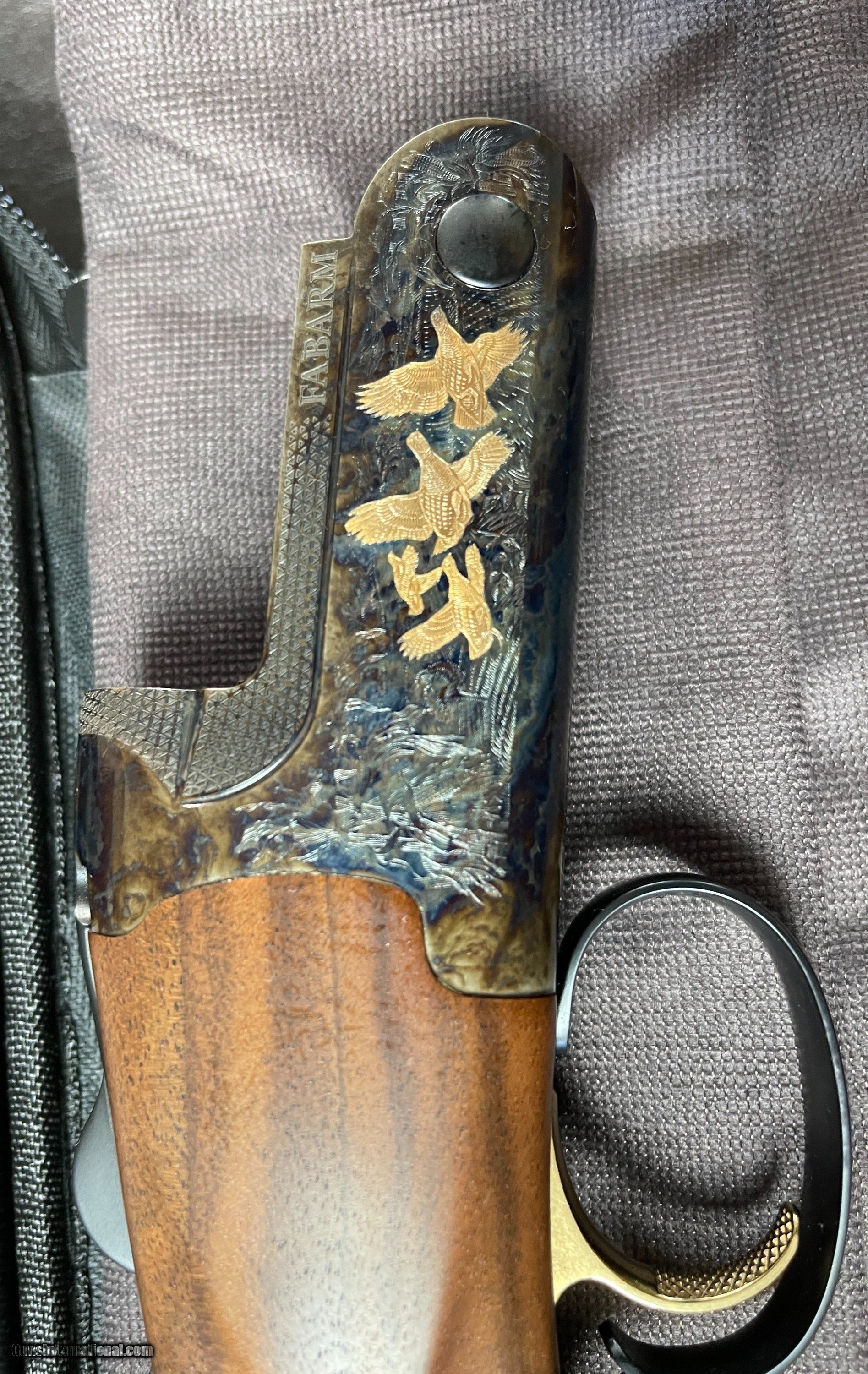 Description: I'm restricted to posting only MSRP.... text me for the best price! 727-744-2224 Steven ://shotgunhunters/ Shotgun Hunters is a family business owned by bird hunters, we hunt! I'm always happy to answer any questions you may have or place a special order for a gun that you can't find. No extra crazy fees for special orders. For over a century, Fabarm has been merging traditional craftsmanship with modern technology to create shotguns that combine attractiveness and functionality. The Fabarm Elos 2 Elite is no exception. The Elos 2 Elite is a purpose-built shotgun, with refinements that you can feel as well as see. Its Pistol Grip stock provides a comfortable and repeatable hand placement and smooth mount during the sudden flush of wild birds. While its light weight adds to the ease of carrying during long days in the field. The stock and fore-end are crafted with a deluxe grade of walnut with a matte oil finish to provide a distinguished look. Designed for the discerning upland hunter, the receiver is richly color case hardened with traditional game scene engraving and gold inlays of game birds. Tested on some of the toughest upland birds in the world, this fine Italian shotgun will deliver consistent performance for American hunters all season long. Fabarm’s proven TRIBORE HP™ tapered bore and INNER HP™ chokes ensure optimal pattern performance while reducing felt recoil. Fabarm has engineered a shotgun built for the serious upland game hunter – combining unmatched performance with a beautiful design aesthetic, all at a price range that puts these shotguns well within reach. The combination of fine Italian craftsmanship and a wealth of innovative features makes the Fabarm Elos 2 Elite a shotgun that is both beautiful and functional. SOLD Manufacturer: Fabarm Model: Elos 2 Elite Bore: 20 gauge Chambers: 3 Condition: NEW in Box Metal Condition: NEW Wood Condition: Beautiful Barrels: O/U Barrel Type: Tribore HP Stock Comb: 1.5 Stock Heel: 2.25 Rib: 6mm Weight: 6.09 Manufacture Date: 2022 Engraving: Copious Amount Item Location: Florida Proof:Nitro: 1630 bar |