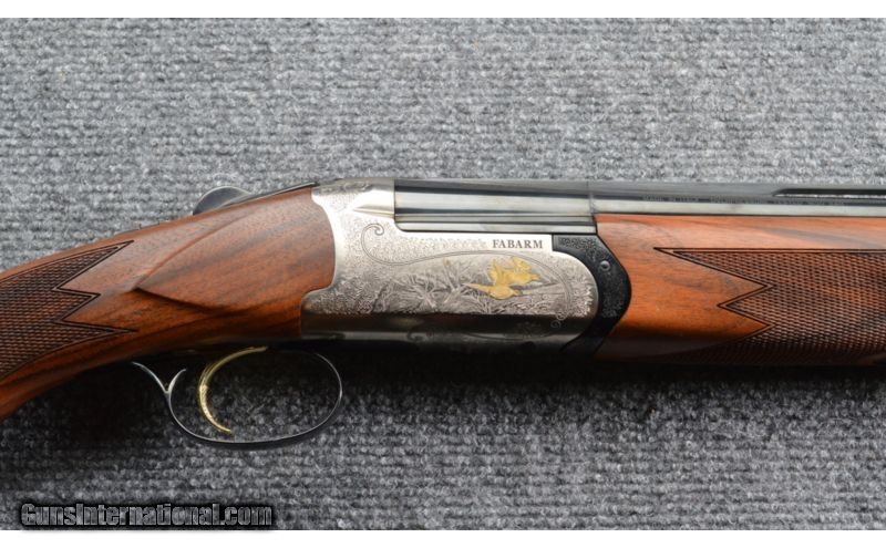 Description: This Fabarm Elos Deluxe 20 gauge shotgun will be a unique and wonderful addition to any firearms collection. This gun is an in excellent condition and features a single bright brass trigger with selector switch on the safety. The gun is chambered for a 3 inch shell and features a 28 inch barrel with ejectors and a vent rib with a front sight bead. The Fabarm comes with five choke tubes and a very nice case with accessories. Both the stock and the fore end are beautifully checkered and finished and the metal surfaces are in excellent condition. Weighing in at just 5 pounds, 6.5 ounces, mounting and shooting this shotgun is a pleasure. Please review the attached photographs to appreciate the beauty and balance of this gun. SOLD Caliber Info: 20 ga. Chambers: 3 inch. Metal Condition: Excellent. Wood Condition: Excellent. Bore Condition: Bright and shiny. Barrels: 28 inch Triggers: Single. Stock: Checkered walnut grip. Stock Dimensions: 14.75 LOP. Fore End: Checkered to match. Butt Pad: Rubber. Weight: 5 lbs 6.5 oz. Sights: Vent rib with bead. Chokes: 5 chokes in the case, current is cylinder. Item Location: Gainesville, VA |