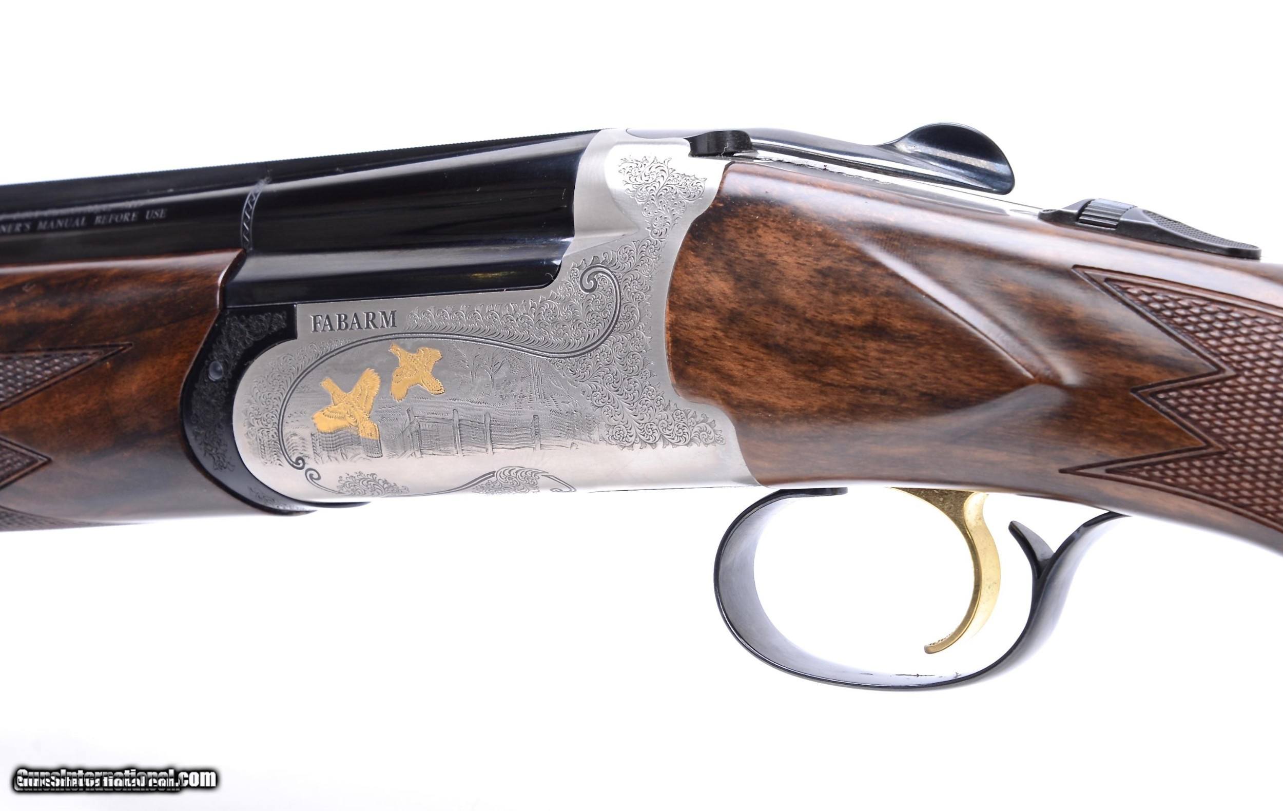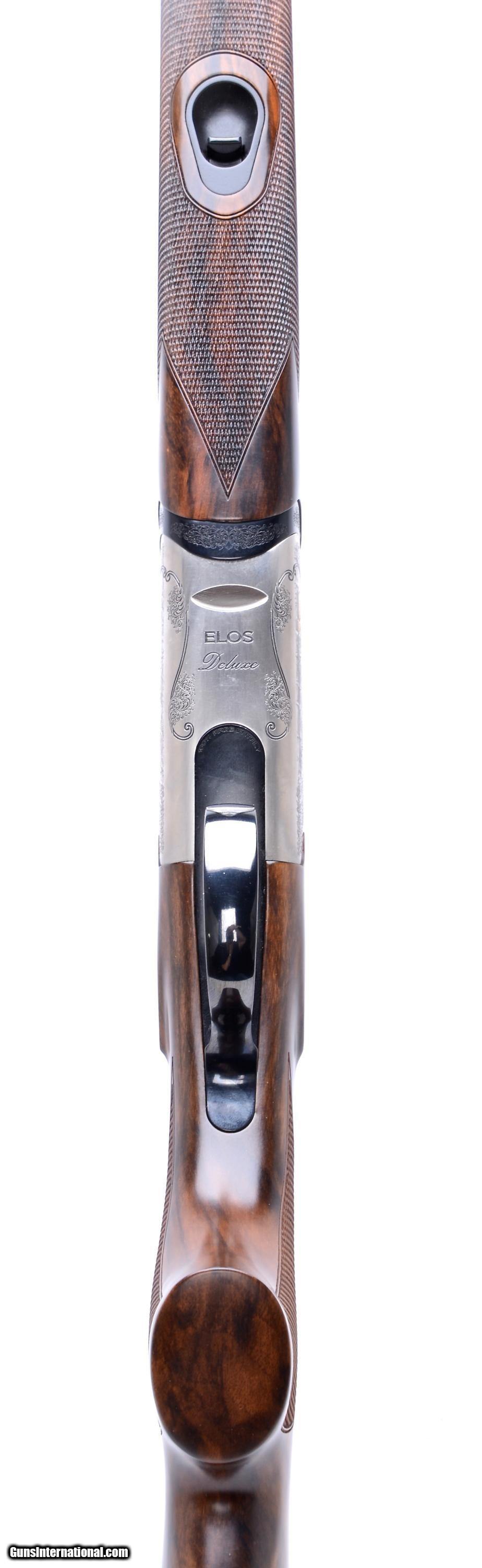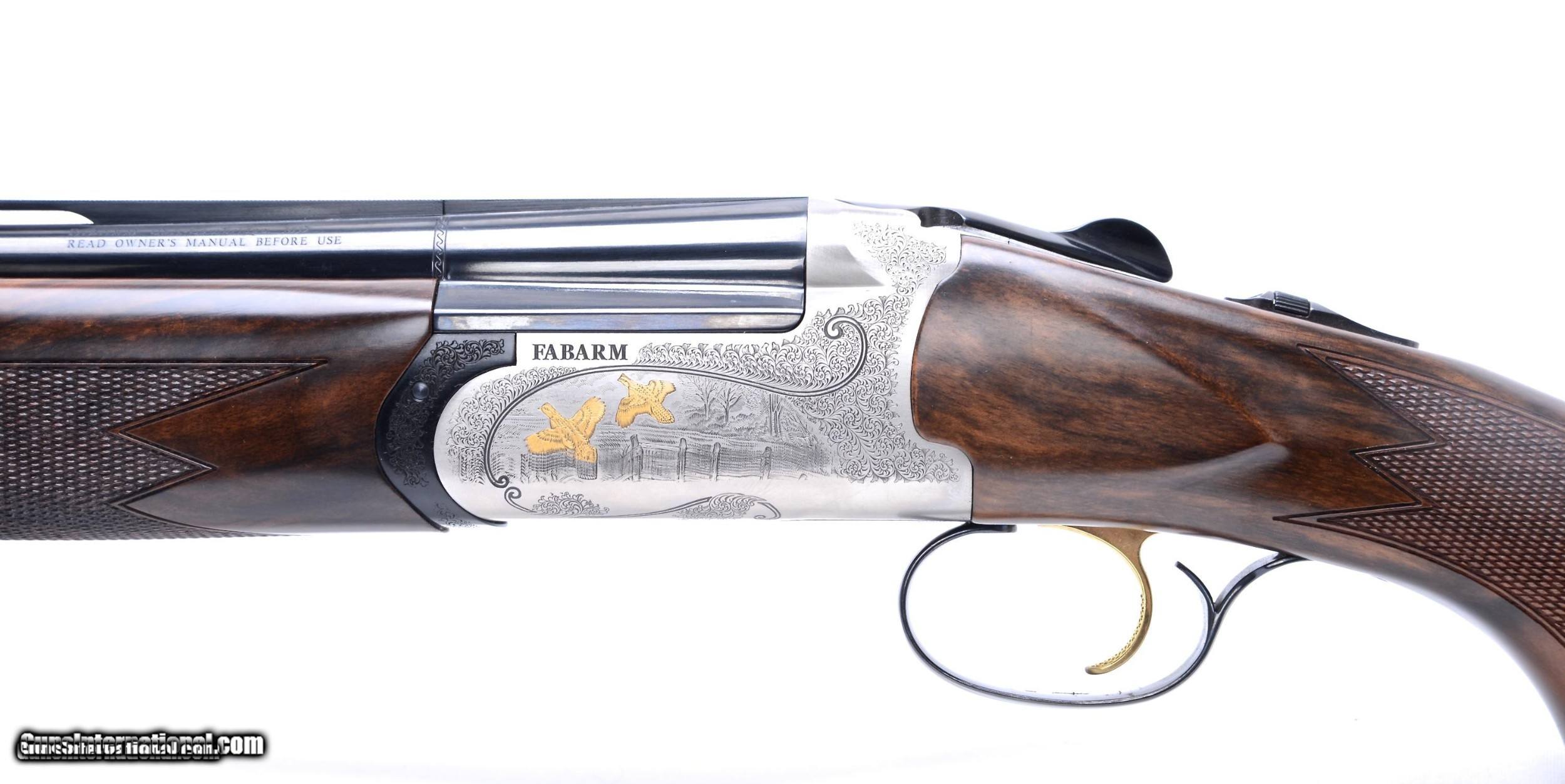 Description: Fabarms ELOS deluxe 20 gauge O/U shotgun. This beautiful game gun was made in Italy. 28" vent rib barrels with Fabarms Tri-Bore choke tube system and flawless dark blue finish. The round body action features game scene engraving on each side with gold birds. It has a single selective "checkered" trigger, automatic ejectors and tang safety. The elegantly grained buttstock has a slight right hand palm swell and a 14 1/2" LOP over the factory 1/2" recoil pad; 1 1/2" DAC and 2 1/4" DAH. To go along with the right hand palm swell the stock has a 5/16" cast at the heel and 3/8" cast at the toe for a right hand. Factory cased with paperwork and chokes. The shotgun is in excellent condition, see pictures for details. SOLD Shotgun Gauge: 20 Gauge |