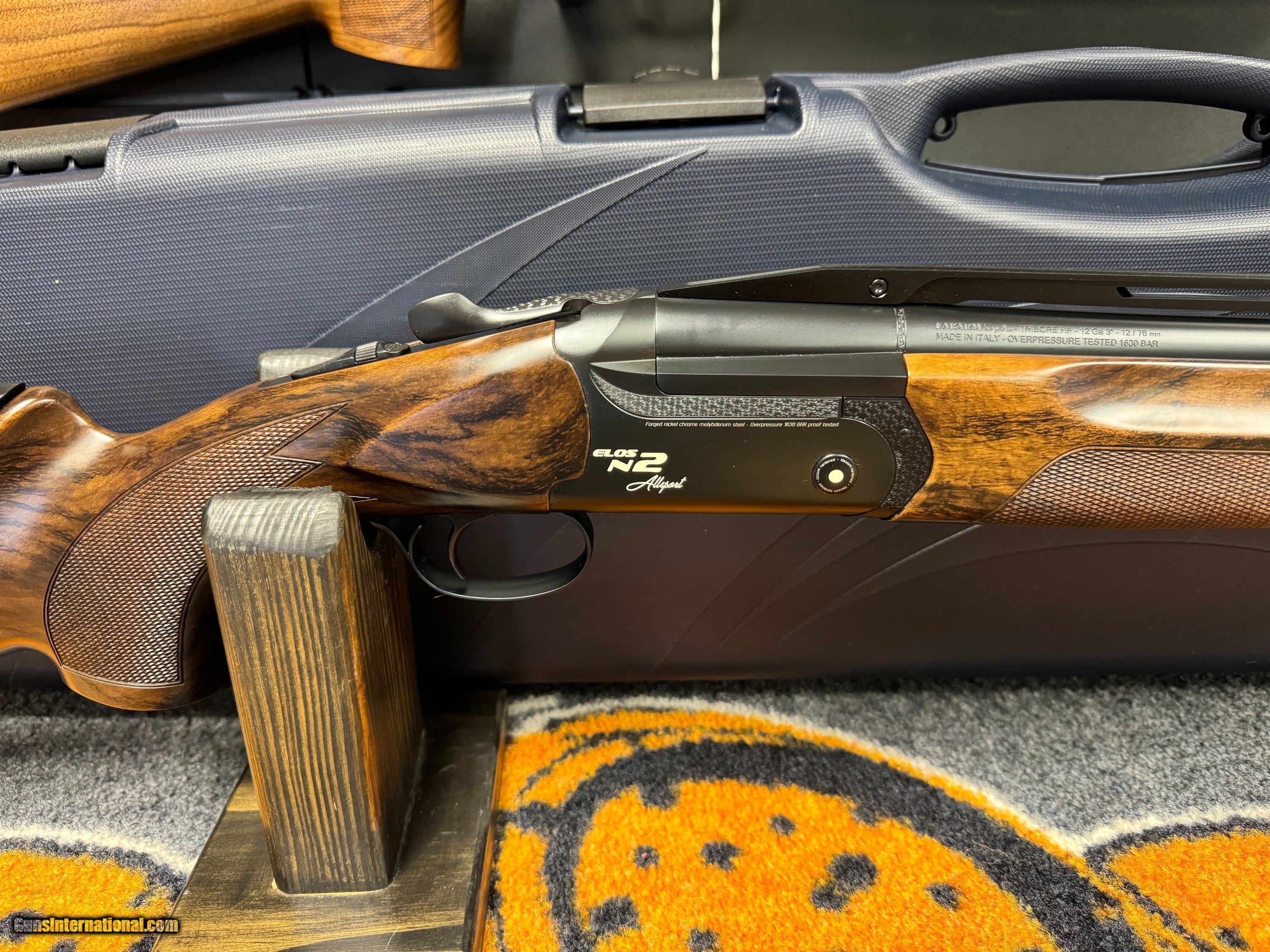 Description: New in box The new Fabarm Elos N2 Allsport is the most versatile target shotgun ever created. This impressive model is able to convert into a high rib trap gun, a low rib sporting clays gun and a skeet gun in a matter of minutes. The revolutionary interchangeable rib system, that includes two QRR (Quick Release Ribs) one 50/50 and one 65/35 and the Micro Metric adjustable stock allow you to fine tune the gun to your own measurements resulting in a better fit. The stock is designed to fit the high school and collegiate competitors and some adult shooters with the 14” LOP and slightly reduced pistol grip. You can be confident the Fabarm Elos N2 Allsport will provide you with continuous clay crushing performance through all disciplines and bring you to the next level of shooting in All sports. Any further information or questions please contact Bad Oscar Shooting Sports 715-388-8411 and ask for Don. SOLD Shotgun Gauge: 12 Gauge Manufacturer: Fabarm Model: Elos N2 Allsport Serial Number: E70548 Chambers: 3 Condition: New Metal Condition: New Wood Condition: New Bore Condition: New Barrels: O/U Barrel Type: Steel Stock: Turkish Walnut with Adjustable Comb Stock Comb: Adjustable Butt Pad: Microcell 22mm LOP: 14" (adjustable) Rib: Vented Weight: 7lbs 11oz.* Sights: White Bradley style with Silver mid bead Chokes: 5 EXIS HP™ Competition Chokes Engraving: Checkering on stock and fore end Case: Hard Case Item Location: Wisconsin |