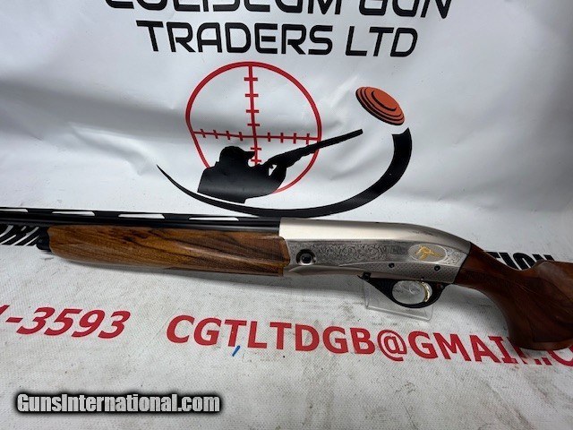 Description: This shotgun is a Fabarm L4S Deluxe Hunter that is in USED condition. This L4S is chambered in 12 Gauge, has a 28 inch barrel with a brass bead front sight, and features wonderful engravings on the receiver. This shotgun exhibits minor signs of wear such as light scratches on the receiver and wood furniture. This firearm includes its original three chokes, full, modified, and improved cylinder, in the original choke case. There are no spots of rust to be seen on this one. The original hard case will also be provided to the lucky winner of this fine Fabarm. The price of this firearm includes shipping (UPS Ground) and insurance. SOLD Shotgun Gauge: 12 Gauge Manufacturer: Fabarm Model: L4S Deluxe Hunter Serial Number: FA035499 Barrel Length: 28 Condition: Good Metal Condition: Good Wood Condition: Good Bore Condition: Good |