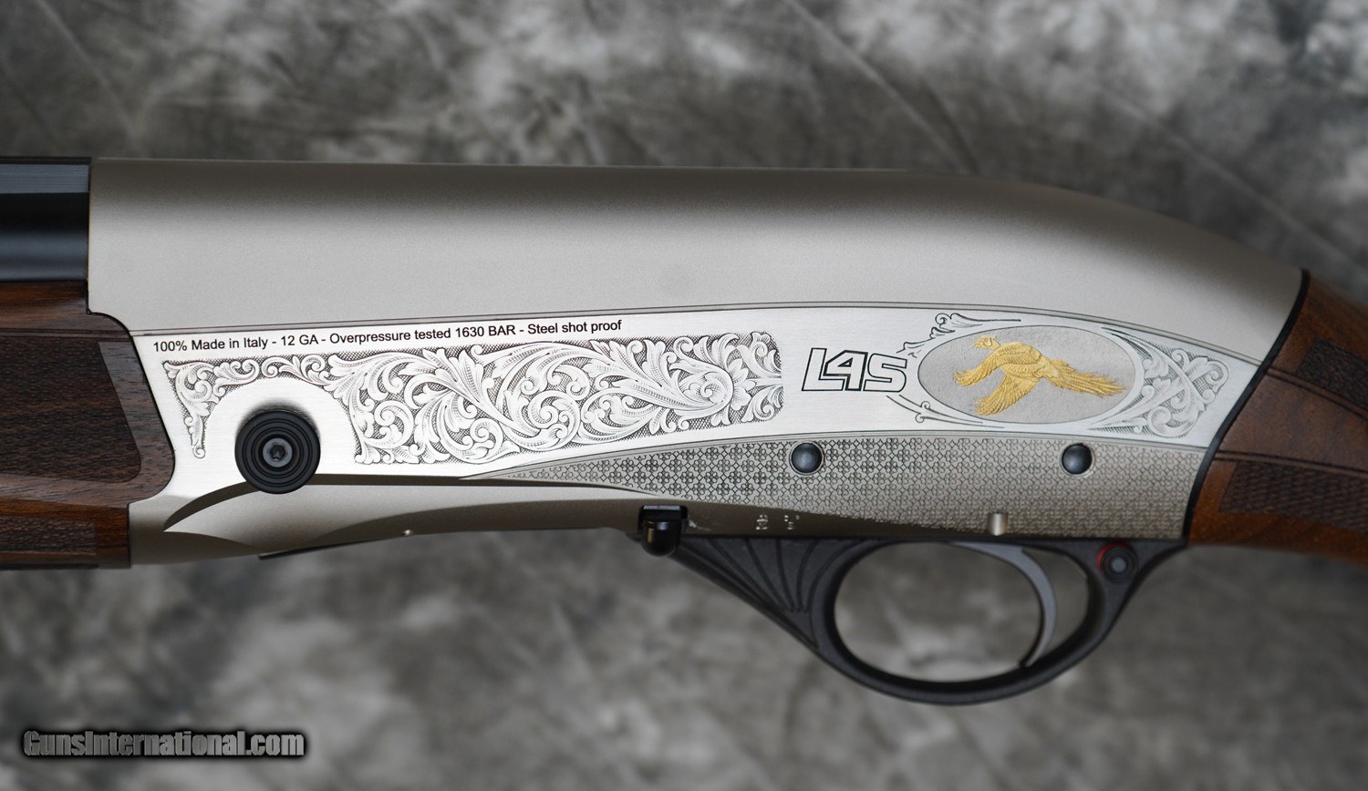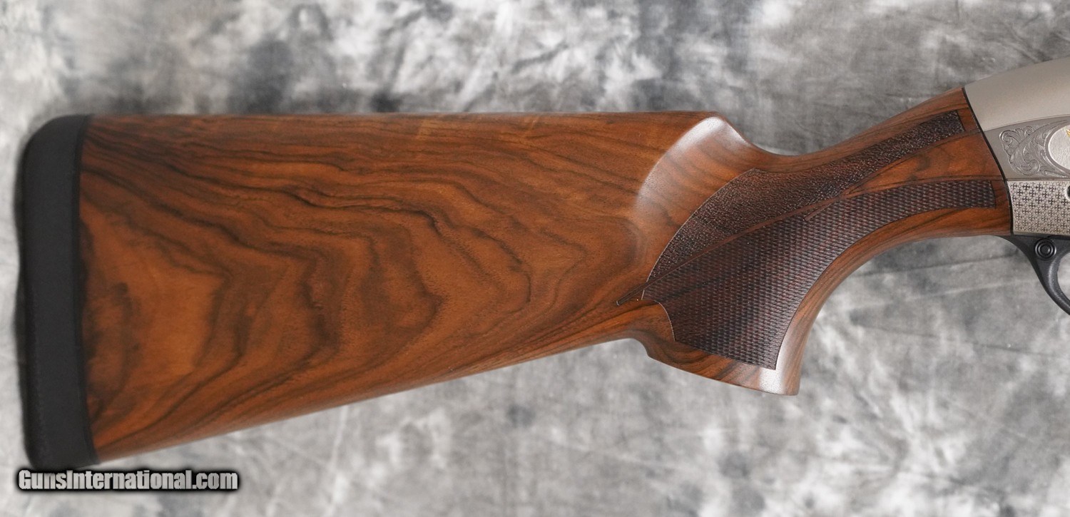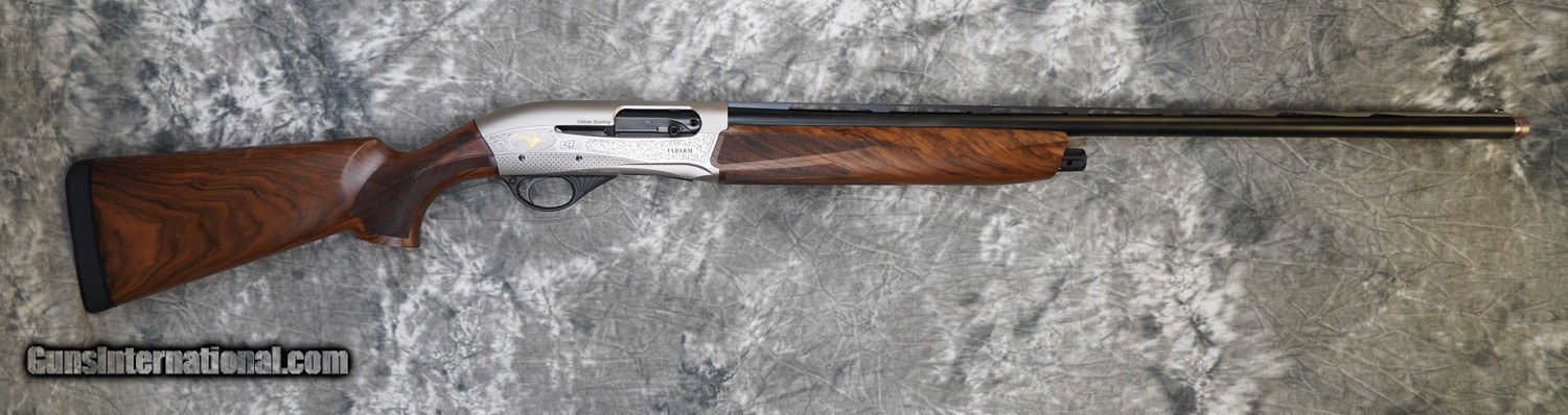 Description: New Fabarm L4S Deluxe Sporting 12GA with 30" factory extended choke tubed barrel, flat tapered sporting rib. Nickel finished action with scroll engraving and deeply engraved game scene inlaid in gold. Factory pistol grip sporting stock with sporting forearm. Includes factory case, chokes and tools. Call 626-633-1002 for pricing. SOLD Shotgun Gauge: 12 Gauge |