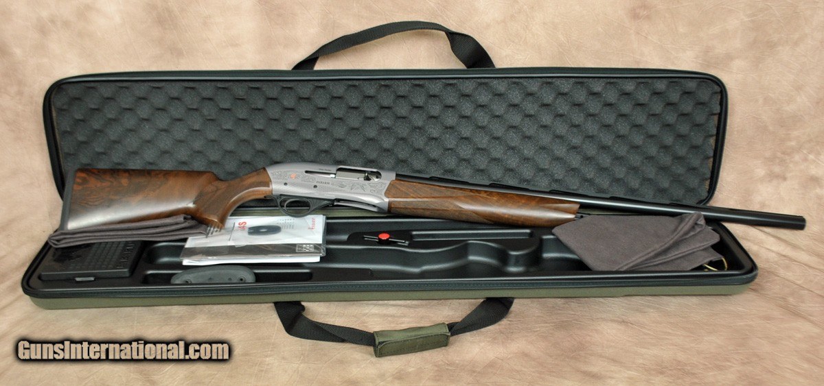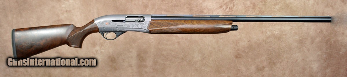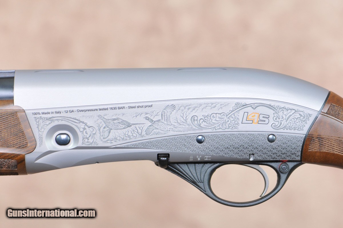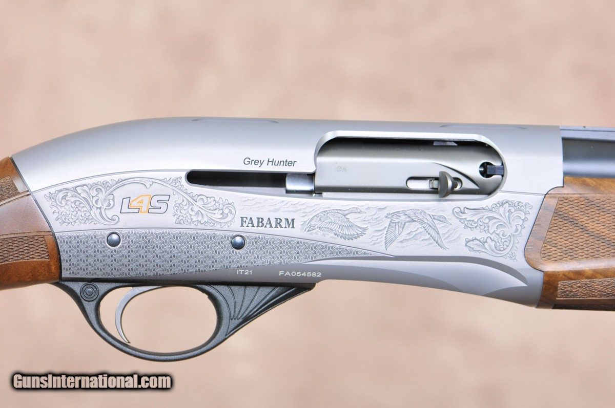 Description: Pre Owned “Like New” condition Fabarm L4S Grey Hunter 12GA with 28″ factory choke tubed barrel, parallel narrow game rib. Factory nickel finished receiver with game scenes, scrolls and enamel., factory pistol grip field stock and field forearm. Includes case, chokes. SOLD |