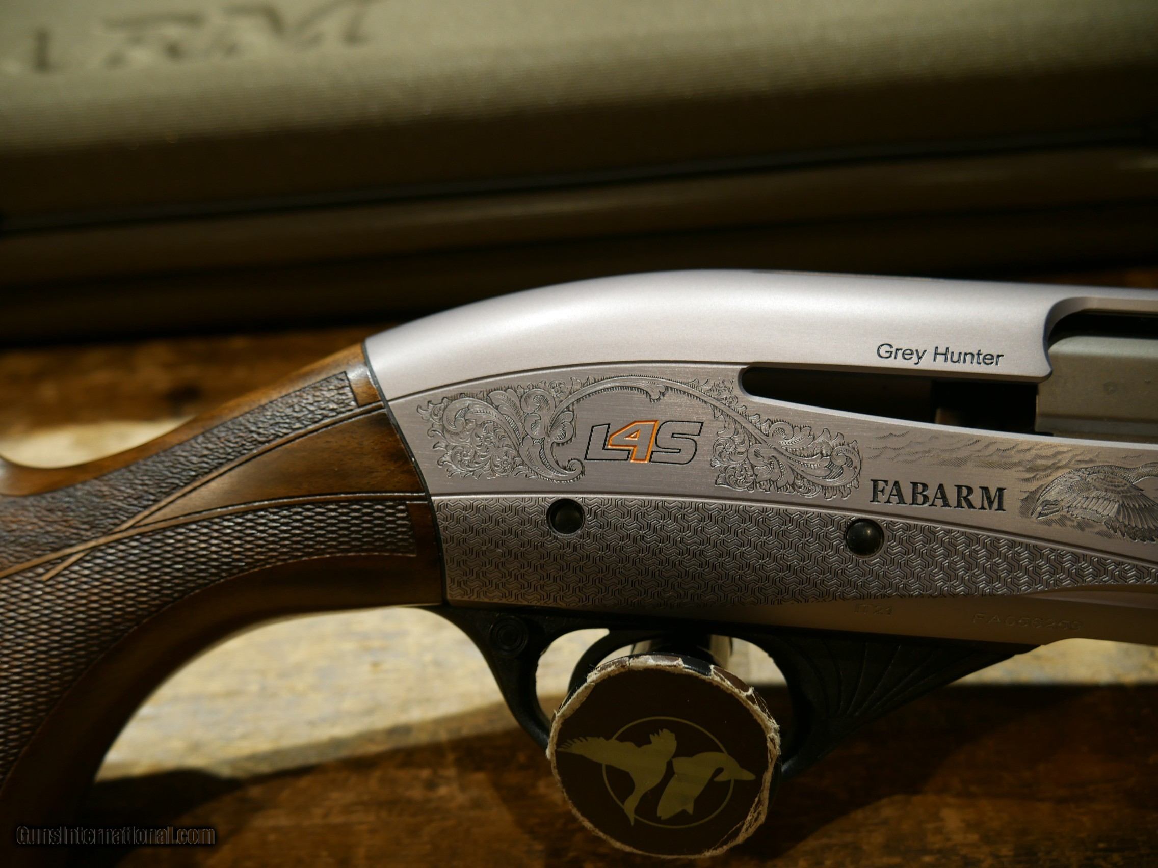Description: Call for best price! Fabarm L4S Grey Hunter semi-auto shotgun in 12 gauge. 28" barrel, 6mm rib height. 3" chamber. Aluminum alloy frame, titanium color finish. Pulse Piston gas operated. Hand oiled upgraded Turkish walnut, this one is pretty spectacular! 6lbs 13oz. From Fabarm: "The L4S incorporates an innovative new design that allows the fore-end to be removed without disassembling the shotgun. The design has two significant advantages. Removing the fore-end allows the action to be cleaned and lubricated without having to disassemble the whole gun. Additionally, it eliminates having the wood be part of the structural assembly of the gun, making the action and barrel relationship more accurate and stronger. By taking the stress off of the wood fore-end you also eliminate the forces that can damage and crack the wood. All grades will feature Turkish walnut with a satin oil finish. The L4S is lightweight making it a pleasure to carry in the field and has a gas operating system that significantly reduces recoil. It will handle every type of ammunition from light 2 ¾” target to heavy 3" magnum hunting loads. Other notable features include a stock shim system for adjusting fit and TRIBORE HP™ tapered barrels for the ultimate in ballistic performance." Comes new in box with: Zippered breakdown carry case, 3 chokes w/ case and wrench, stock and barrel sleeves, manuals Please call or email with any questions. Must ship to FFL. ***$35 SHIPPING AND INSURANCE*** ***NO CREDIT CARD FEES*** ***ALL WARRANTIES ARE HANDLED BY THE MANUFACTURER*** ***NO WARRANTIES THROUGH SILVER CREEK OUTFITTERS IMPLIED OR EXPRESSED*** ***MUST CALL TO COMPLETE TRANSACTION*** ***PLEASE BE IN CONTACT WITH A RECEIVING FFL AND BE PREPARED TO PROVIDE THEIR EMAIL ADDRESS OR AT LEAST THEIR PHONE WHEN MAKING PAYMENT*** SOLD Shotgun Gauge: 12 Gauge Manufacturer: FABARM Model: FA01105 Condition: NIB |
