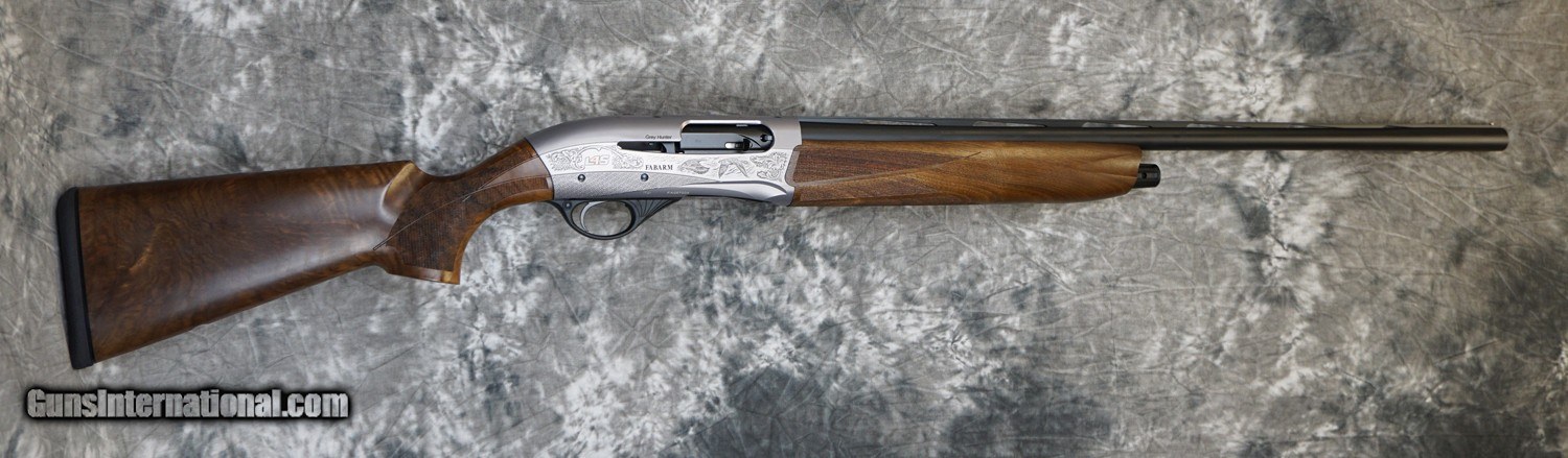 Description: New Fabarm L4S Grey Hunter 12GA with 28" factory choke tubed barrel, parallel narrow game rib. Factory nickel finished receiver with game scenes, scrolls and enamel., factory pistol grip field stock and field forearm. Includes case, chokes. Call 626-633-1002 for pricing. SOLD Shotgun Gauge: 12 Gauge |