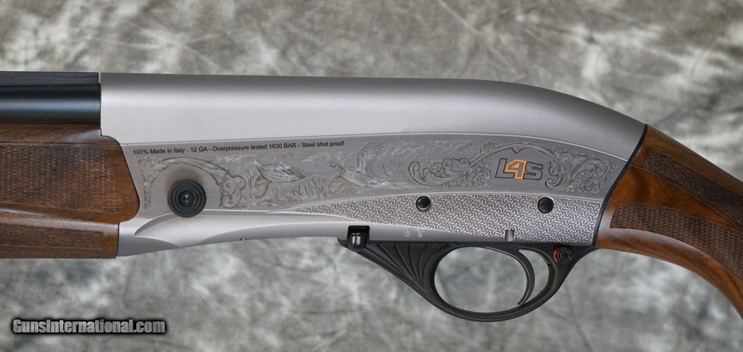 Description: New Fabarm L4S Sporting 12GA with 30" factory choke tubed barrel, flat tapered sporting rib. Nickel finished action with scrolls, game scenes and enamel. Factory pistol grip sporting stock and sporting forearm. Includes factory case, chokes and tools. Call 626-633-1002 for pricing. SOLD Shotgun Gauge: 12 Gauge |