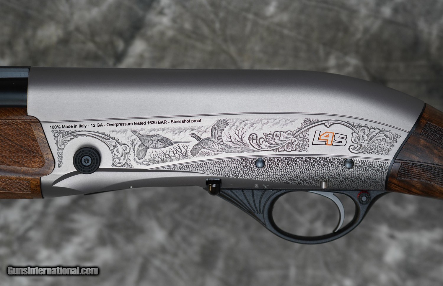 Description: New Fabarm L4S Sporting 12GA with 30" factory choke tubed barrel, flat tapered sporting rib. Nickel finished action with scrolls, game scenes and enamel. Factory pistol grip sporting stock and sporting forearm. Includes factory case, chokes and tools. Call 626-633-1002 for pricing. SOLD Shotgun Gauge: 12 Gauge |