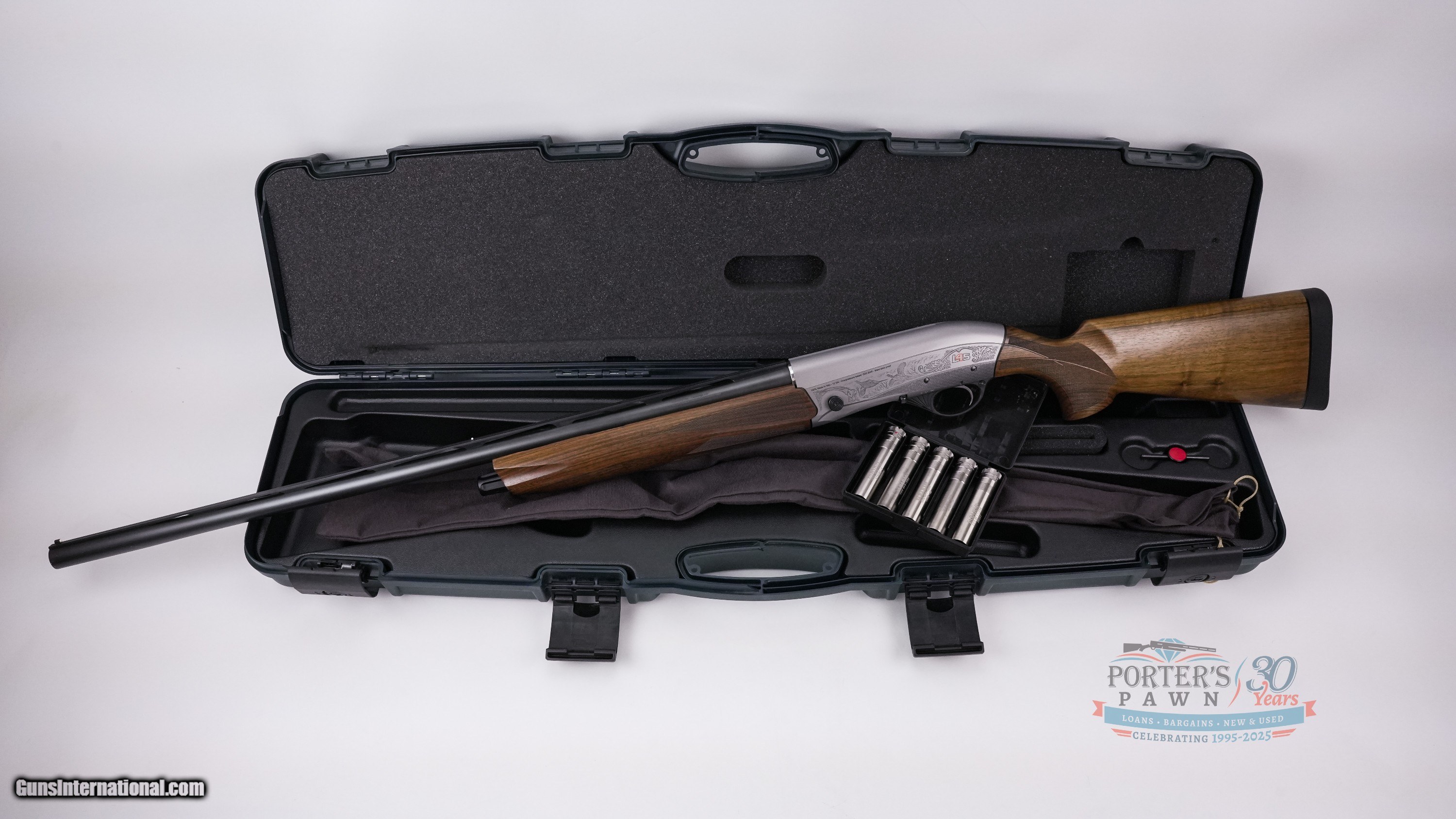 Description: Fabarm L4S Grey – Competition-Ready Target Shotgun This Fabarm L4S Grey Sporting shotgun redefines semi-automatic target shooting with its double-gun balance and competition-optimized design. The 12 gauge features a 30" TRIBORE HP™ barrel with 5 EXIS HP™ choke tubes, all housed in a hand-oiled Turkish walnut stock with titanium-finished receiver. Includes hard case. Engineered specifically for 2¾" target loads, the L4S delivers unparalleled handling through innovative design: