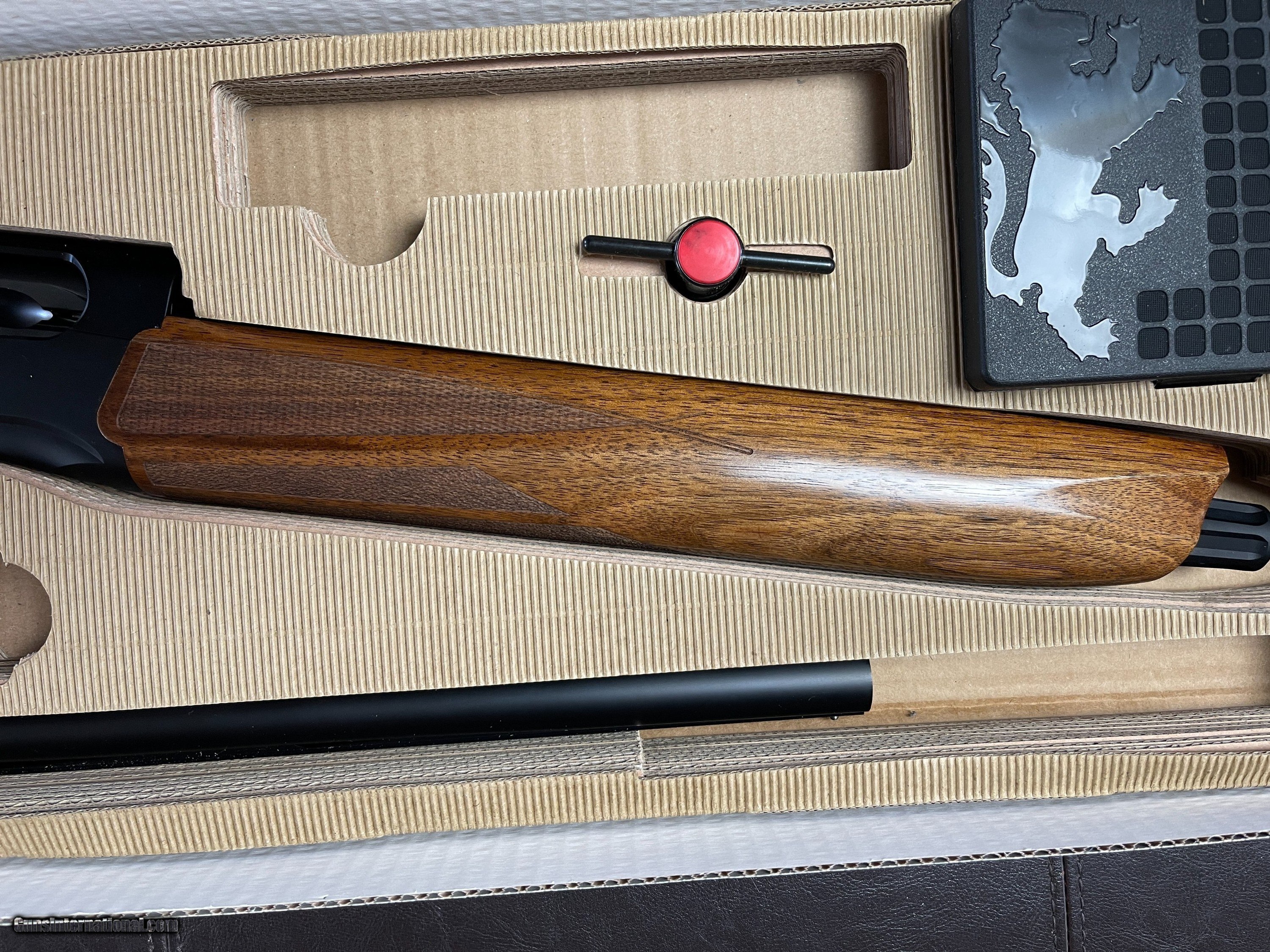 Description: For Sale is a NEW FABARM L4S Initial Hunter with a 28-inch TRIBORE HP barrel and 3-inch chamber, right-handed, in 12 gauge. New in the box with soft case, comes with choke tool, 3 INNER HP™ Choke Tubes, and manuals. Text for best price! Operation Pulse Piston™, gas operated Barrel TRIBORE HP™ Barrel Length 26" Barrel Rib Height 6mm Chamber 3" Chokes 3 INNER HP™ Choke Tubes Frame Aluminum Alloy Frame Finish Black Anodized Stock Turkish Walnut Wood Finish Matte, Hand Oiled Length of pull 14.375" Drop at comb 1.5" Drop at heel 2.25" Cast at toe .125" Pitch 5° Cast to heel .125" Weight 6lb.s 13oz. Proof test 1630 BAR Warranty 5 year SOLD Shotgun Gauge: 12 Gauge Manufacturer: Fabarm Model: L4S Initial Hunter Serial Number: 845 Bore: 12 Condition: NEW Metal Condition: NEW Wood Condition: NEW Bore Condition: NEW Barrels: 26 LOP: 14.375 Weight: 6.13 Manufacture Date: 2022 Case: NONE Item Location: Florida |