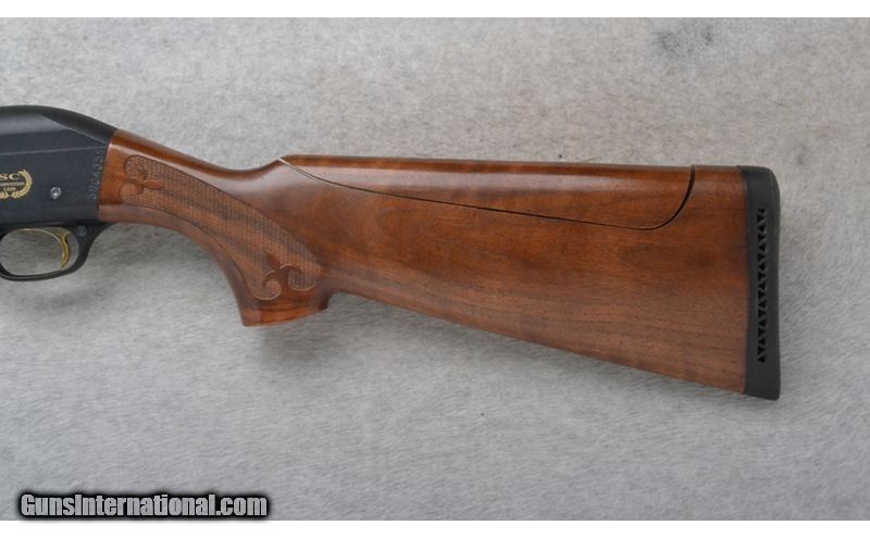 Description: This Fabarm Model SC Competition Lion is a right hand semi-auto shotgun in 12 Ga. It has a 30 inch carbon fiber wrapped barrel and ventilated rib. A red high visibility front sight and a metal middle bead sight. With a 2.5 inch chamber it comes with a Modified choke tube. The butt stock is a checkered grip walnut pistol grip with an adjustable comb. The forearm is a checkered grip walnut. The right side of the receiver has a golden lion medallion. 12 Gauge SOLD Chambers: 2 3/4 inch. Metal Condition: Excellent. A few very minor handling marks. Wood Condition: Very Good. Some light handling marks. Bore Condition: bright and shiny. Barrels: 30 inch carbon fiber wrapped barrel and ventilated rib. Tribore. Stock Dimensions: LOP 15 1/4 inches. Fore End: Checkered grip walnut. Butt Pad: Black rubber recoil pad. Weight: 7 LB. 15 OZ. Sights: Red high visibility front. Metal middle bead. Chokes: Modified choke tube. Item Location: Richfield, WI |