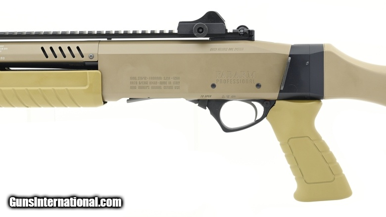 Description: FABARM STF 12 12 Gauge shotgun. FABARM 12 Gauge tactical shotgun with 4+1 capacity. Has a 15” top Picatinny rail with fiber optic sights over a 18” barrel with compensated door breacher muzzle device. The fore grip has a Picatinny rail ready for tactical light. Pistol grip and skeletonized stock and integrated sling mounts. New.