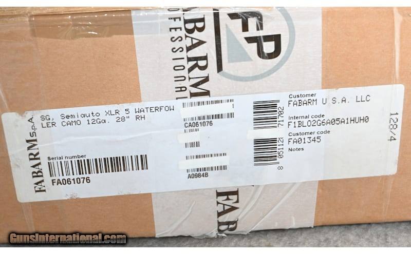 Description: A FAbarm XLR 5 Waterfowler in 12 gauge with a 28 inch barrel. 12 Gauge SOLD Chambers: 3 inches Metal Condition: Excellent Wood Condition: Excellent Bore Condition: Bright and Shiny Barrels: 28 inches Triggers: Single action auto Stock Dimensions: 14 3/4 inches LOP Fore End: Synthetic Butt Pad: Rubber Weight: 7 Lbs 8 OZ Sights: Front fibre optic Chokes: Fabarm Inner HP Item Location: Gonzales, LA |