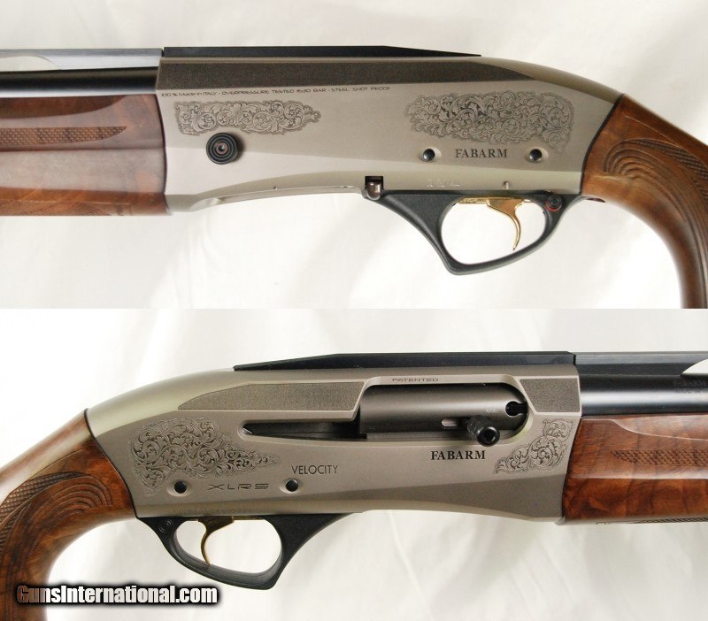 Description: FABARM XLR5 Velocity LR 12 gauge Semi-auto, Titanium silver finished receiver, Gas-operated action w/ Stainless piston, 30" bbl. w/ 2 3/4" chamber, Ventilated rib, 5 EXIS HP extended choke tubes: C,SK,IC,M,F, Oil finished walnut pistol grip stock w/ adjustable comb and original recoil pad, Checkered forearm, Stock Dimensions: DC: 1 1/2" x DMC: 1 11/16" x DH: 2" x Cast: 3/16" OFF at Heel x LOP: 14 3/4", Weight: 8 lb. 13 oz., Condition: New in maker's case, Made in Italy, Serial #FA028833 (N7164) Current MSRP: $2845, FIELDSPORT: $1995. To see and enjoy the entire inventory of fine shotguns, rifles and handguns on display in the Fieldsport Gun Room, please visit us at: FieldsportLTD SOLD |