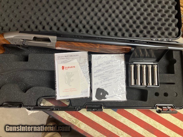Excellent condition Fabarms !2 Ga., XLR5 AR with silver receiver ,30 inch barrel with an adjustable rib. Gun has been fitted with a Adjustable Recoil Pad Comes with factory case ,Manual and chokes . I have shot several rounds of trap and one round of skeet with this gun and everything functions as it should. stock has one minor ding as seen in pictures . Price includes shipping to lower 47 states only .No sales to California,Hawaii,Alaska