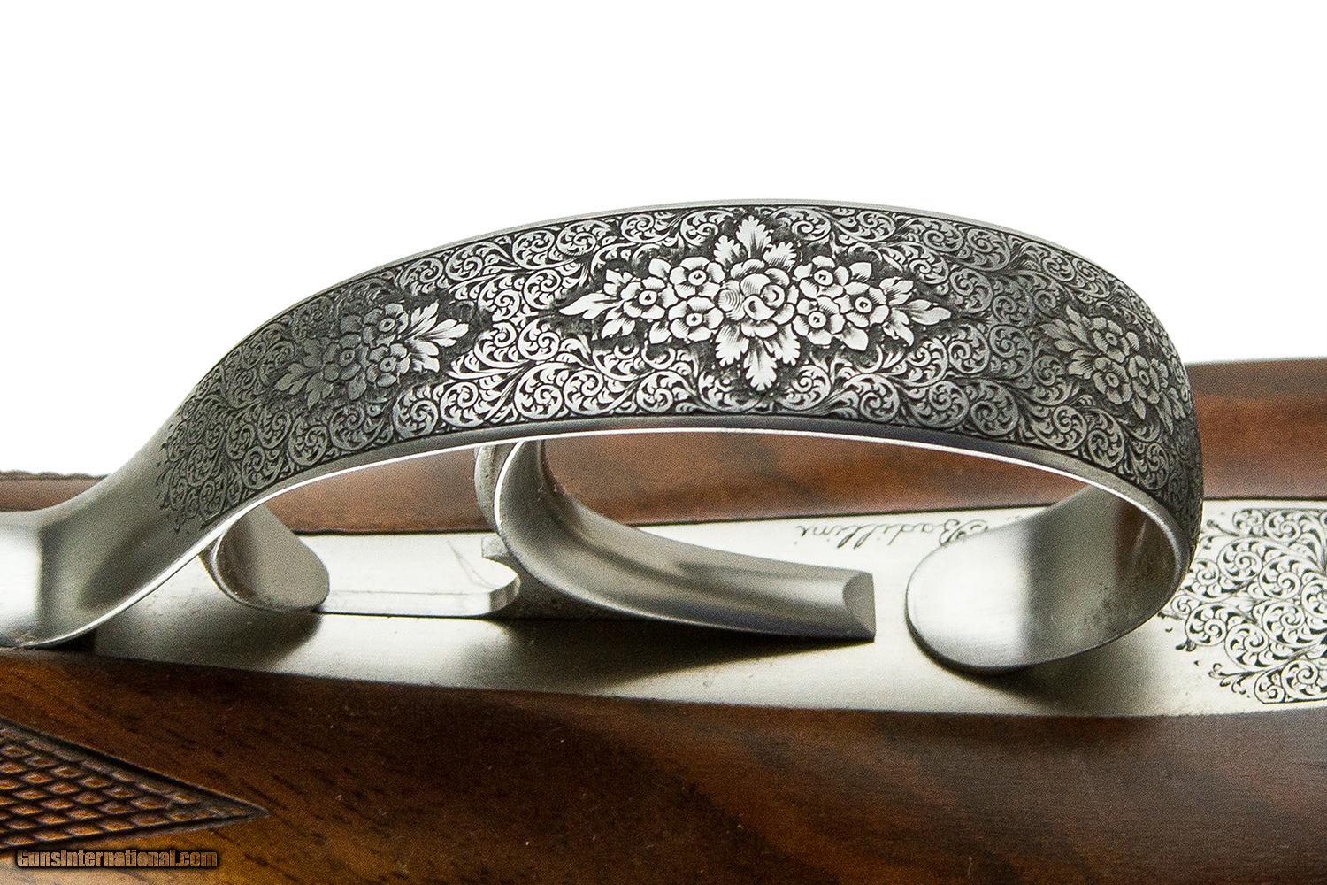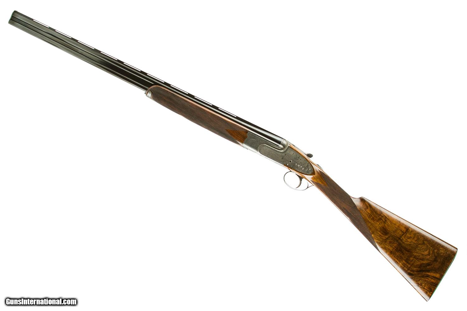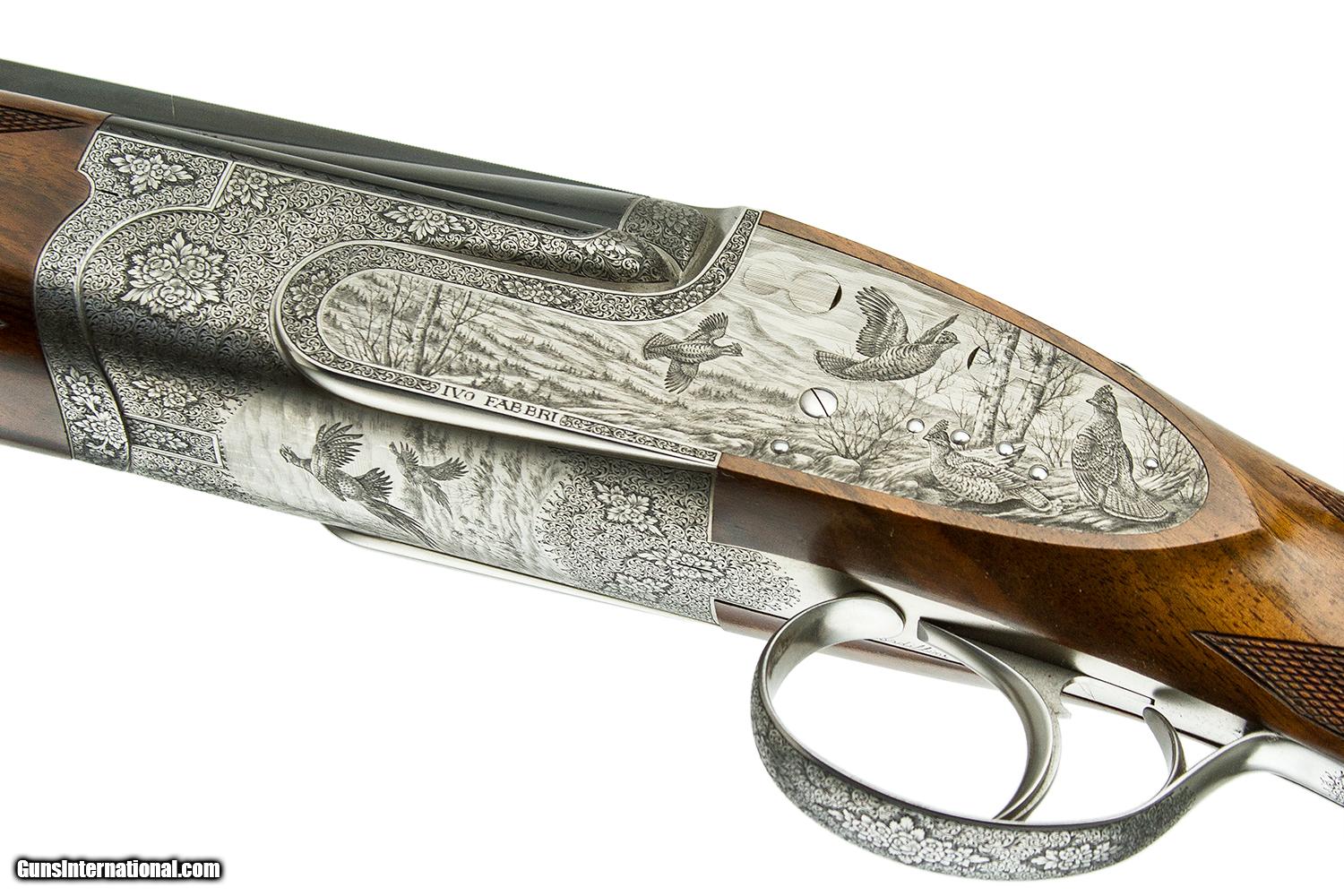 Description: 26" F/F - SINGLE TRIGGER - AUTOMATIC EJECTORS - TURKISH WALNUT ENGLISH GRIP STOCK - CHECKERED BUTT - VENTILATED RIB - VACUUM ARC REMELTING STEEL BARRELS - FULL SIDELOCK GUN WITH HIDDEN FASTENER HAND DETACHABLE LOCKS - ENGRAVED BY BADILLLINI 6 LBS. 4 OZ. 14 3/8" X 1 1/2" X 1 7/8 SOLD |
