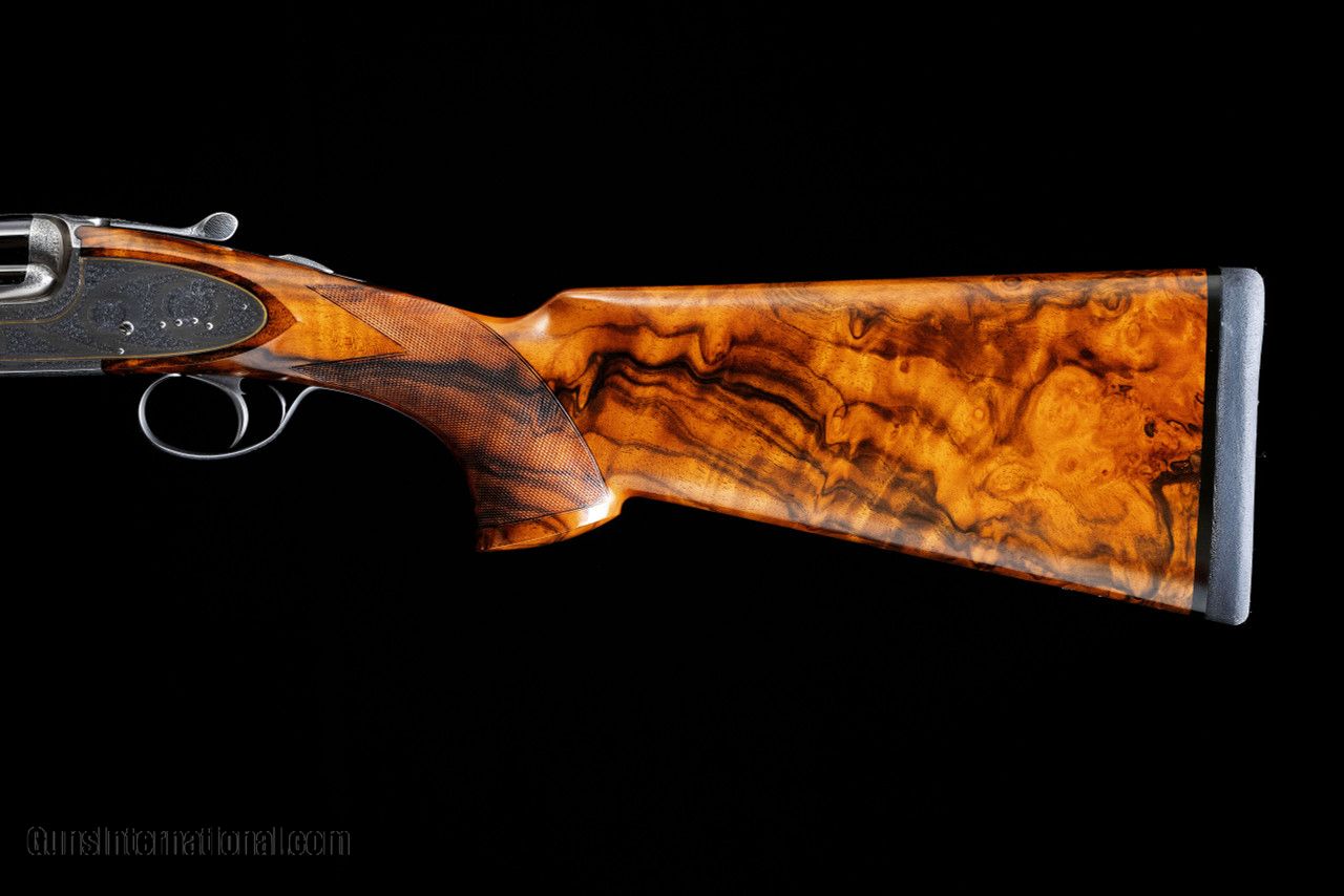 Description: Fabbri Matched Pair of 12ga 28" barrel shotguns just stunning guns in as new conditon they were sent back to Tullio Fabbri and redone to put them in as new consiotn and they have been unfired since. SOLD Manufacturer: Fabbri Caliber Info: 12 Gauge Barrels: 28 Action: Over / Under Triggers: Single Gauge Info: 12 Gauge Stock Comb: 1 1/4 Stock Heel: 2 1/2 Stock Cast: 1/8" Off LOP: 14 3/4 Rib: Vented Weight: 8.0 Chokes: Full/MOD |