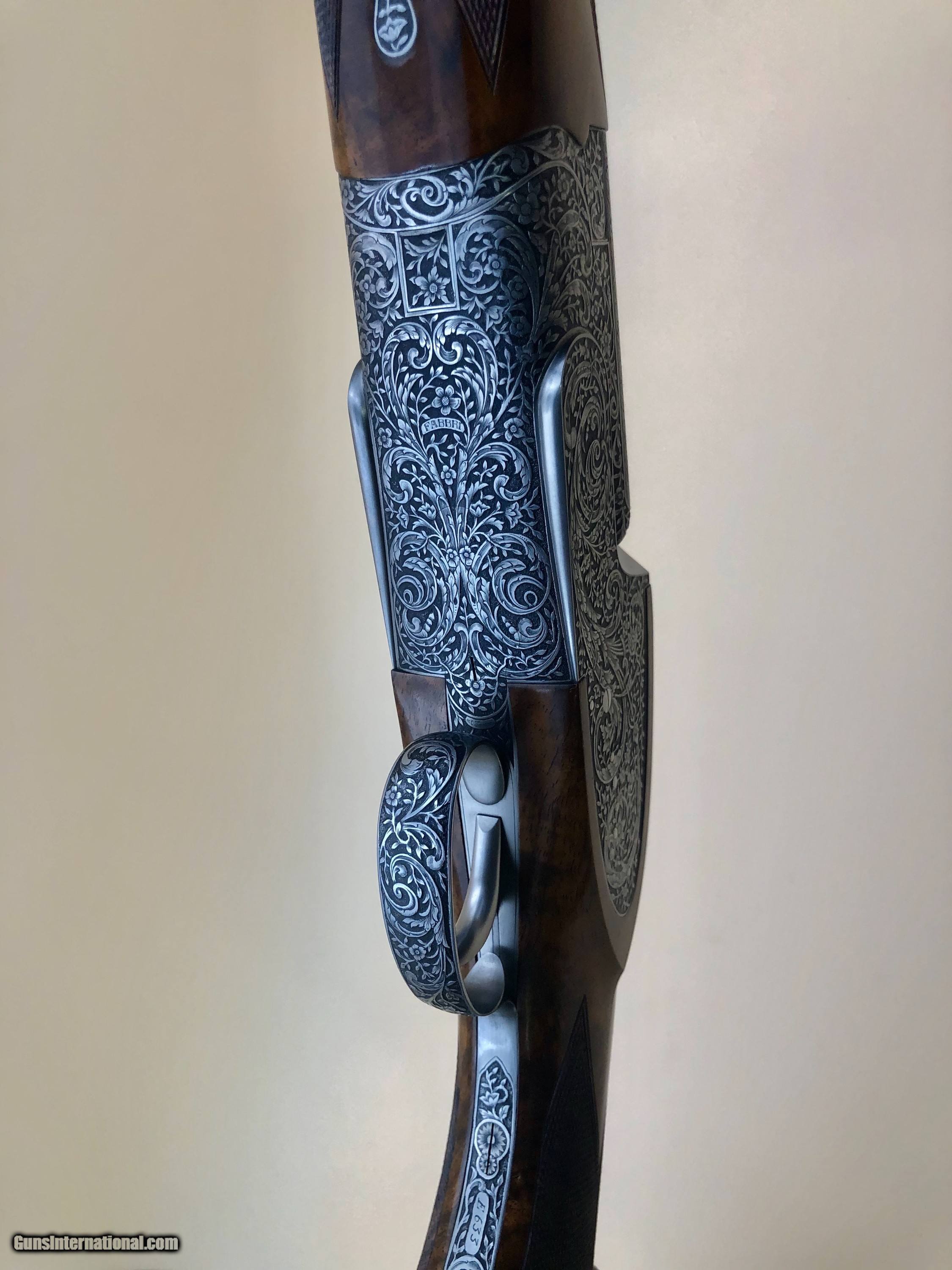 Description: Beautiful Fabbri in fabulous condition. Serial #E63X. Proof mark AN which is 1985. Spectacular deep relief engraving. These guns are getting harder and harder to find especially with 30 inch barrels and with original HIGH useable stock dimensions. These guns are very expensive to re-stock so when you find them with a high useable stock, that is a tremendous value added. You will find most Fabbri’s were stocked with very plain wood but this original stock is a gorgeous piece of walnut with perfect straight grain through the wrist Barrel Specs: 30 inch 1.550KG 18.4 Comes with full set of Briley thin walls from Skeet to Full Stock Dimensions: 1.22 x 1.417 x 2.00 Cast off at the toe of 1/2 Length of pull 14.75 SOLD |