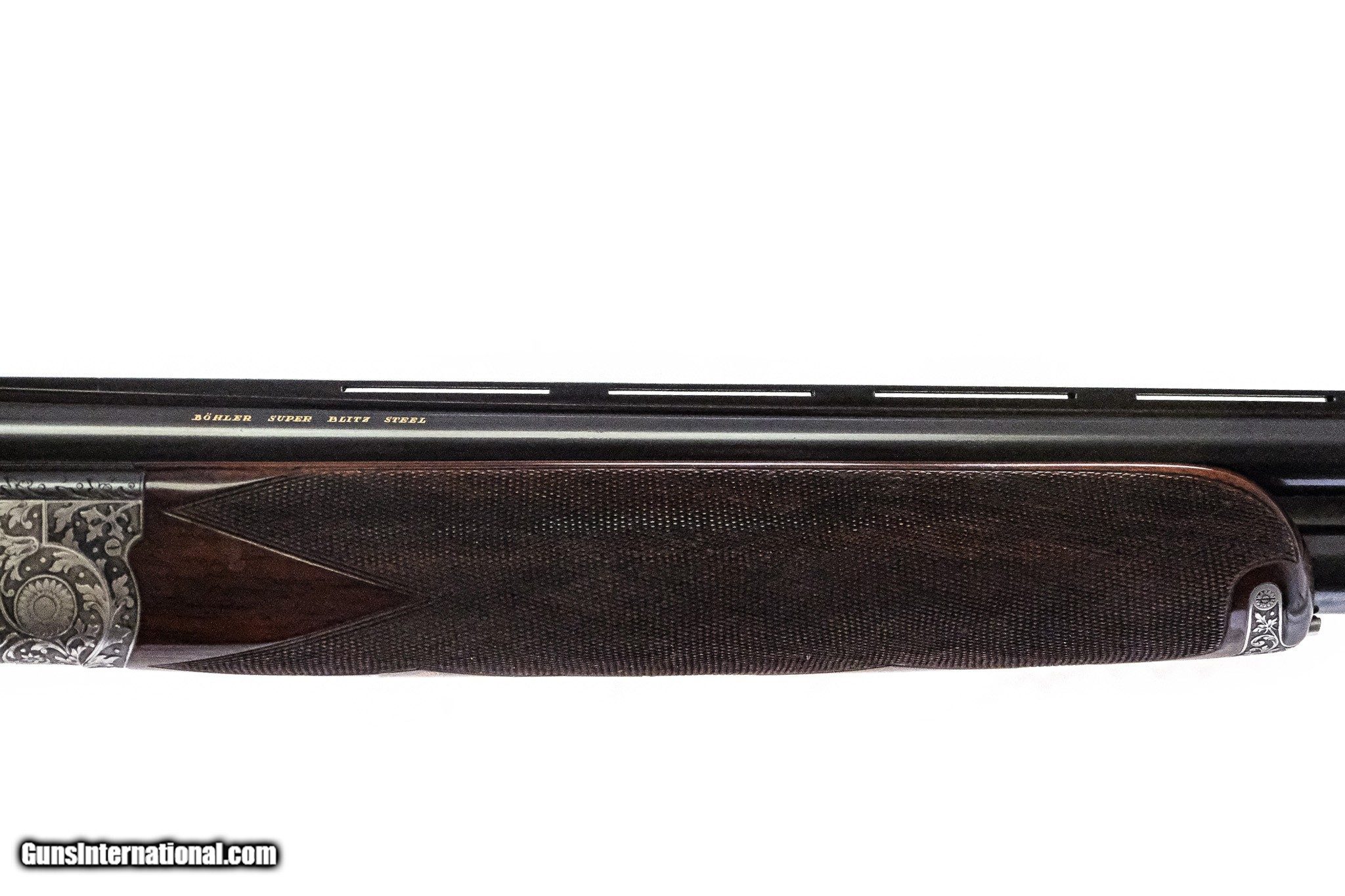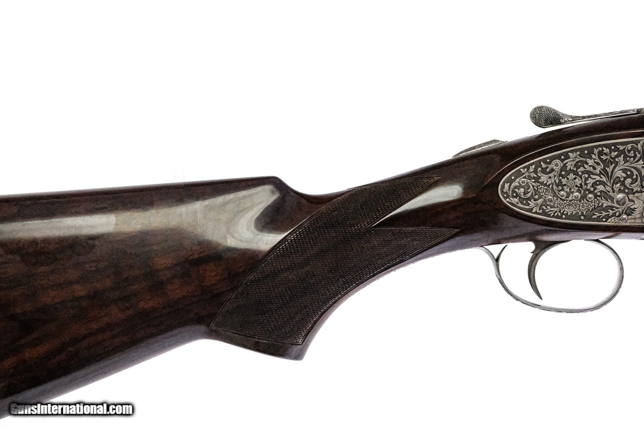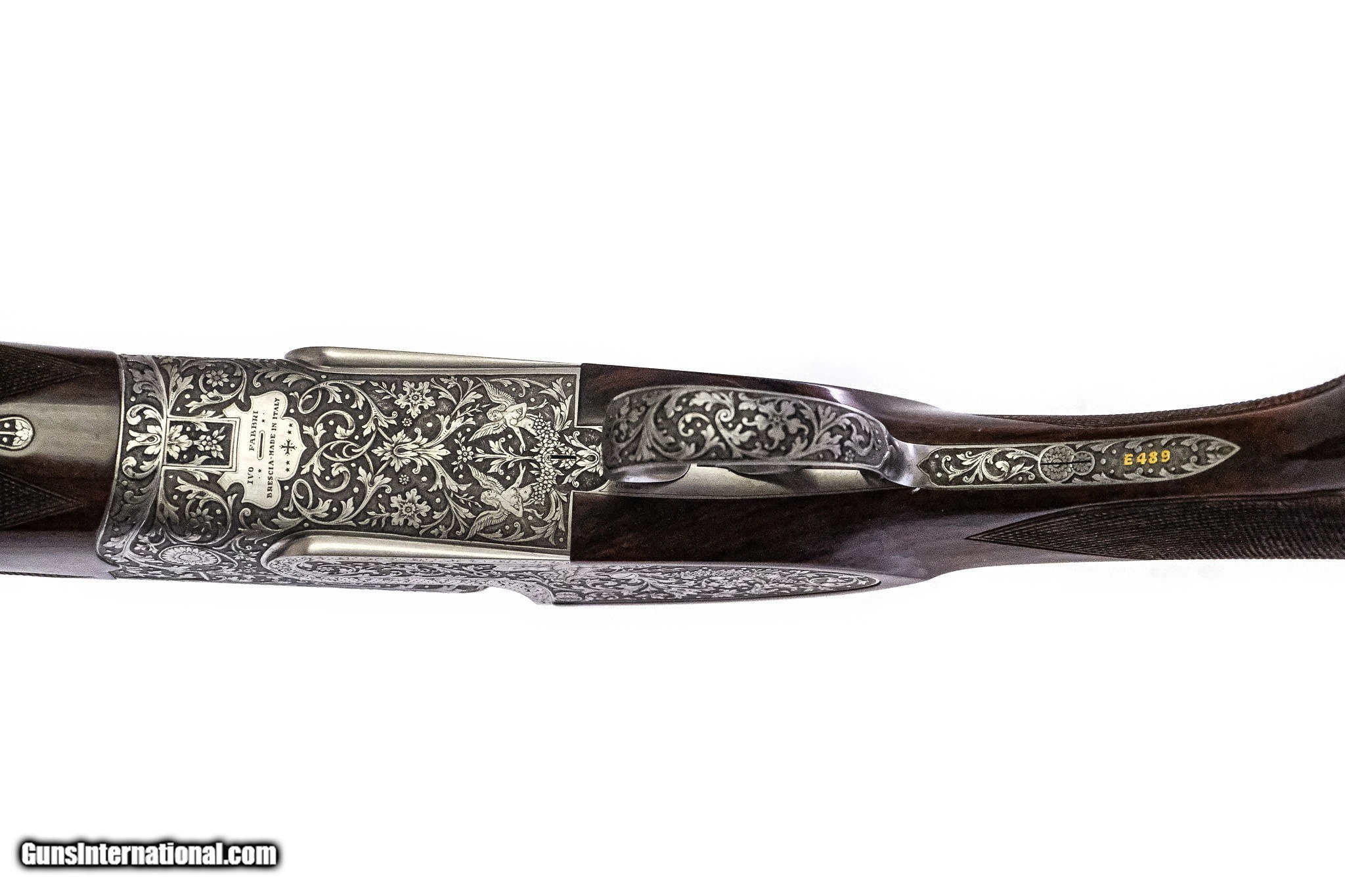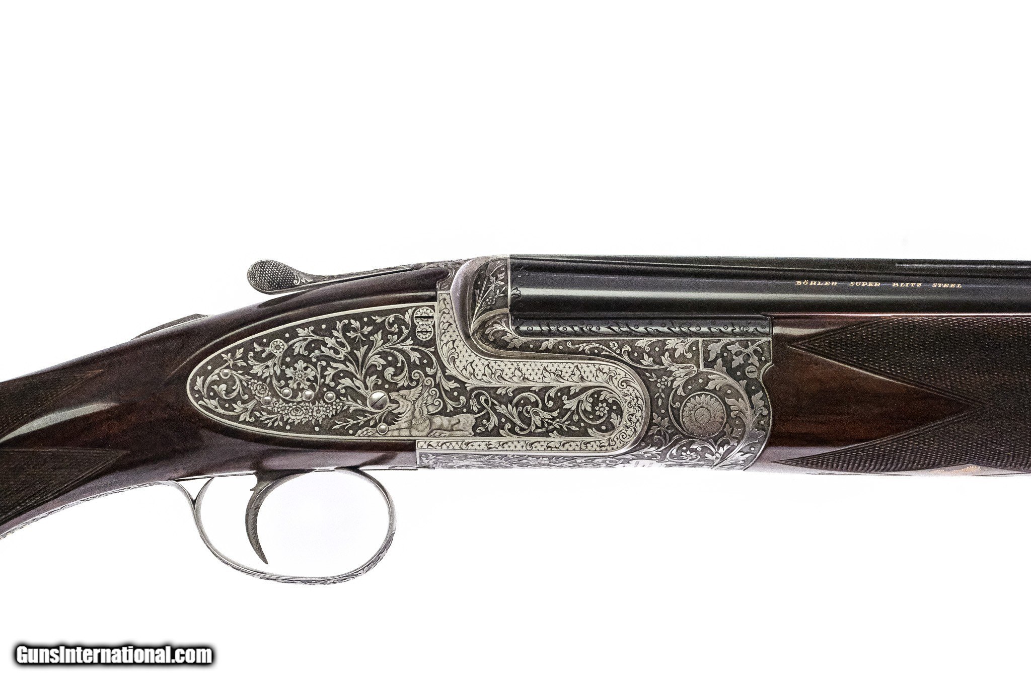 Description: Fabbri - O/U, 12ga. 27" Bohler Barrels. Deep chisel engraved, 27” Bohler barrels, 2 ¾” chambers, straight grip, leather cover pad, extremely rare, only a few guns ever made this way with a single trigger, very unusual swept prince of whales pistol grip, gold medallions inlaid in wood by factory of quail. Highly figured Turkish walnut, minor handling marks but virtually unused, originally #2 of pair, vent rib. Just a superb find of an extra special gun, that was special ordered with one of a kind features, and priced at a fraction of the cost new. Inv: 69433 7 lbs. 3 oz. 14 ¾" x 1 3/8" x 2 1/8" $59,500.00 SOLD |