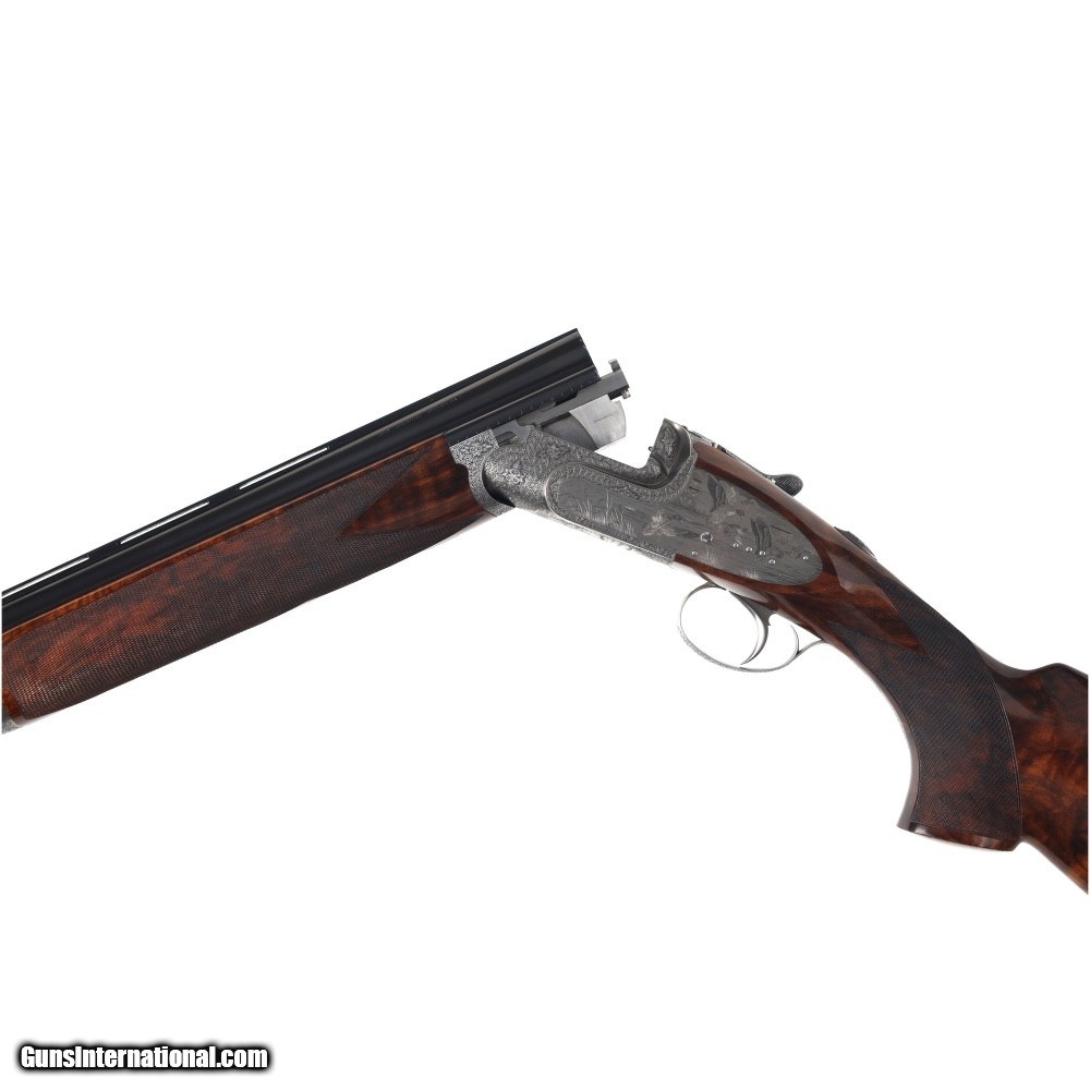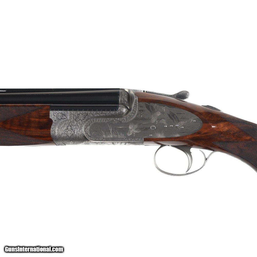 Description: Beautiful Tomasoni engraved gun. SOLD Shotgun Gauge: 12 Gauge Manufacturer: Fabbri Model: SLE Barrel Length: 29.5 Chambers: 3 Ejectors: Yes Condition: VG Metal Condition: VG Wood Condition: VG Bore Condition: VG Action: Sidelock Triggers: Single Stock Comb: 1 1/2 Stock Heel: 2 3/8 Stock Cast: OFF 3/16 LOP: 14 1/4 Rib: Vent Weight: 7.75 Chokes: 5 Briley Case: Leather |
