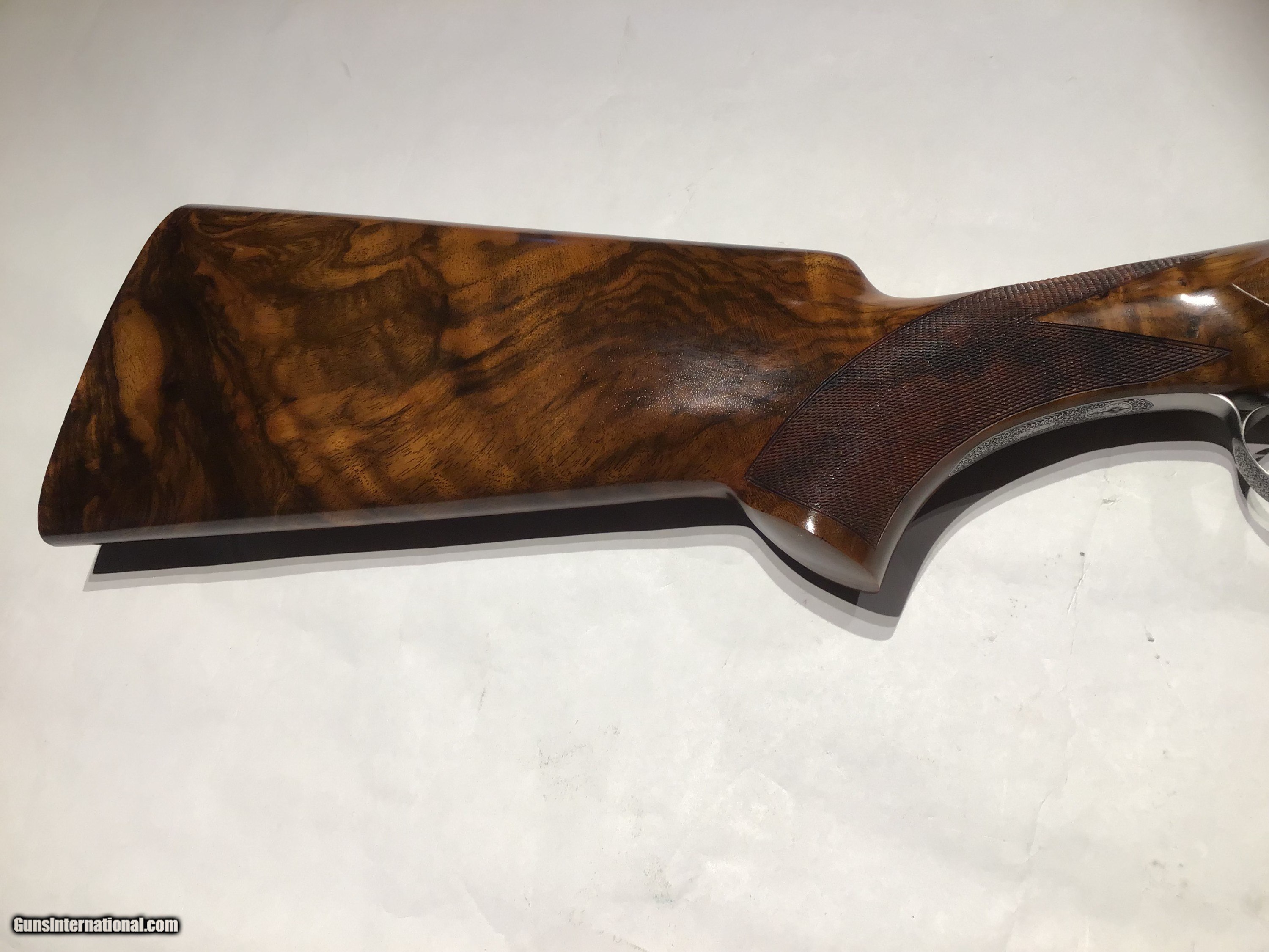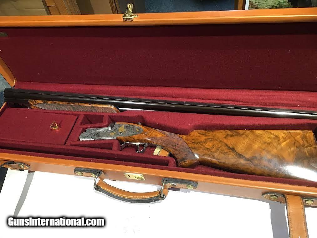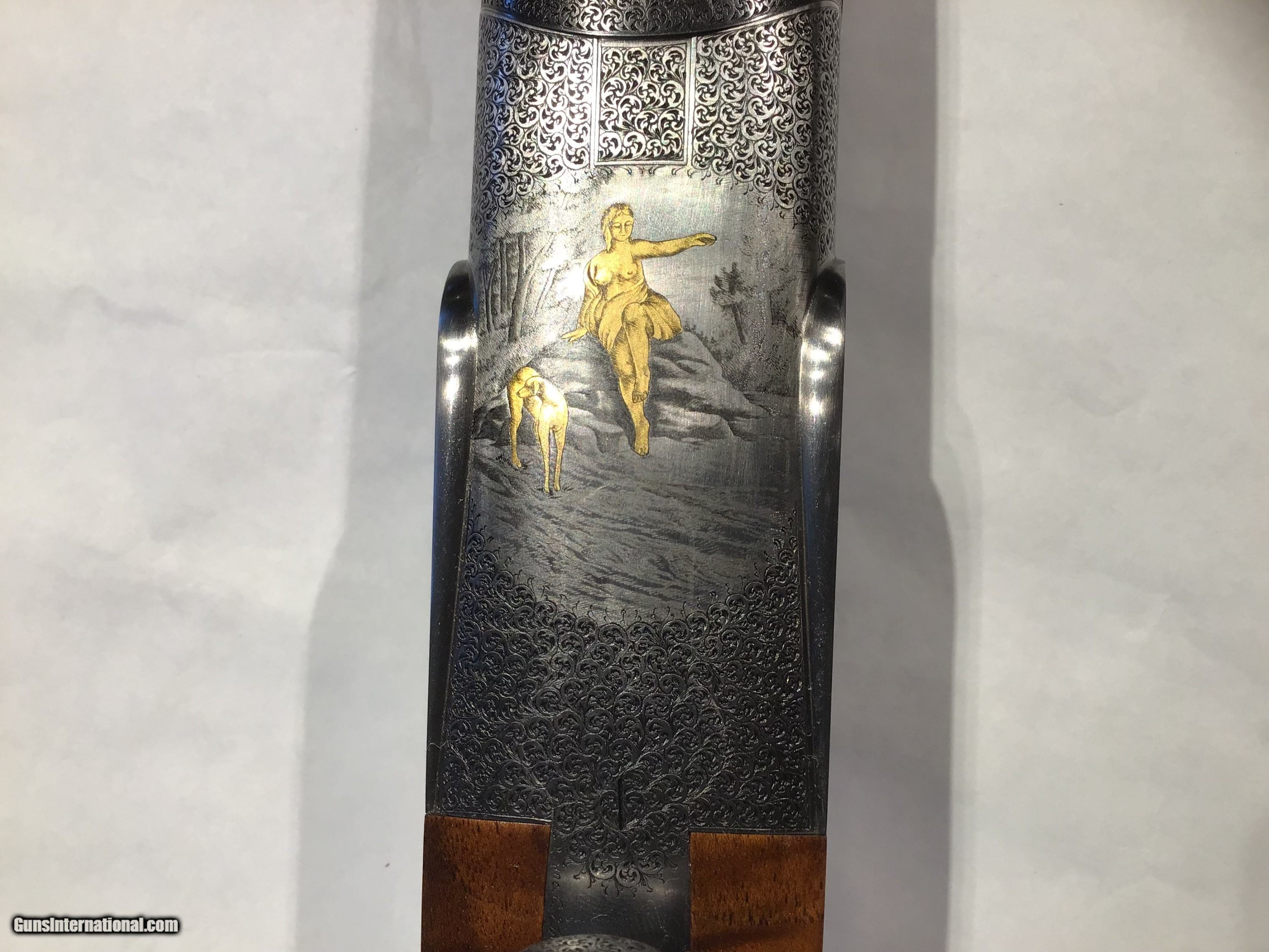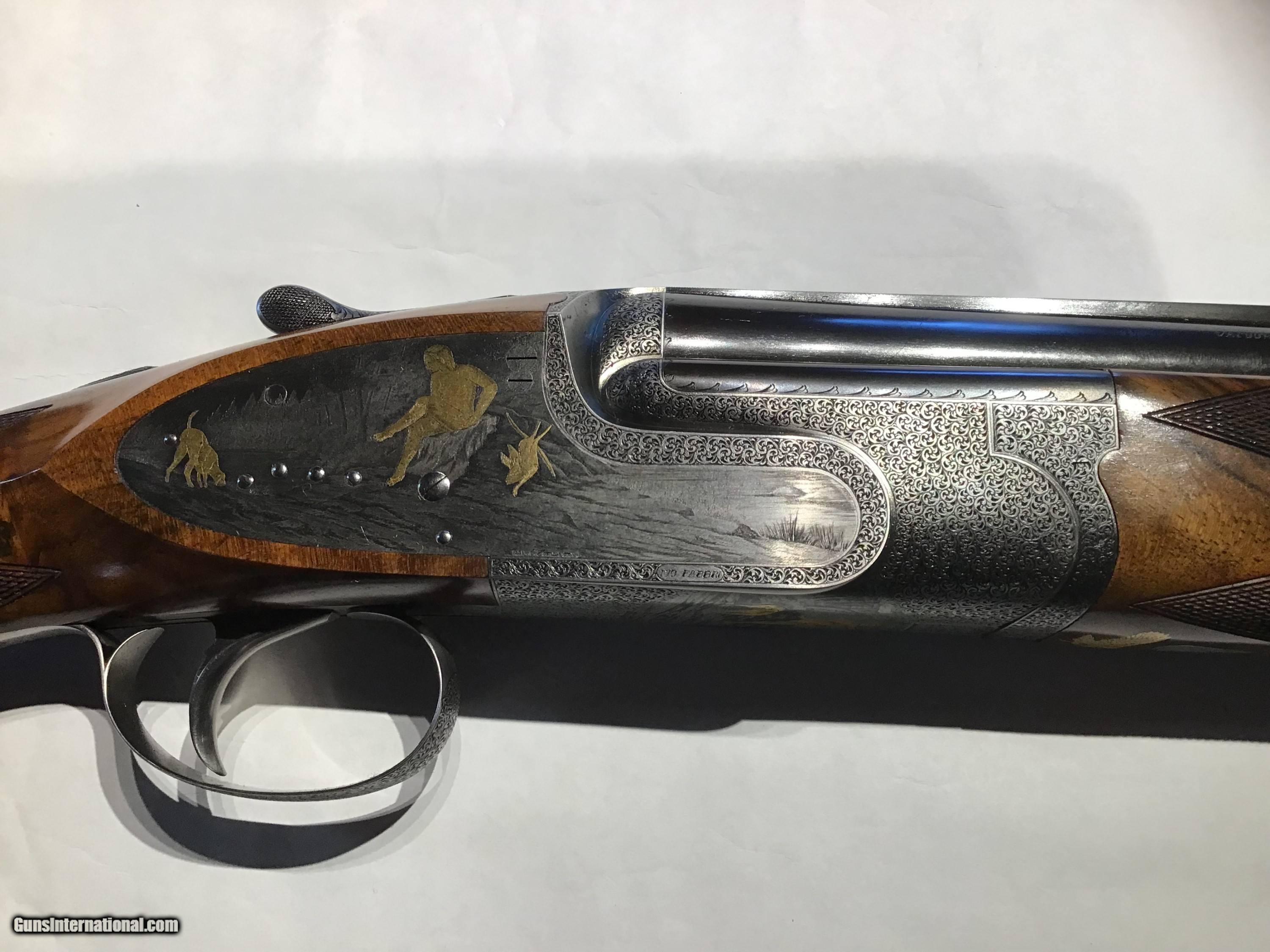 Description: New in case. Beautifully engraved Fabbri by Tomasoni. The gold inlays are exquisite. Great feeling pigeon or game gun. SOLD Shotgun Gauge: 12 Gauge Manufacturer: Fabbri Model: Under & Over Serial Number: E612 Chambers: 2 3/4 Ejectors: Yes Condition: New, appears unfired Barrels: Vacuum Arc Remelting Steel Triggers: Single Stock: Pistol Grip Stock Comb: 1 3/8 Stock Heel: 1 7/8 Stock Cast: 3/16 Fore End: Pigeon/Game Butt Pad: Checkered Butt LOP: 14 1/2 Rib: Vent tapered Crossfiled Weight: 7 lbs. 14 oz. Manufacture Date: 1983 Choke Left: .022 Choke Right: .042 Engraving: Tomansoni Engraved Case: Factory Leather Case Item Location: Millbrook NY |