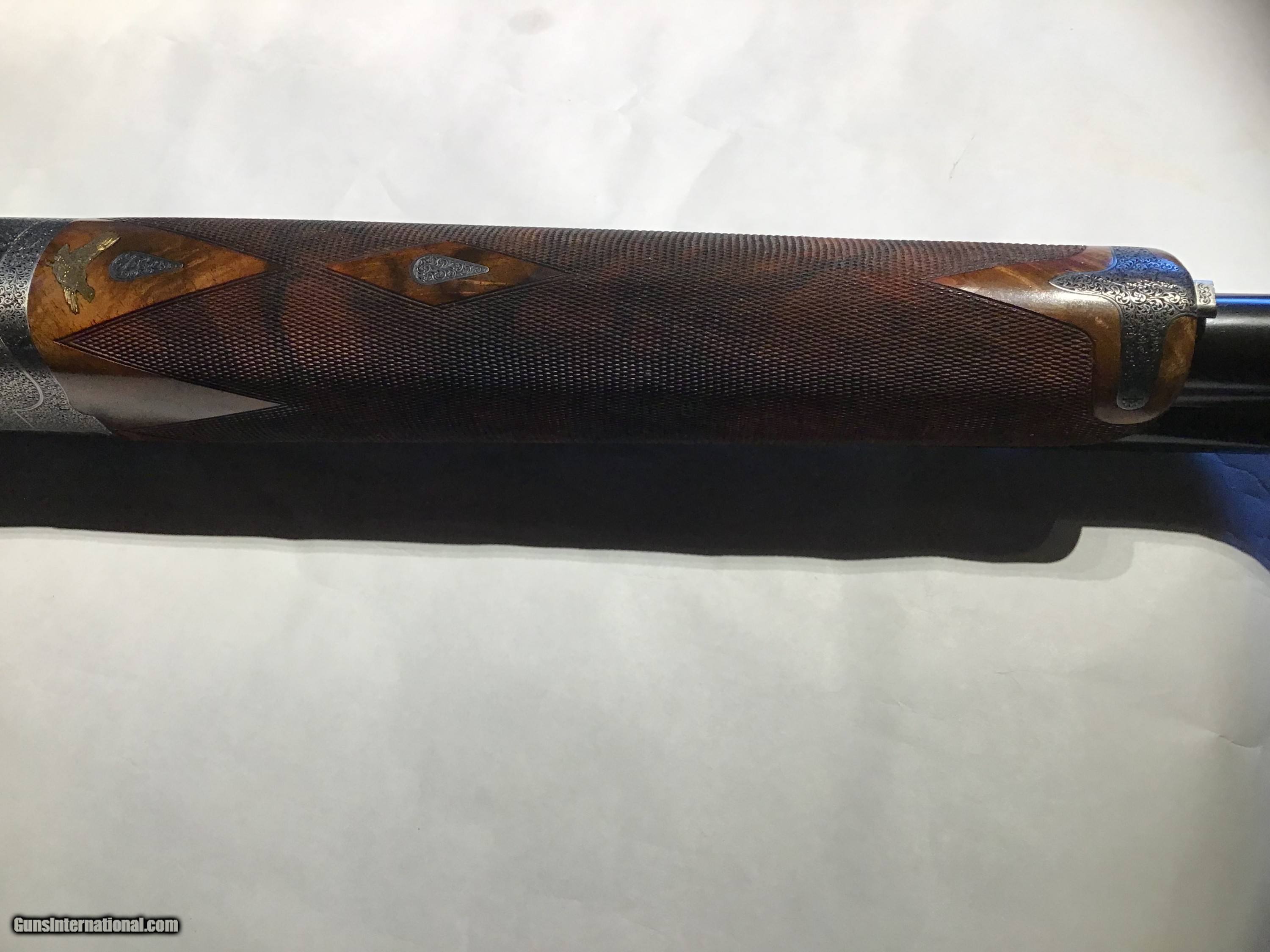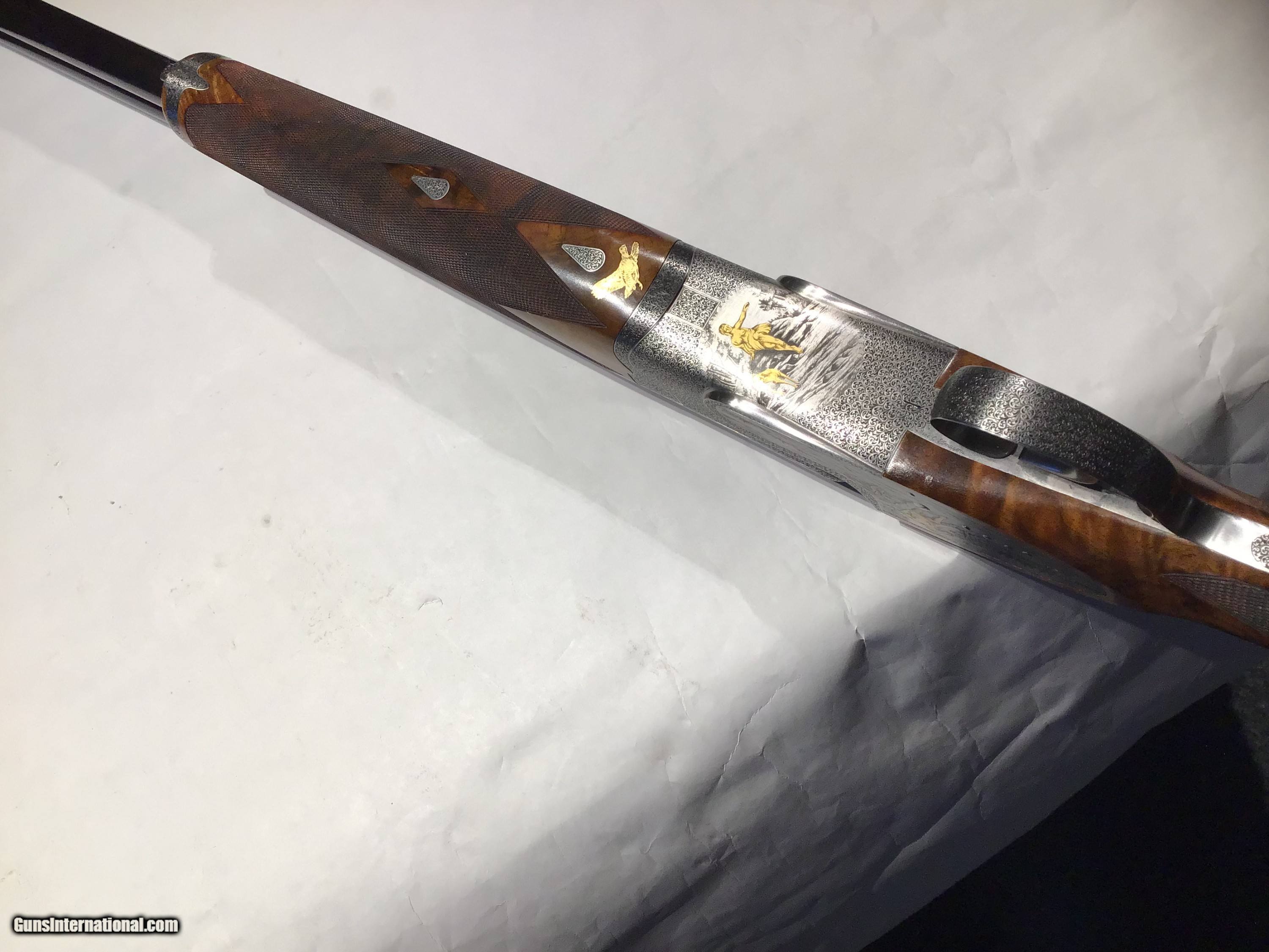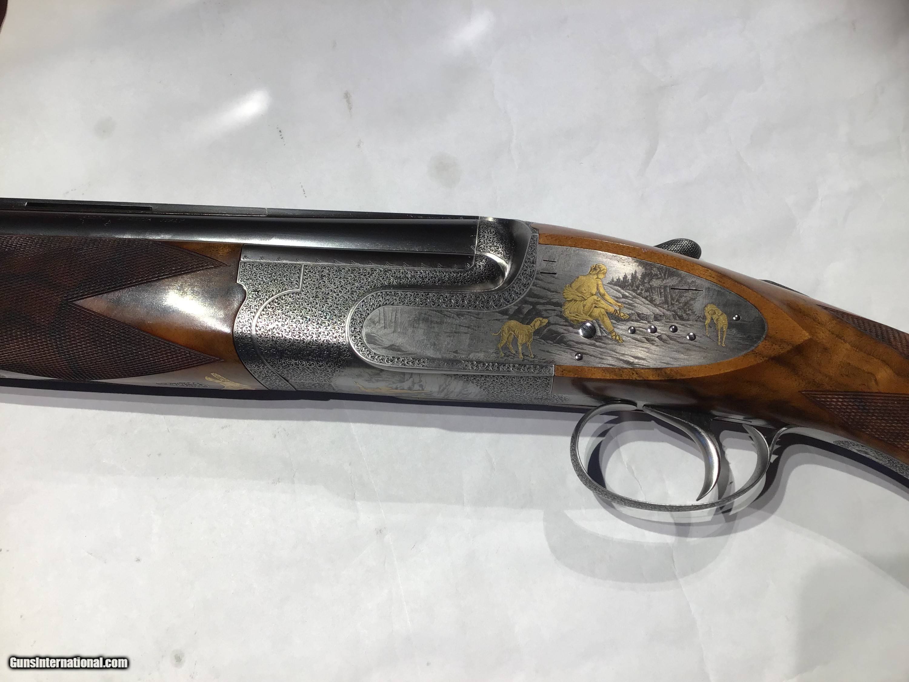 Description: New in case. Beautifully engraved Fabbri by Tomasoni. The gold inlays are exquisite. Great feeling pigeon or game gun. SOLD Shotgun Gauge: 12 Gauge Manufacturer: Fabbri Model: Under & Over Serial Number: E612 Chambers: 2 3/4 Ejectors: Yes Condition: New, appears unfired Barrels: Vacuum Arc Remelting Steel Triggers: Single Stock: Pistol Grip Stock Comb: 1 3/8 Stock Heel: 1 7/8 Stock Cast: 3/16 Fore End: Pigeon/Game Butt Pad: Checkered Butt LOP: 14 1/2 Rib: Vent tapered Crossfiled Weight: 7 lbs. 14 oz. Manufacture Date: 1983 Choke Left: .022 Choke Right: .042 Engraving: Tomansoni Engraved Case: Factory Leather Case Item Location: Millbrook NY |