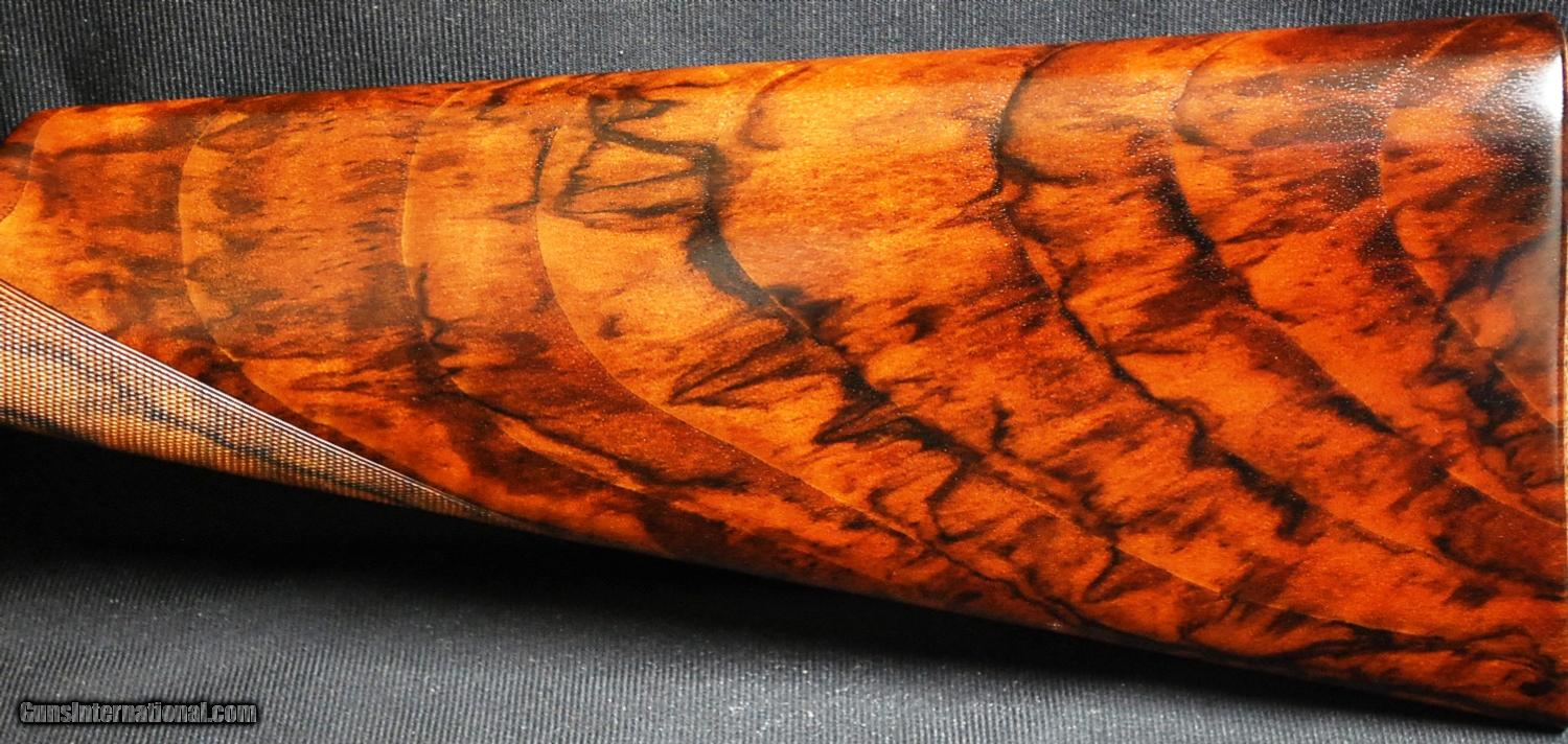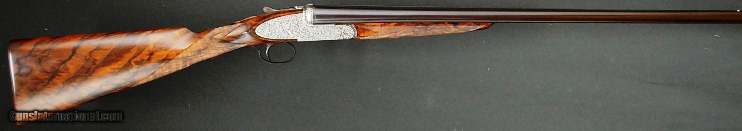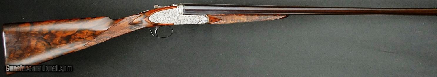 Description: Ivo. Fabbri – Best S/S, 12ga., Matched Set of three, 27” barrels, Bohler blitz barrels, IM/IM choked, raised matted ribs, straight grip stock, single trigger, self openers, 7lbs. 15” x 1 ½” x 2 1/4” Glorious three guns match set. Gold 1,2 and 3 inlaid on each gun, it is the only known set of three built with consecutive serial numbers, Magnificent matched wood blanks that all come from the same piece, deep ornamental engraving by Iora, these guns are in perfect condition, the most magnificent set of Fabbri S/S shotguns ever offered.