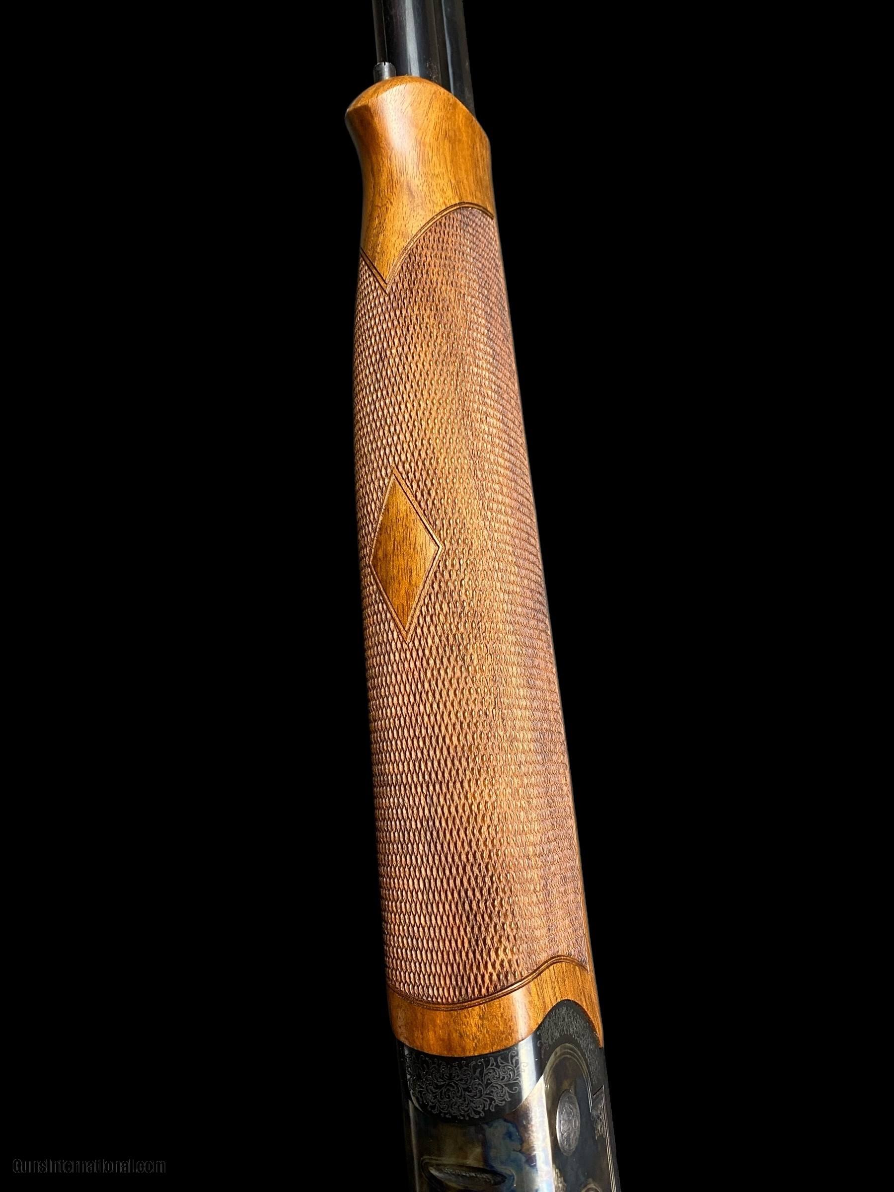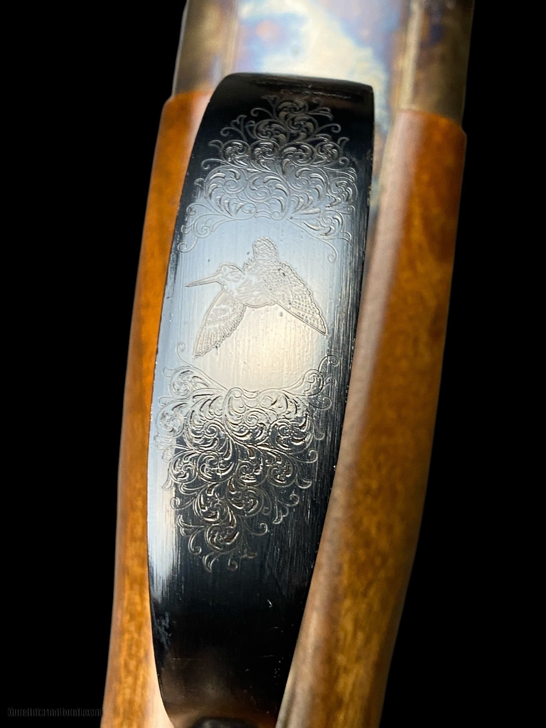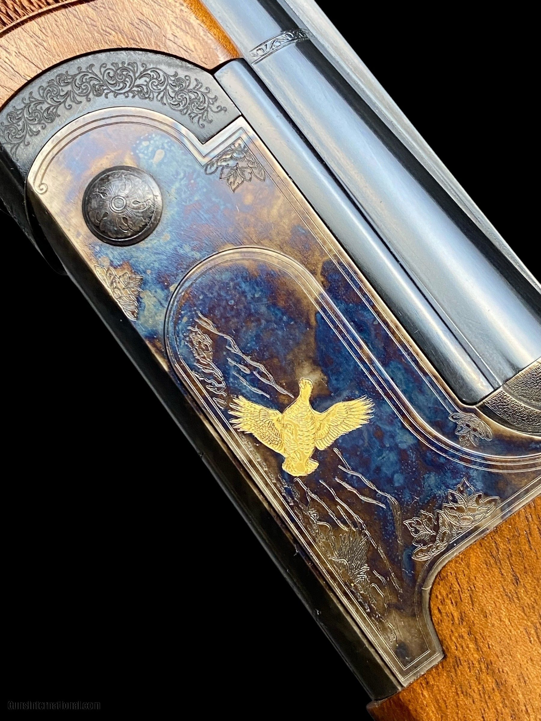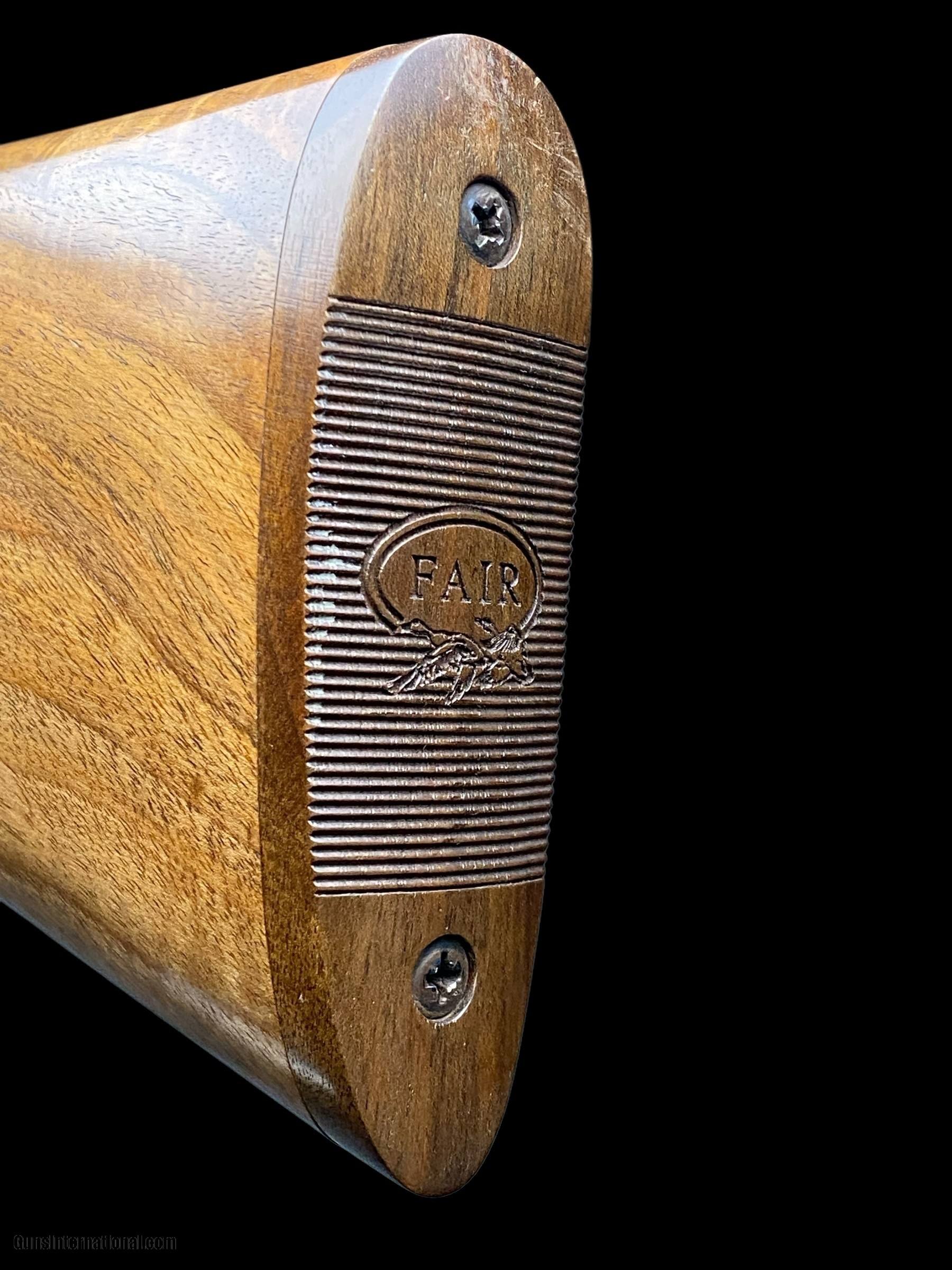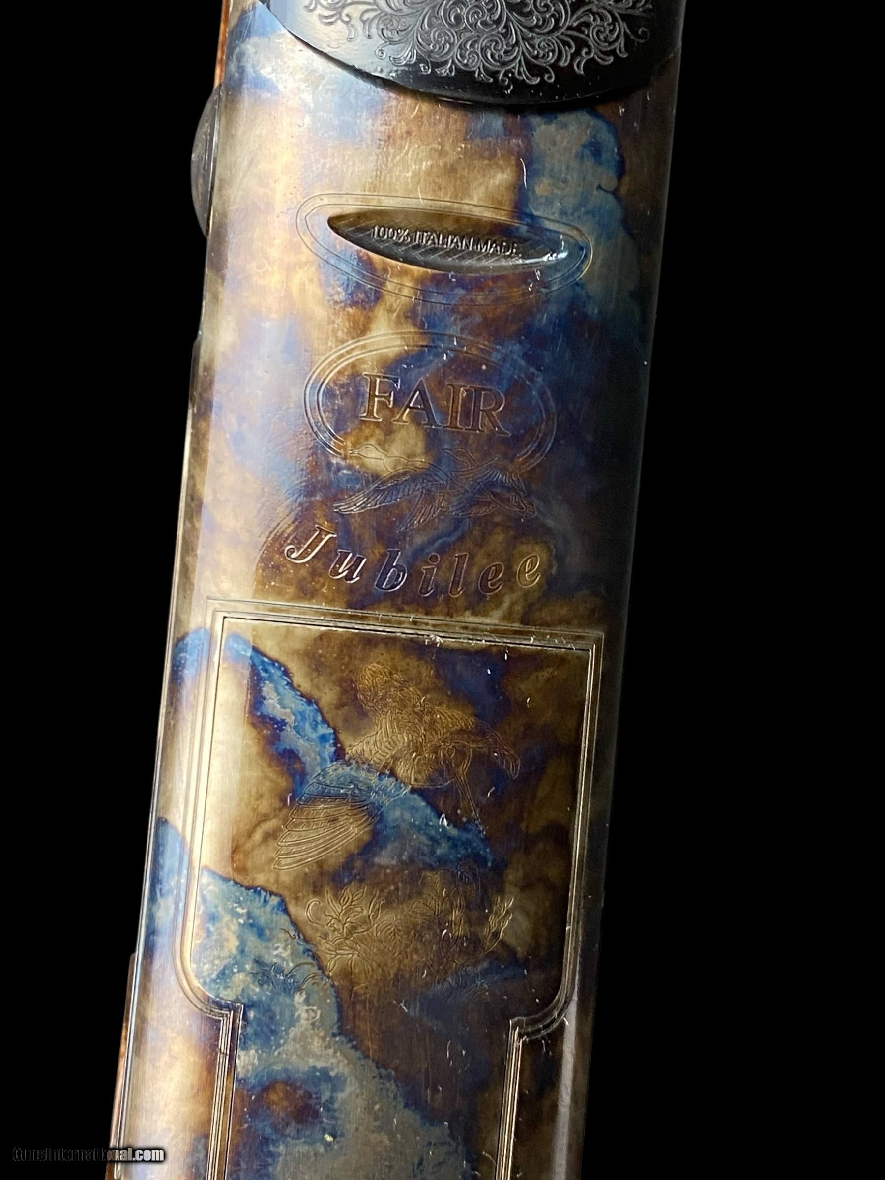 Description: SOLD! -- THIS BEAUTIFUL FAIR HAS SOLD TO A SATISFIED CLIENT! PLEASE SEE OUR OTHER FINE FIREARM LISTINGS! FAIR - ITALY MODEL - JUBILEE TARTARUGA CASE COLOURED & GOLD GAME SCENE ENGRAVED 20GA - 3" / 76MM CHAMBERS 30" VENT RIB BBLS W/ 5 CHOKE TUBES BEAUTIFUL CASE COLOURED ACTION WITH GOLD GROUSE AND PHEASANT SINGLE SELECTIVE TRIGGER EJECTORS NICE WALNUT PISTOL GRIP STOCK WITH "FAIR" MARKED WOOD BUTTPLATE DIMS: 14 1/2" LOP, 1 1/2" DAC, 2 1/4" DAH WEIGHT: 6LBS 6 OZ POLY FITTED CASE W/ CHOKE TUBES AND MANUAL GUN MADE BY FAIR AND MARKETED UNDER "LINCOLN NAME IN EUROPE. CONDITION: GUN IS IN EXCELLENT ORIGINAL CONDITION SHOWING LITTLE SIGNS OF USE. ACTION VERY TIGHT. EJECTORS STRONG. TRIGGER CRISP. BORES CLEAR. ALL FACTORY FINISHES REMAIN. GENTLEMEN, THIS IS A HIGH QUALITY SHOTGUN ON PAR WITH ANY RIZZINI, BERETTA, CAESER GUERINI, OR BENELLI COMPARABLE SHOTGUN. GREAT DIMENSIONS AND BALANCE. BEAUTIFUL GUN! PLEASE CALL NOW! FFL REQUIRED FLAT $ 75 S/H/I CARD FEE APPLIES SOLD Shotgun Gauge: 20 Gauge Manufacturer: FAIR Model: JUBILEE Barrel Length: 30 Chambers: 3" - 76MM Ejectors: YES Condition: EXC Metal Condition: EXC Wood Condition: EXC Bore Condition: EXC Action: BLE Triggers: SINGLE Proof:Nitro: Y |