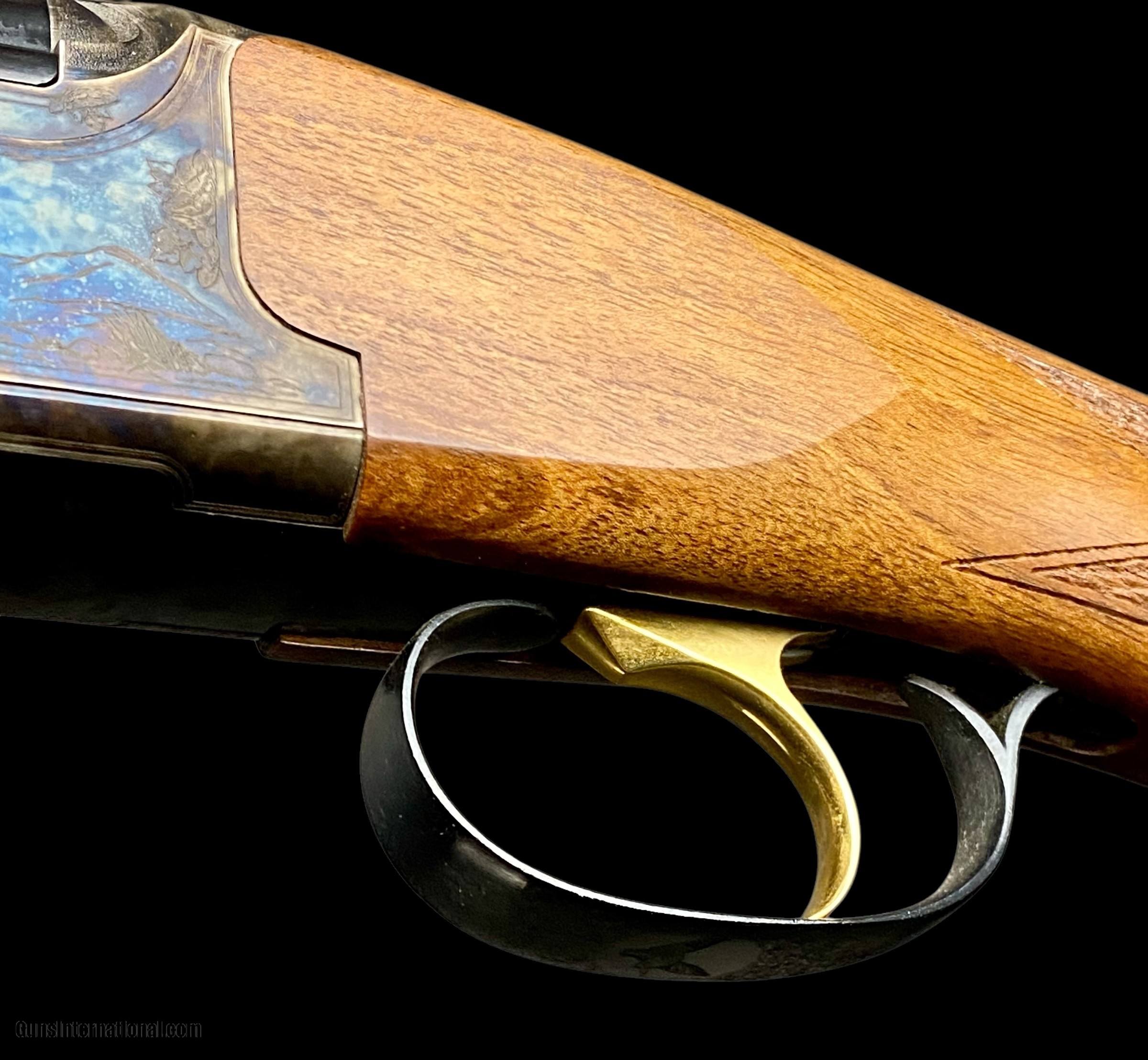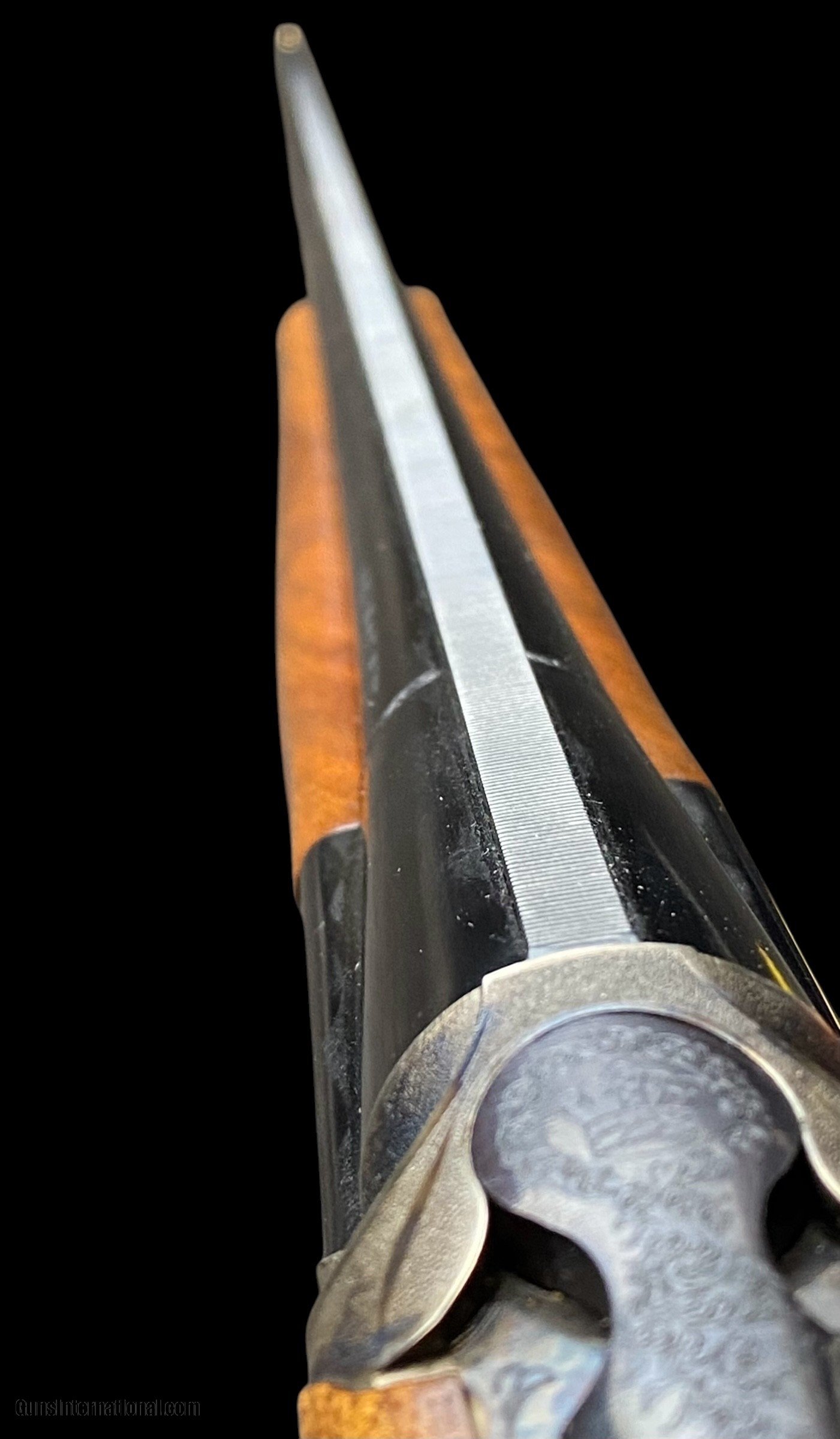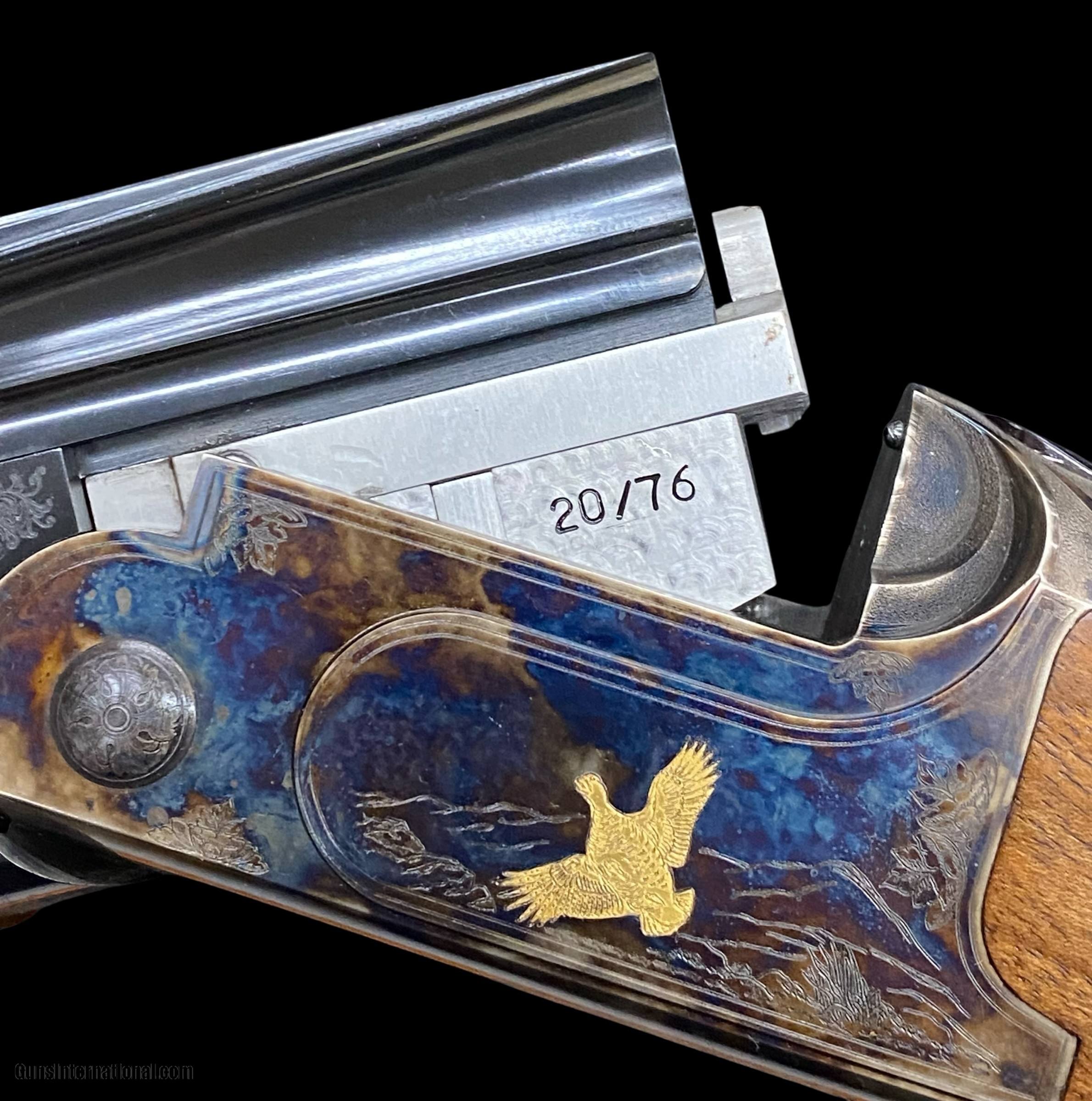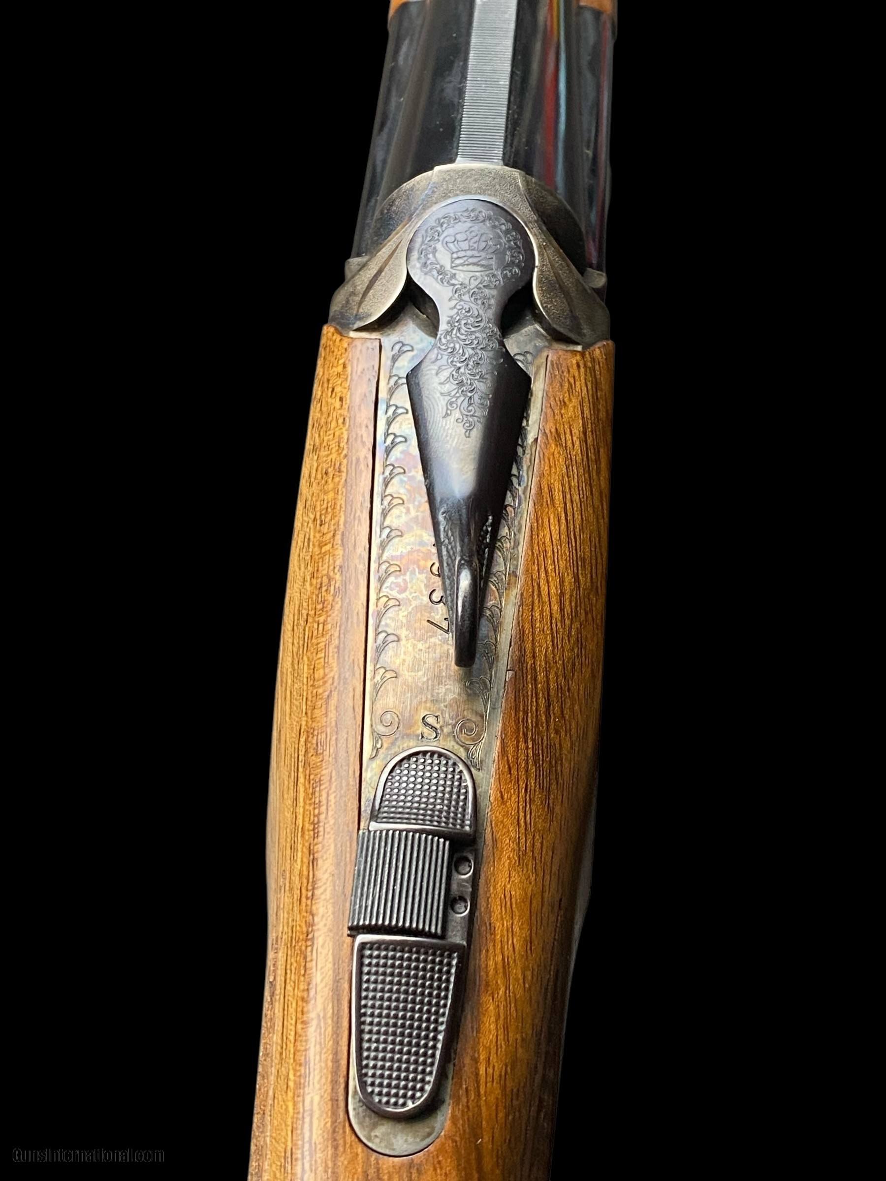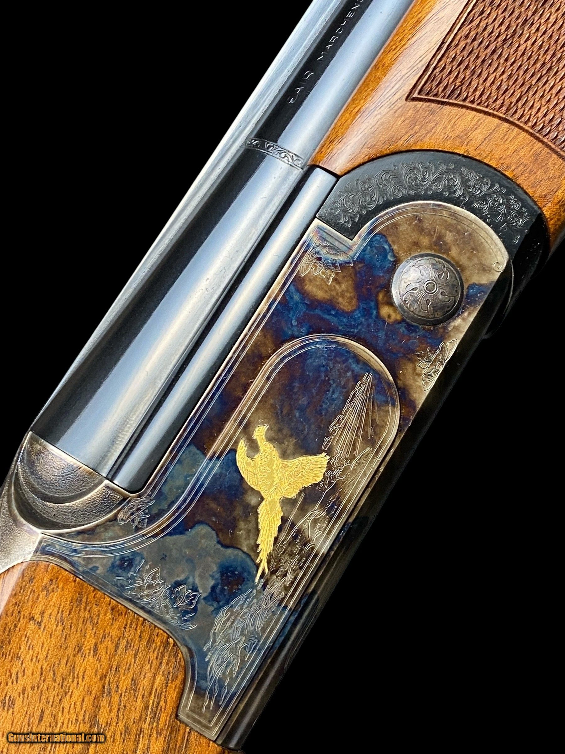 Description: SOLD! -- THIS BEAUTIFUL FAIR HAS SOLD TO A SATISFIED CLIENT! PLEASE SEE OUR OTHER FINE FIREARM LISTINGS! FAIR - ITALY MODEL - JUBILEE TARTARUGA CASE COLOURED & GOLD GAME SCENE ENGRAVED 20GA - 3" / 76MM CHAMBERS 30" VENT RIB BBLS W/ 5 CHOKE TUBES BEAUTIFUL CASE COLOURED ACTION WITH GOLD GROUSE AND PHEASANT SINGLE SELECTIVE TRIGGER EJECTORS NICE WALNUT PISTOL GRIP STOCK WITH "FAIR" MARKED WOOD BUTTPLATE DIMS: 14 1/2" LOP, 1 1/2" DAC, 2 1/4" DAH WEIGHT: 6LBS 6 OZ POLY FITTED CASE W/ CHOKE TUBES AND MANUAL GUN MADE BY FAIR AND MARKETED UNDER "LINCOLN NAME IN EUROPE. CONDITION: GUN IS IN EXCELLENT ORIGINAL CONDITION SHOWING LITTLE SIGNS OF USE. ACTION VERY TIGHT. EJECTORS STRONG. TRIGGER CRISP. BORES CLEAR. ALL FACTORY FINISHES REMAIN. GENTLEMEN, THIS IS A HIGH QUALITY SHOTGUN ON PAR WITH ANY RIZZINI, BERETTA, CAESER GUERINI, OR BENELLI COMPARABLE SHOTGUN. GREAT DIMENSIONS AND BALANCE. BEAUTIFUL GUN! PLEASE CALL NOW! FFL REQUIRED FLAT $ 75 S/H/I CARD FEE APPLIES SOLD Shotgun Gauge: 20 Gauge Manufacturer: FAIR Model: JUBILEE Barrel Length: 30 Chambers: 3" - 76MM Ejectors: YES Condition: EXC Metal Condition: EXC Wood Condition: EXC Bore Condition: EXC Action: BLE Triggers: SINGLE Proof:Nitro: Y |