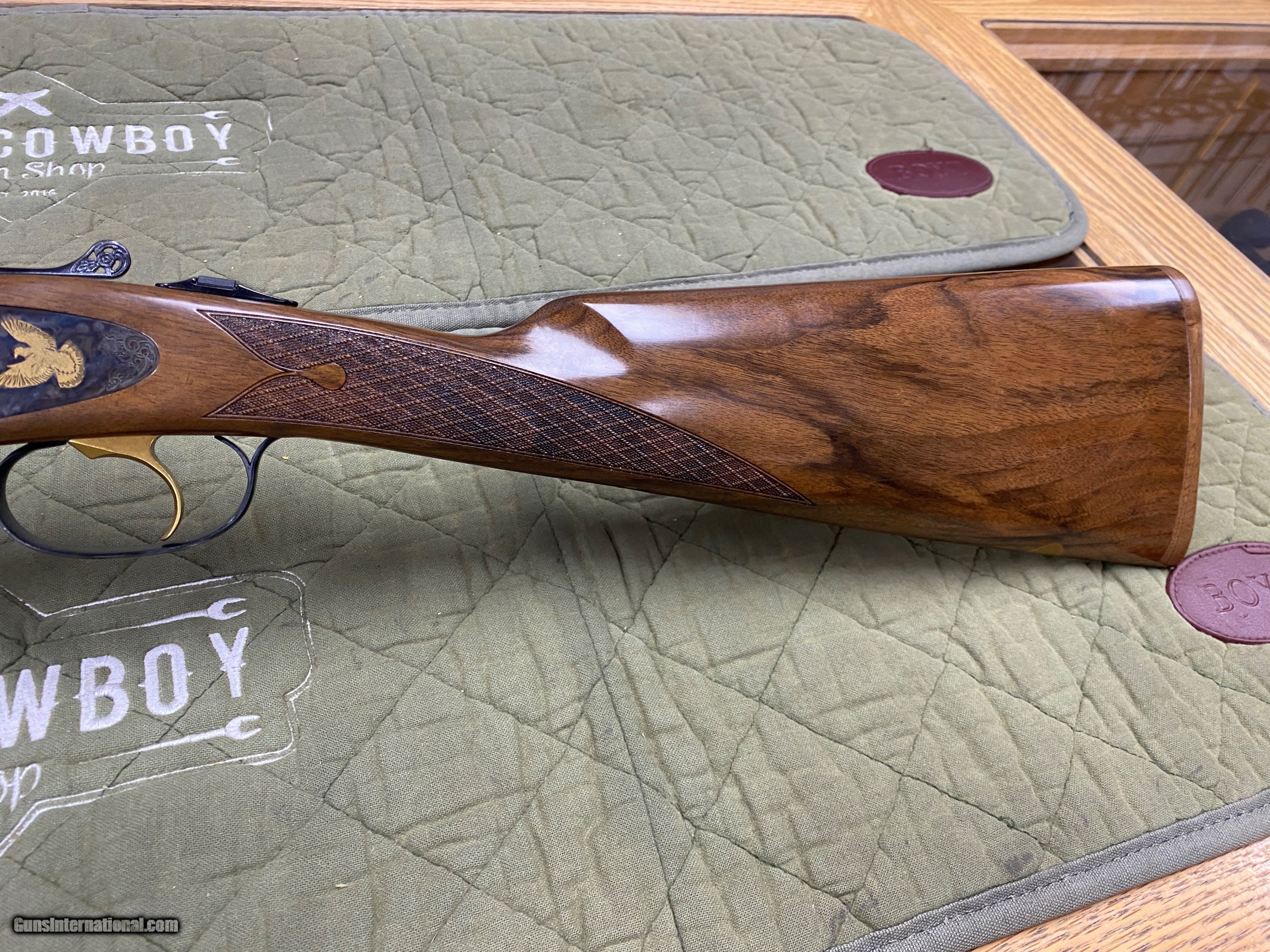 Description: Offered for sale is a new FAIR (I.Rizzini) Iside Prestige Tartaruga Gold De Luxe. This double is chambered in 410 Bore with 26’’ barrels. This model is equipped with SST trigger, auto ejectors and long tang trigger guard. 5 Screw in chokes are included: Cyl, IC, Mod Imp Mod & Full. See below for the specs. Feel free to reach out with any questions. Thanks for looking! LOP 14 5/8’’ Weight 5 lbs. 5.5 oz Cast Off DAC 1 3/8’’ DAH 2 ¼ WHY IRON COWBOY? Buying a fine gun is not shopping cart transaction. Buying from Iron Cowboy means buying a gun from me. It means buying from someone as passionate as you about fine guns. I want you to get the right gun both for you and your application, and my advice reflects what I feel is in your best interests. No clerks, no ‘other’ salesman – just me. Odds are we will have a discussion on my shooting experience with the gun you are after, and every transaction gets my personal best. Credit cards are welcome; however, a 3% fee will apply Thank you, as always, for looking. GROWTH THROUGH SERVICE Everyone is a customer at some point. I’ve taken the good from my experiences and apply it to my transactions. I’ve taken the bad and sworn to never pass that same experience on to my customers. I strive to act the way I would respect someone else for acting. In this way, Iron Cowboy differentiates itself with growth through service and repeat business. It’s my commitment to you, my customer. Iron Cowboy Gun Shop, LLC Edward Kondraski III (570) 733-2042 SOLD |