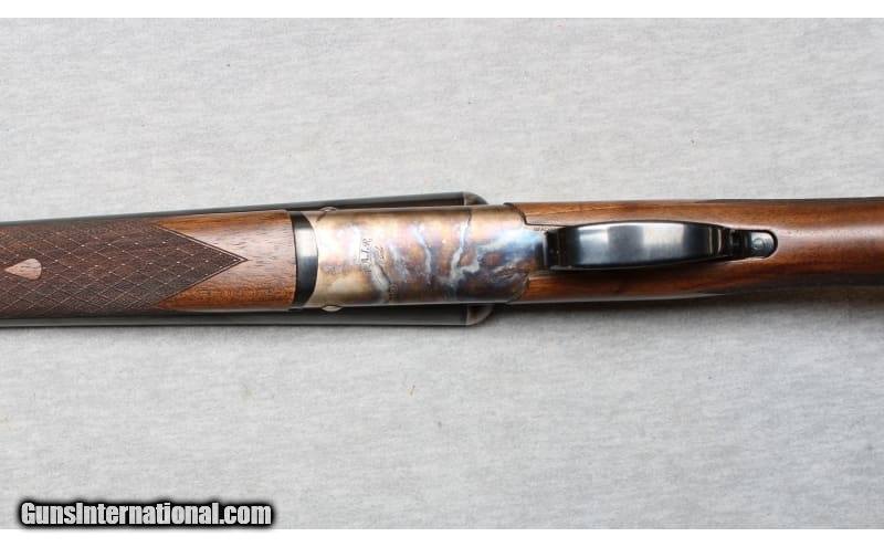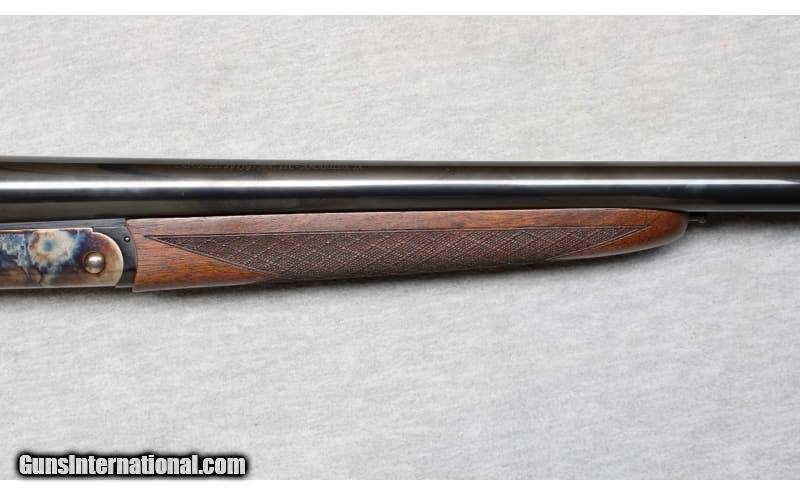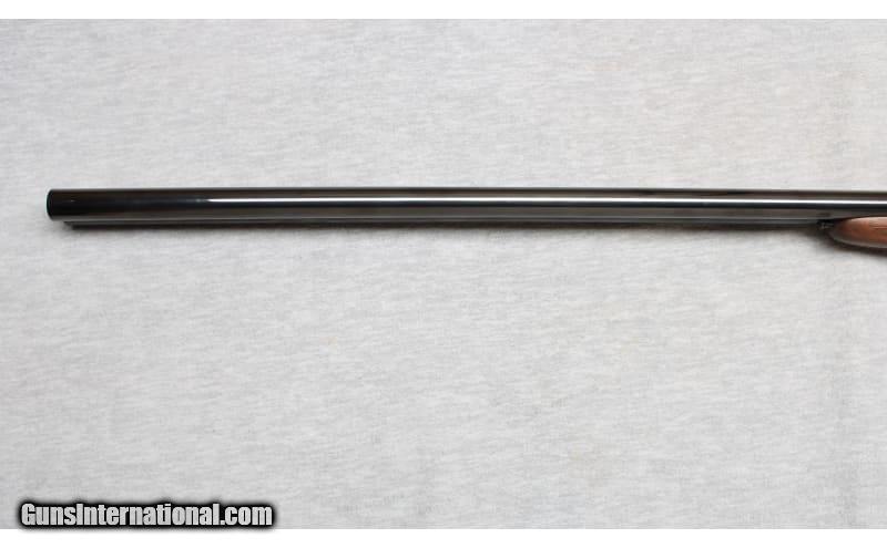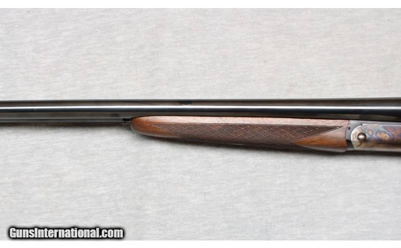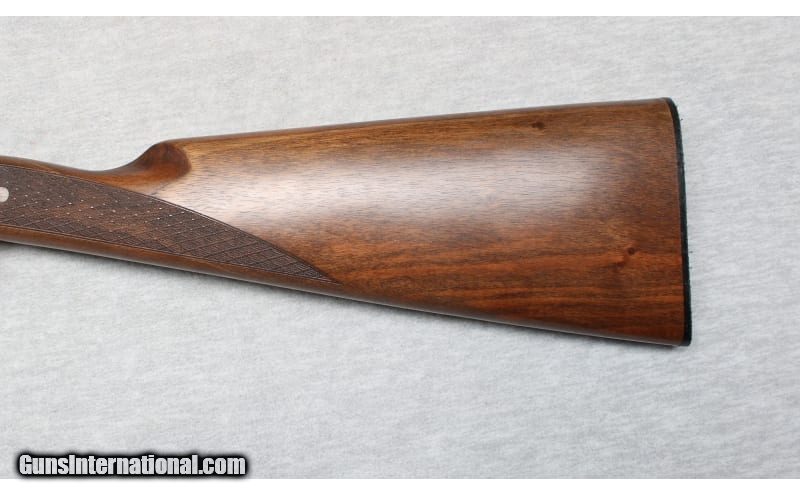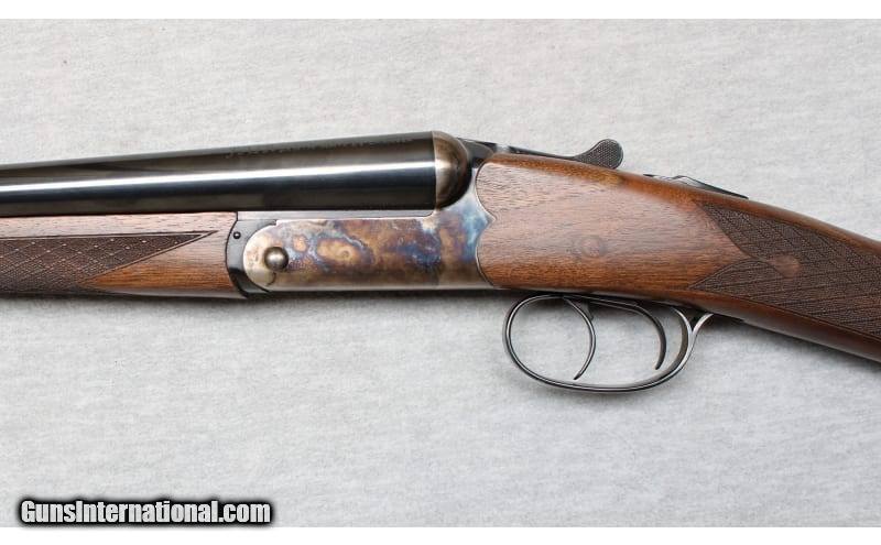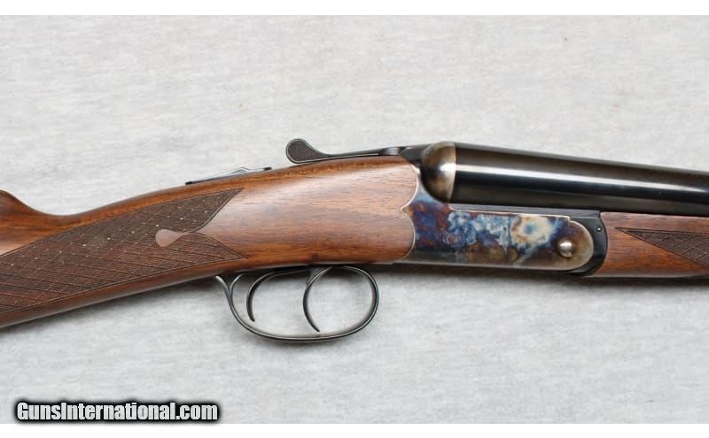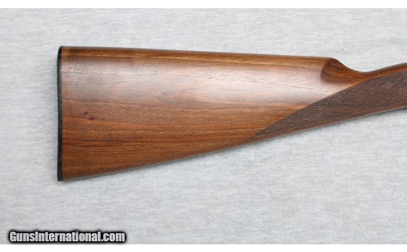 Description: FAIR Iside in 16 Gauge. Isidoro Rizzini established Fabbrica Armi Isidoro Rizzini (FAIR) in Brescia, Italy, in 1971. The Iside is a side-by-side double-barrel shotgun of boxlock construction with an automatic safety. Each time the top lever is moved to the open position the tang-mounted sliding safety is applied. The straight (English-style) buttstock and fore-end are of nicely figured European walnut. Checkering on the stock is a basket-weave design that is laser-cut. The action is chemically case colored rather than casehardened. The back of the receiver is scalloped, with the wood only slightly proud of the metal. The barrels are highly polished and deeply blued, to the point of being nearly black, as are the trigger guard, top lever, triggers and fore-end iron. This gun has double triggers. The original box is included. 16 Gauge SOLD Chambers: 2 3/4 Inches Metal Condition: Excellent Wood Condition: Excellent Bore Condition: Bright Barrels: 26 Inches Triggers: Double triggers Stock Dimensions: LOP 15 Inches from front trigger Fore End: Finely checkered walnut Butt Pad: Plastic pad Sights: Single white bead on low rib Chokes: Improved Cylinder/Modified Item Location: La Vista, NE |