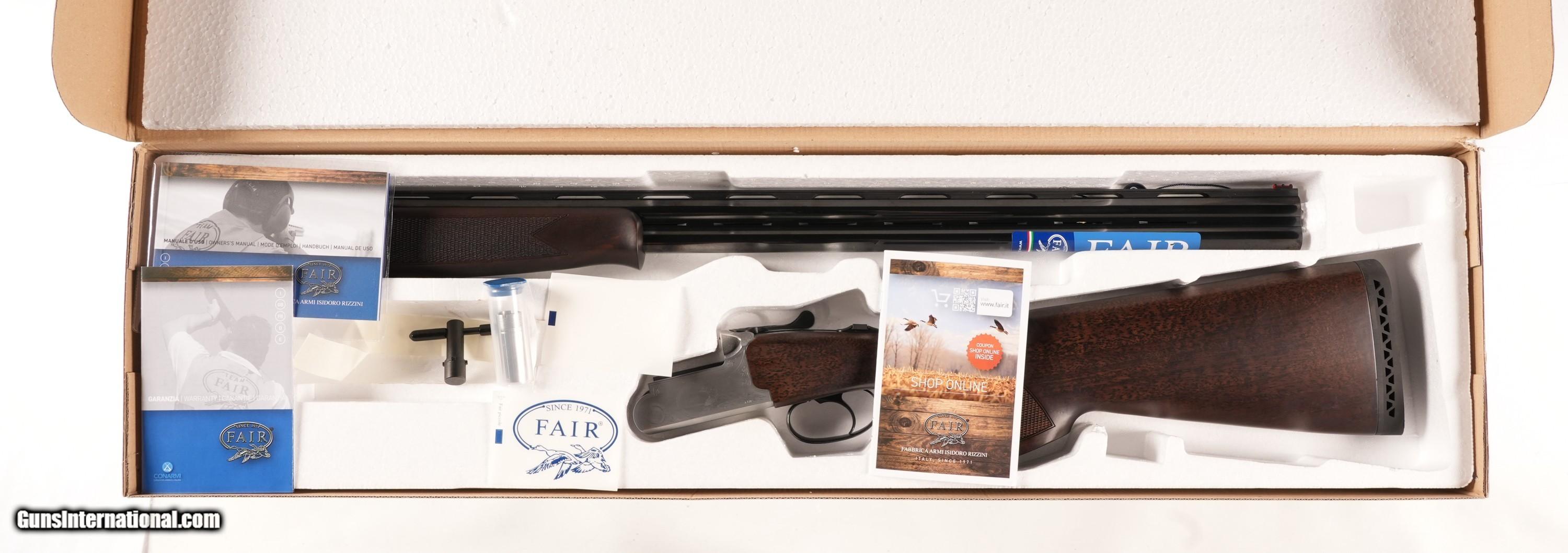 Description: FAIR Premier Sporting Over/Under Shotgun – 20 Gauge – 30" Barrels, Game Scene Engraving, Interchangeable Chokes Serial #346476 | Mfd 2022 | 3" Chambers | Coin-Finished Receiver | Factory Box | Modern A sleek and refined Italian-made FAIR (I. Rizzini) Premier Sporting Over/Under shotgun in 20 Gauge, purpose-built for both sporting clays and upland field use. Features 30" wide vent rib barrels, 3" chambers, and a single selective trigger with automatic ejectors. Comes with 3 factory interchangeable chokes. The coin-finished receiver is adorned with attractive game scene engraving, and the shotgun is stocked in nicely varnished walnut with factory butt plate. Balanced and fast-handling, this is an ideal blend of performance and elegant styling.